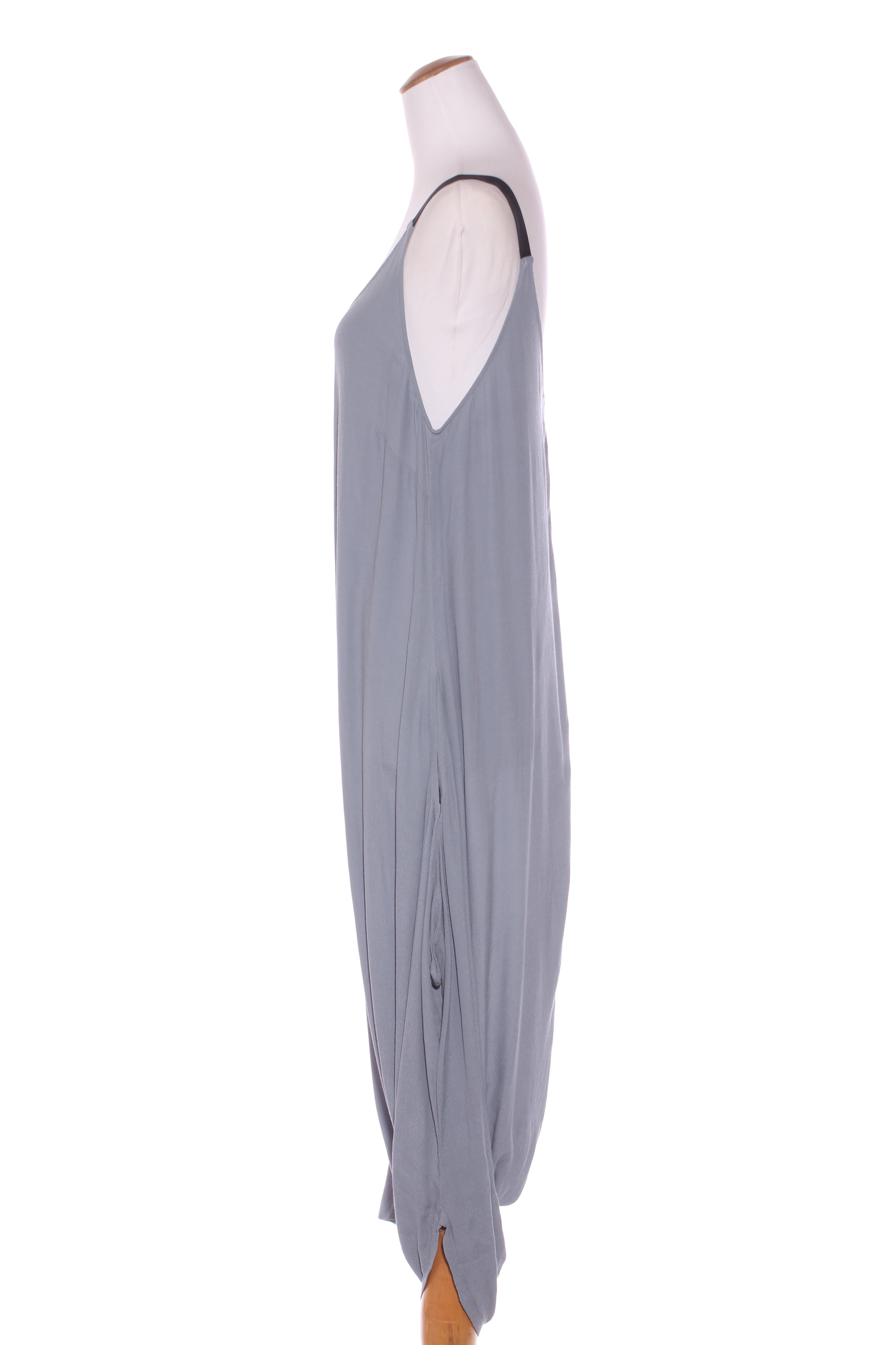 SIZE ON TAG: 16FITS LIKE: N/ACOLOUR: Blue grey, blackFABRIC: 52% viscose, 48% rayonCONDITION: Excellent prelovedMEASUREMENTS:BUST: 53cms WAIST: 59cms LENGTH: 138cmsNOTES: Made in NZ. Side pockets.