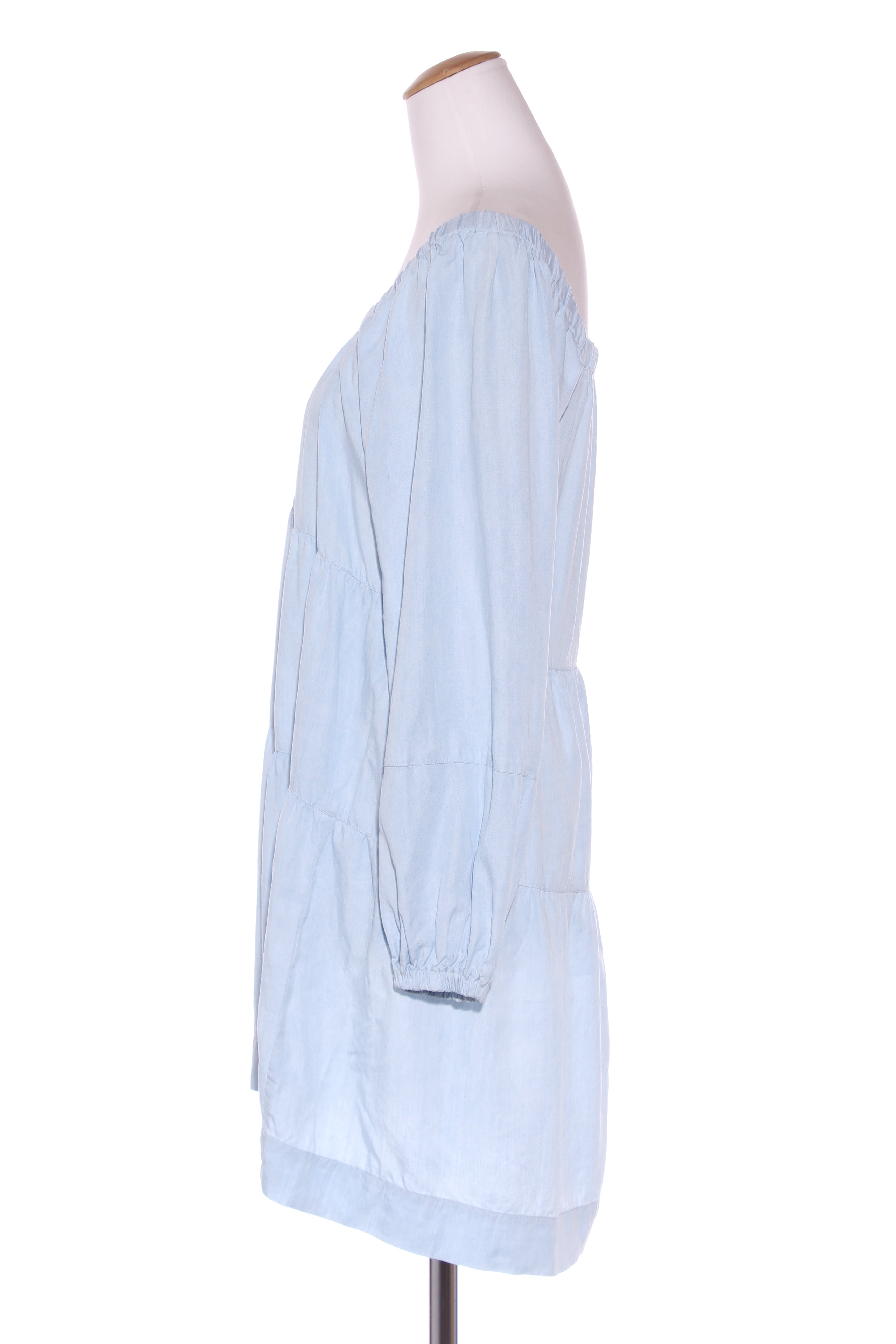 SIZE ON TAG: 6FITS LIKE: 6-8COLOUR: BlueFABRIC: LyocellCONDITION: Excellent prelovedMEASUREMENTS:BUST: 46cms WAIST: 47cms LENGTH: 89cmsNOTES: Pull over style. Elasticated neckline and sleeve ends.