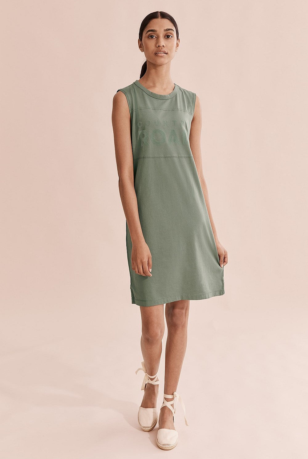 SIZE ON TAG: LFITS LIKE: 14COLOUR: Thyme greenFABRIC: CottonCONDITION: Excellent preloved - hardly wornMEASUREMENTS:BUST: 55cms WAIST: 56cms LENGTH: 64-67cmsNOTES: Fabric has stretch.