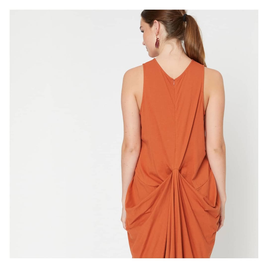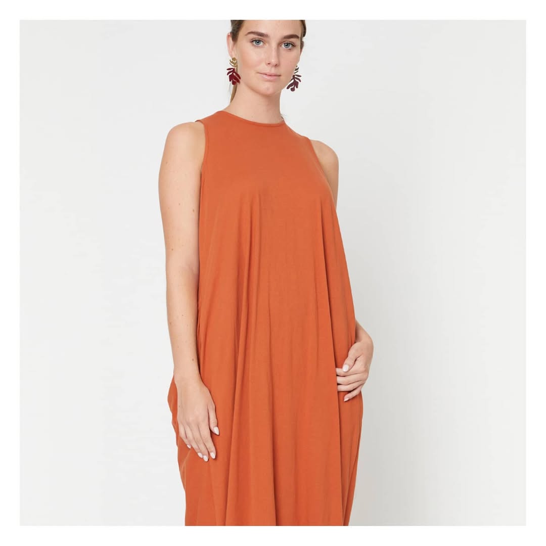 SIZE ON TAG: 10FITS LIKE: N/ACOLOUR: OrangeFABRIC: 97% cotton, 3% lycraCONDITION: Very good prelovedMEASUREMENTS:BUST: 40cms WAIST: 38cms LENGTH: 50cmsNOTES: Made in NZ. Fabric has stretch.