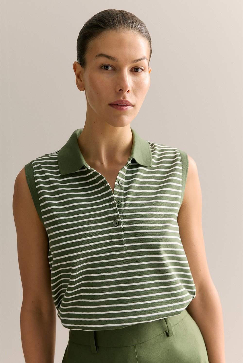 SIZE ON TAG: M FITS LIKE: 12COLOUR: Olive green, whiteFABRIC: CottonCONDITION: Brand new with tagMEASUREMENTS:BUST: 51cms WAIST: 51cms LENGTH: 61cmsNOTES: Crafted from Australian cotton in a pique...