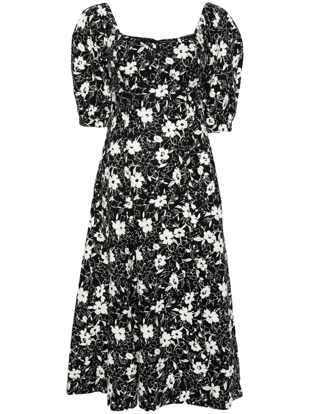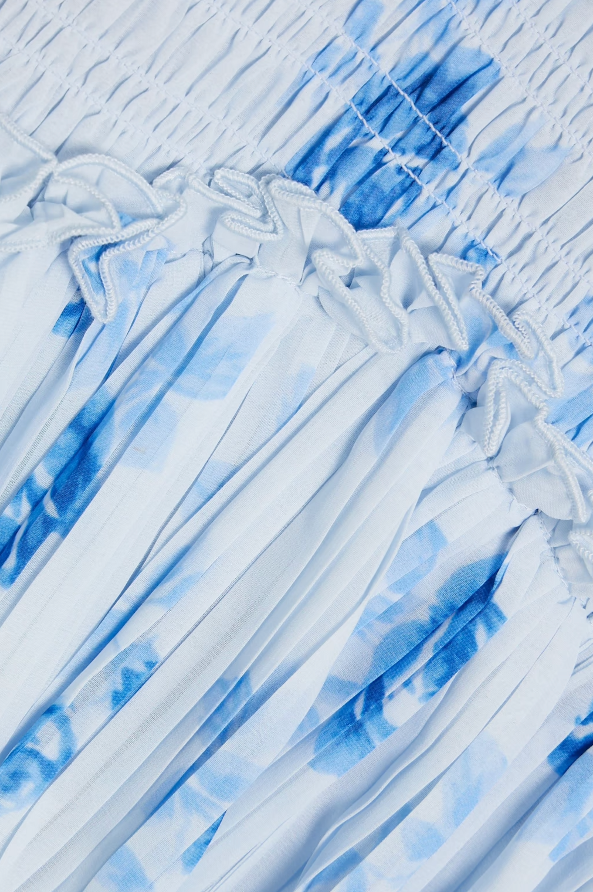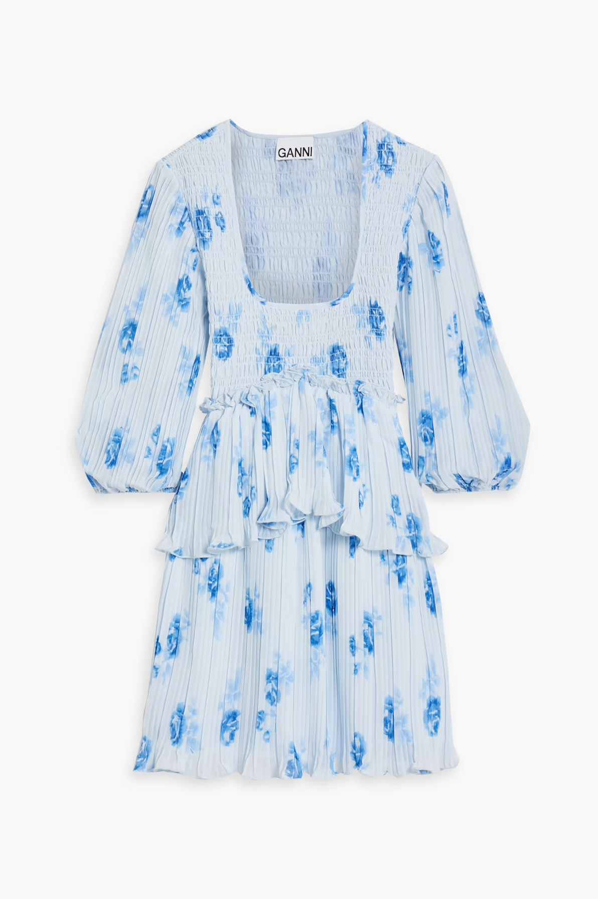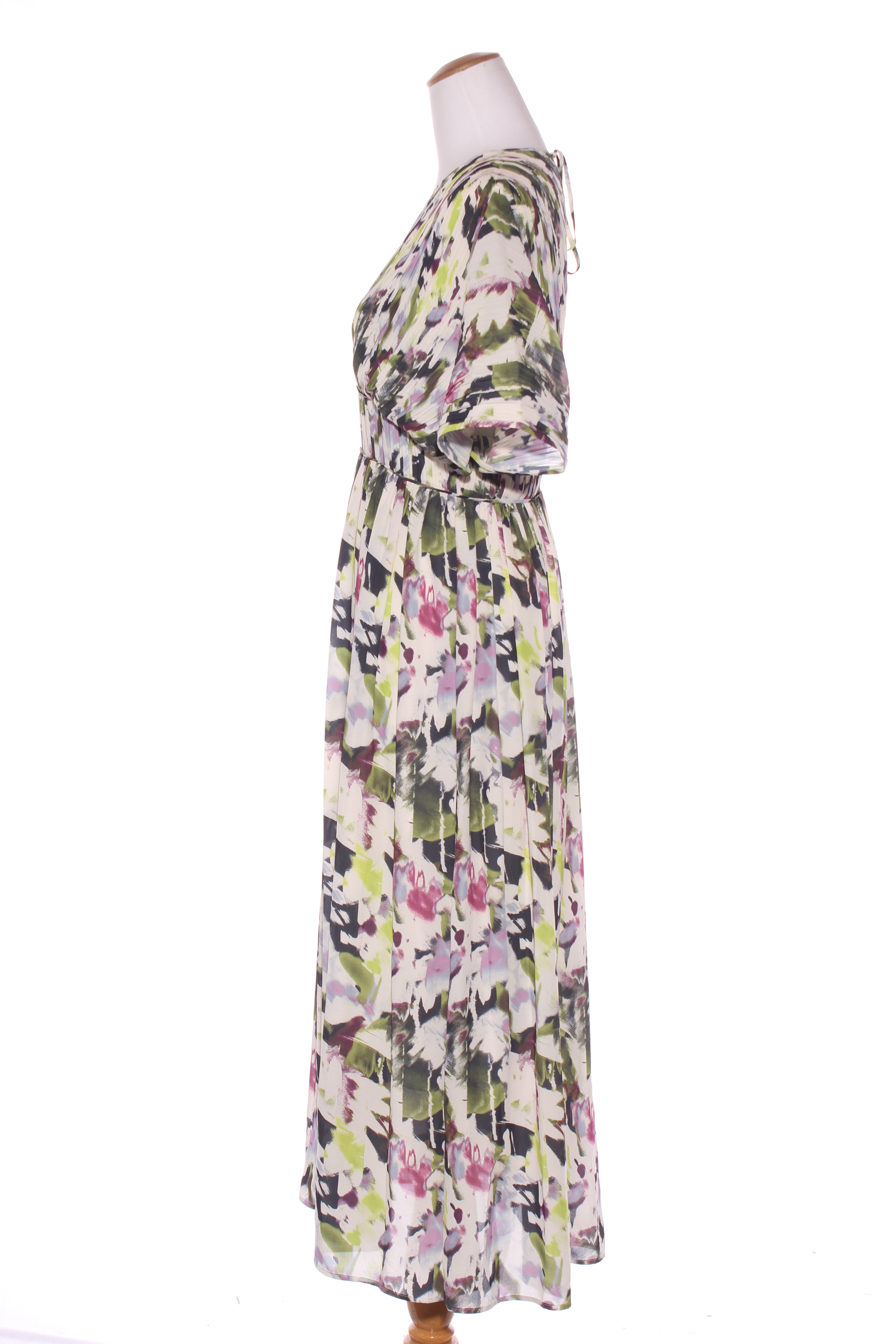 SIZE ON TAG: 38FITS LIKE: 12COLOUR: Light blue, blueFABRIC: Recycled polyester, Lining - polyesterCONDITION: Like newMEASUREMENTS:BUST: 40cms WAIST: 35cms LENGTH: 87cmsNOTES: Dress Floral-print Crepe de chine...