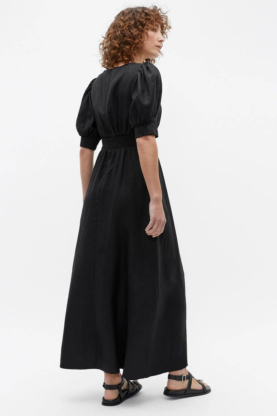 SIZE ON TAG: 6FITS LIKE: 6-8COLOUR: BlackFABRIC: Linen, Lining - cottonCONDITION: Like newMEASUREMENTS:BUST: 39cms WAIST: 32cms LENGTH: 130cmsNOTES: Crafted from premium linen made with French flax,...