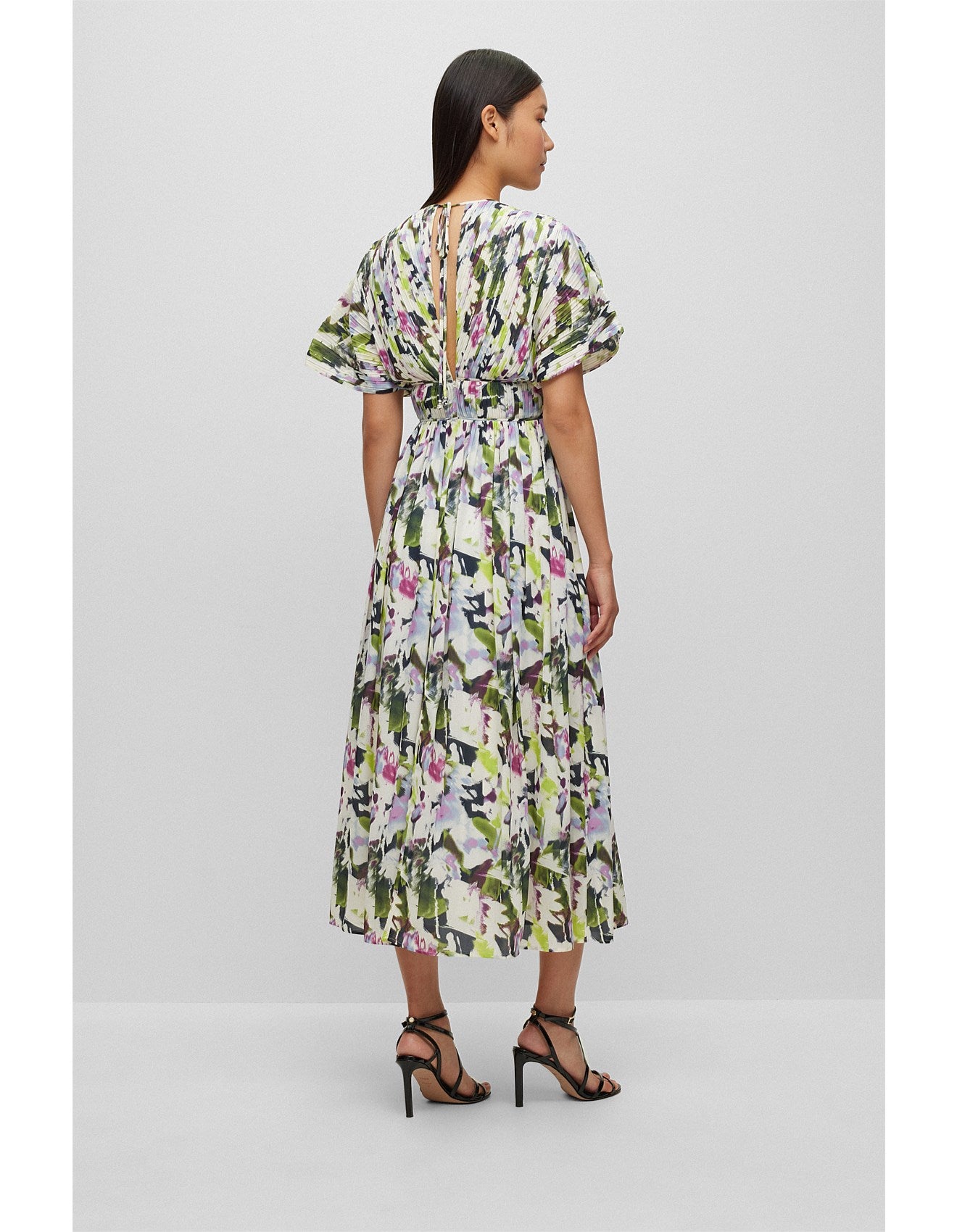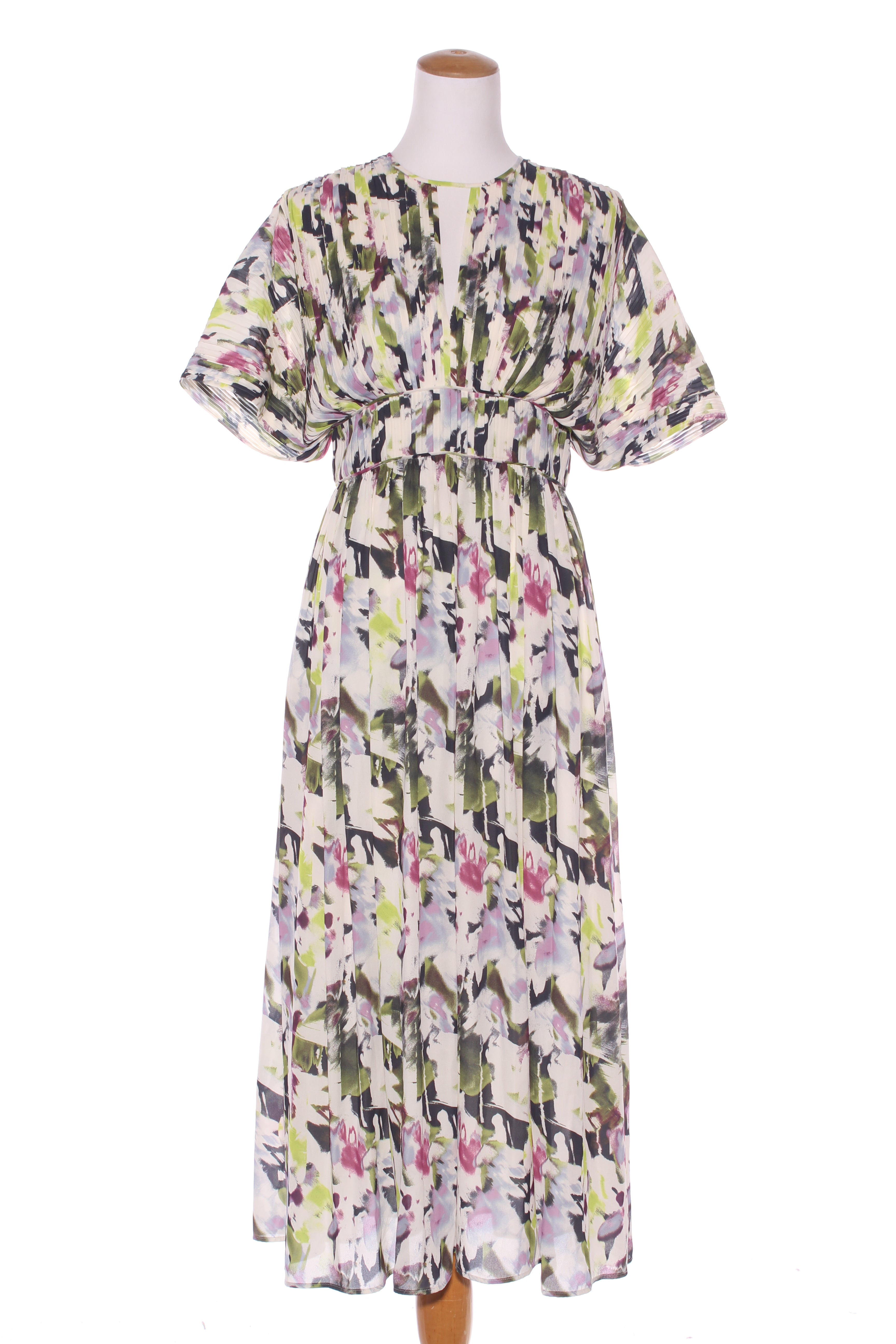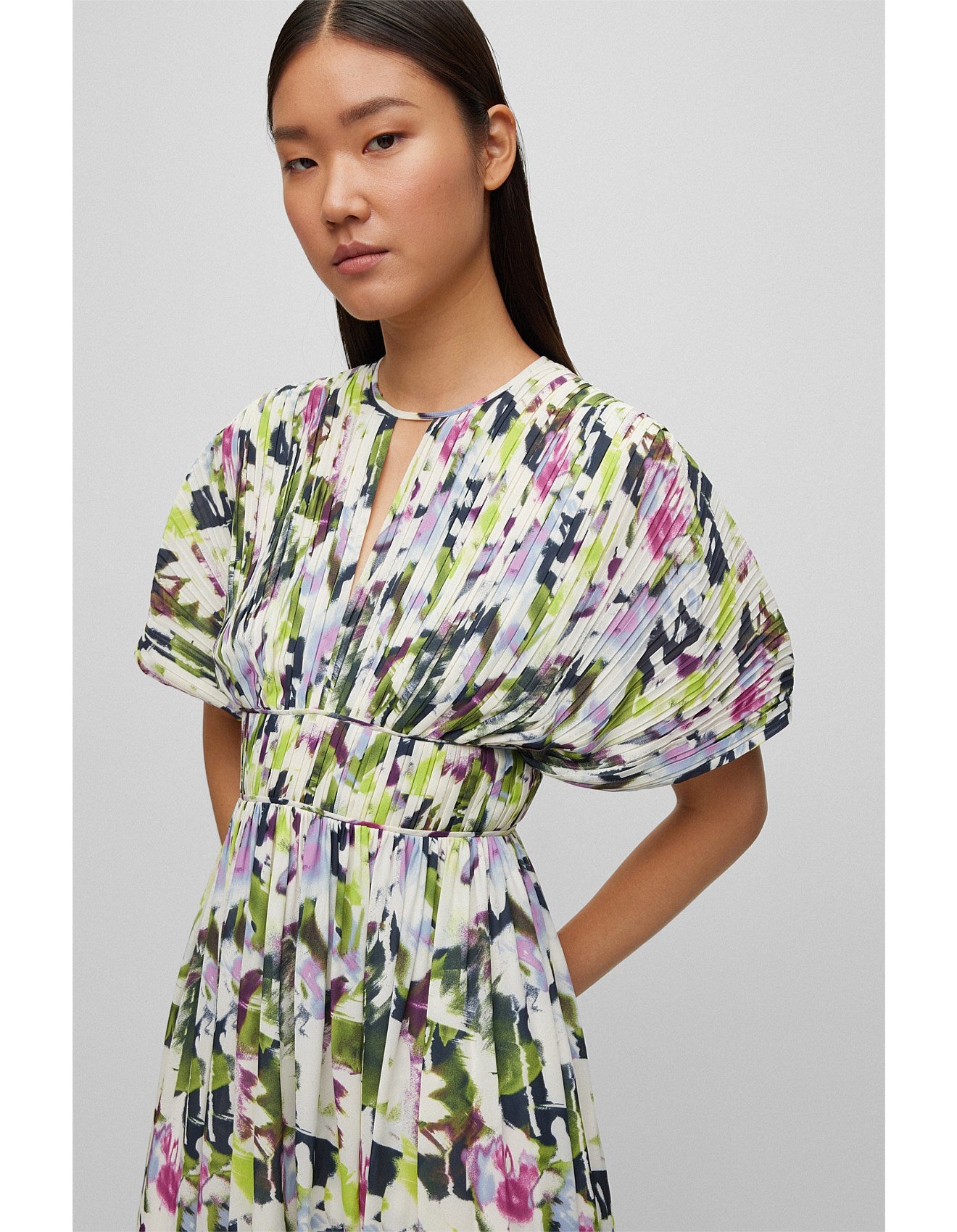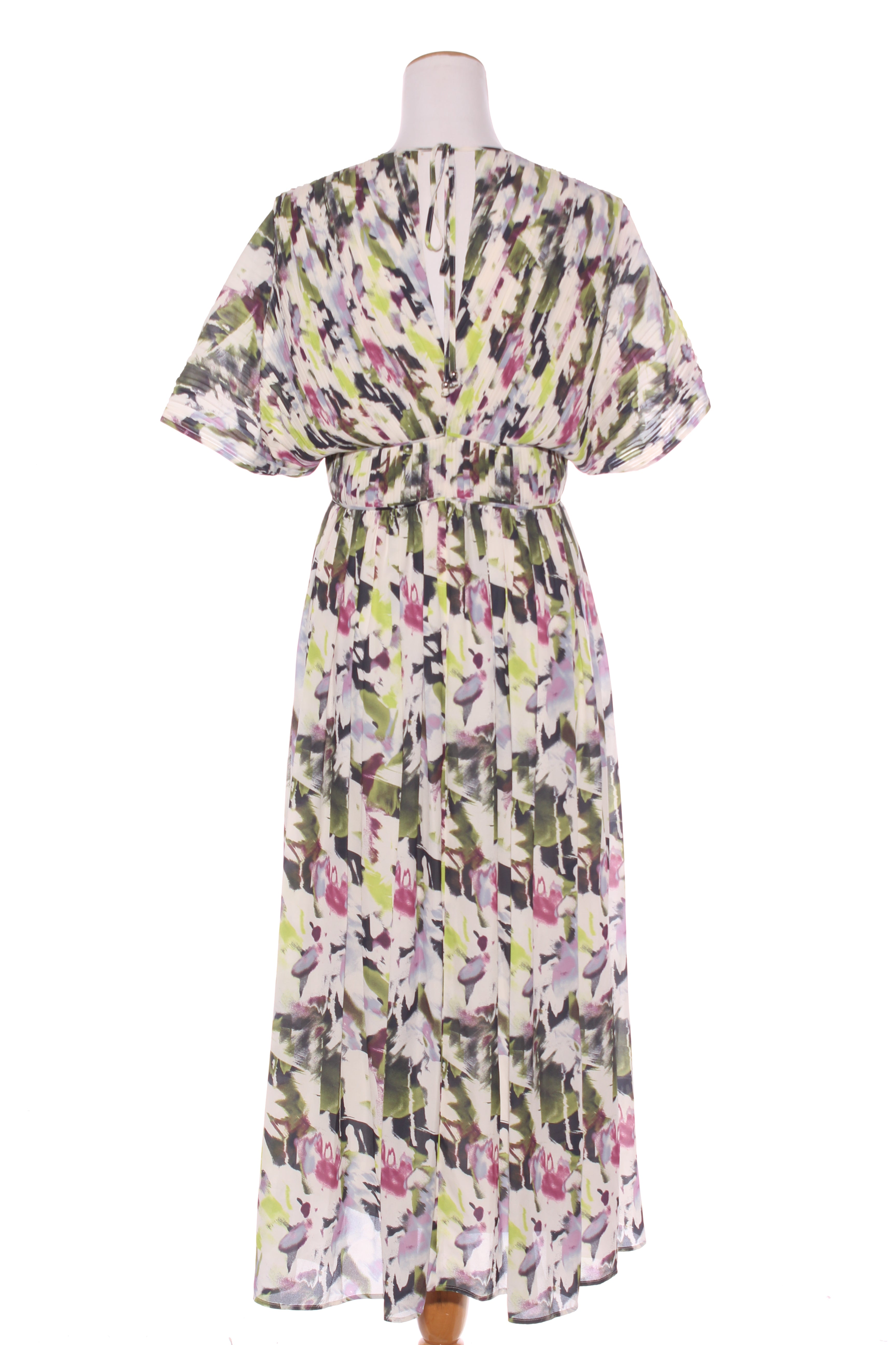 SIZE ON TAG: UK10FITS LIKE: N/ACOLOUR: MultiFABRIC: PolyesterCONDITION: Like newMEASUREMENTS:BUST: 44cms WAIST: 39cms LENGTH: 132cmsNOTES: Discover the elegance of the BOSS Short-sleeved dress with cut-out details. This...