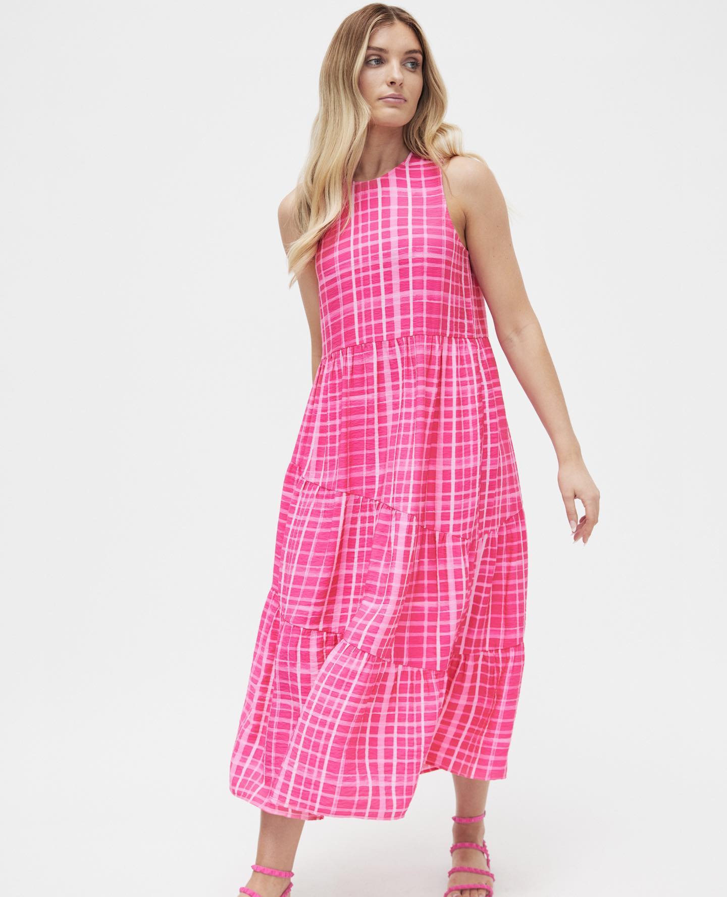 SIZE ON TAG: 10FITS LIKE: N/ACOLOUR: PinkFABRIC: 80% viscose, 20% nylonCONDITION: Brand new with tagMEASUREMENTS:BUST: 49cms WAIST: 47cms LENGTH: 121cmsNOTES: Button up nape of neck. Side...
