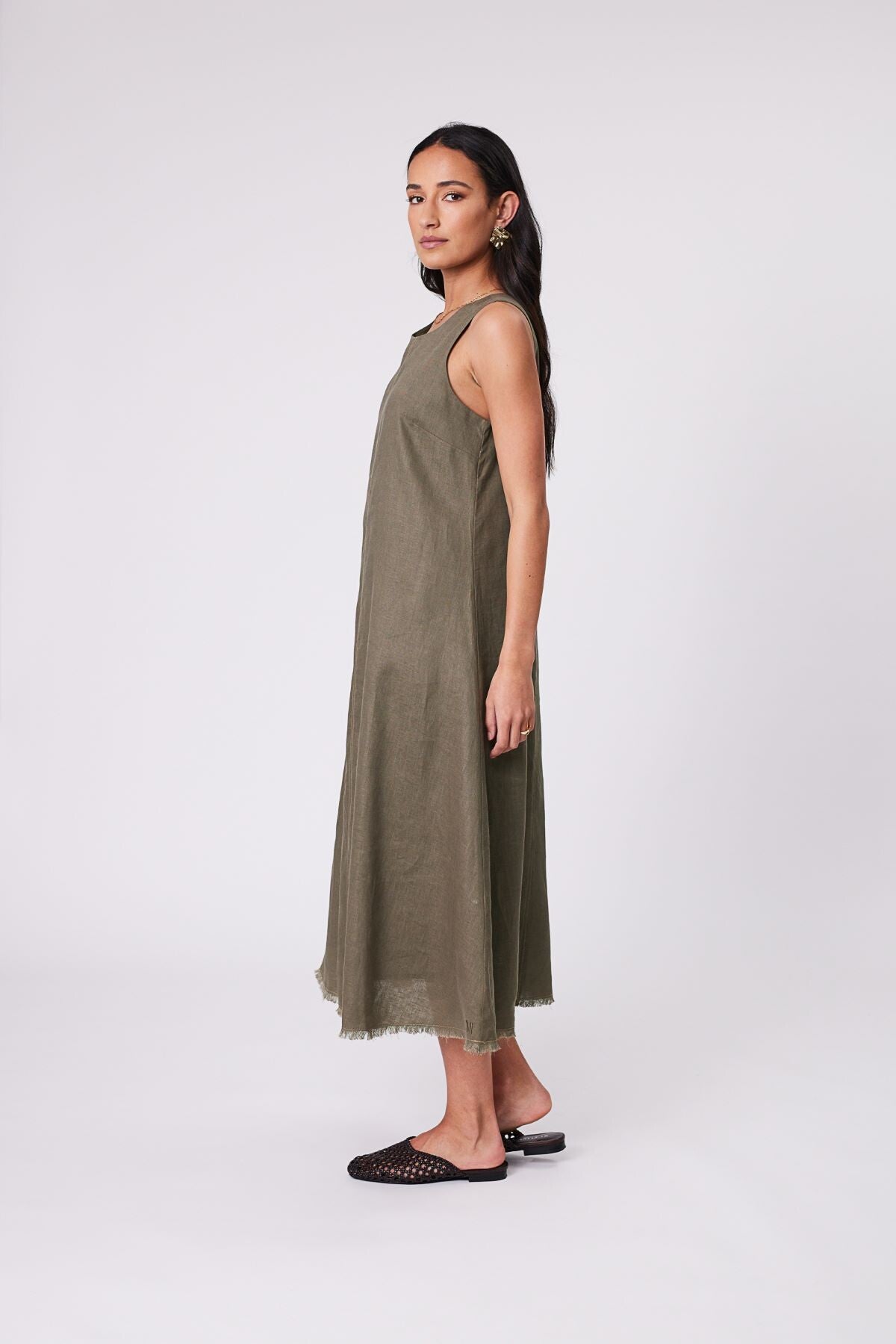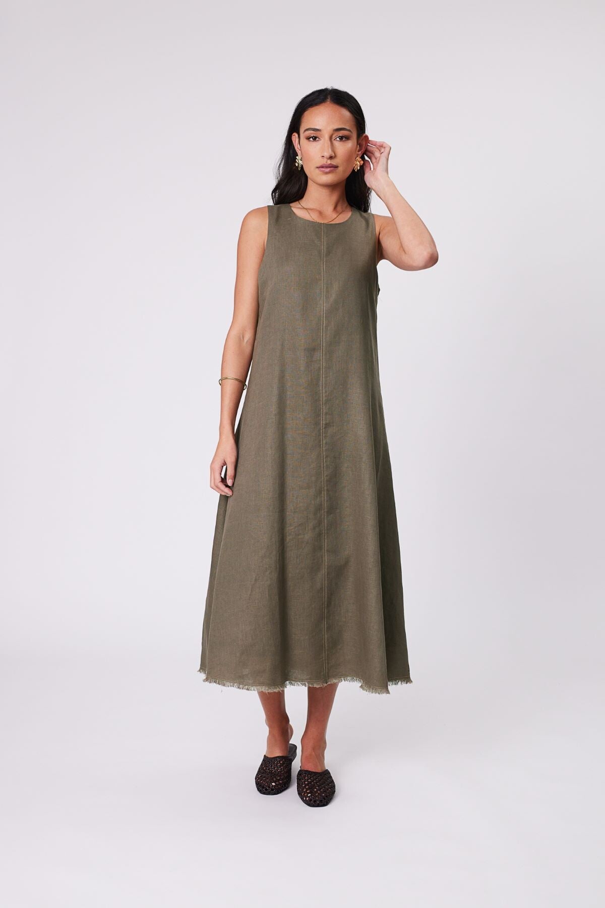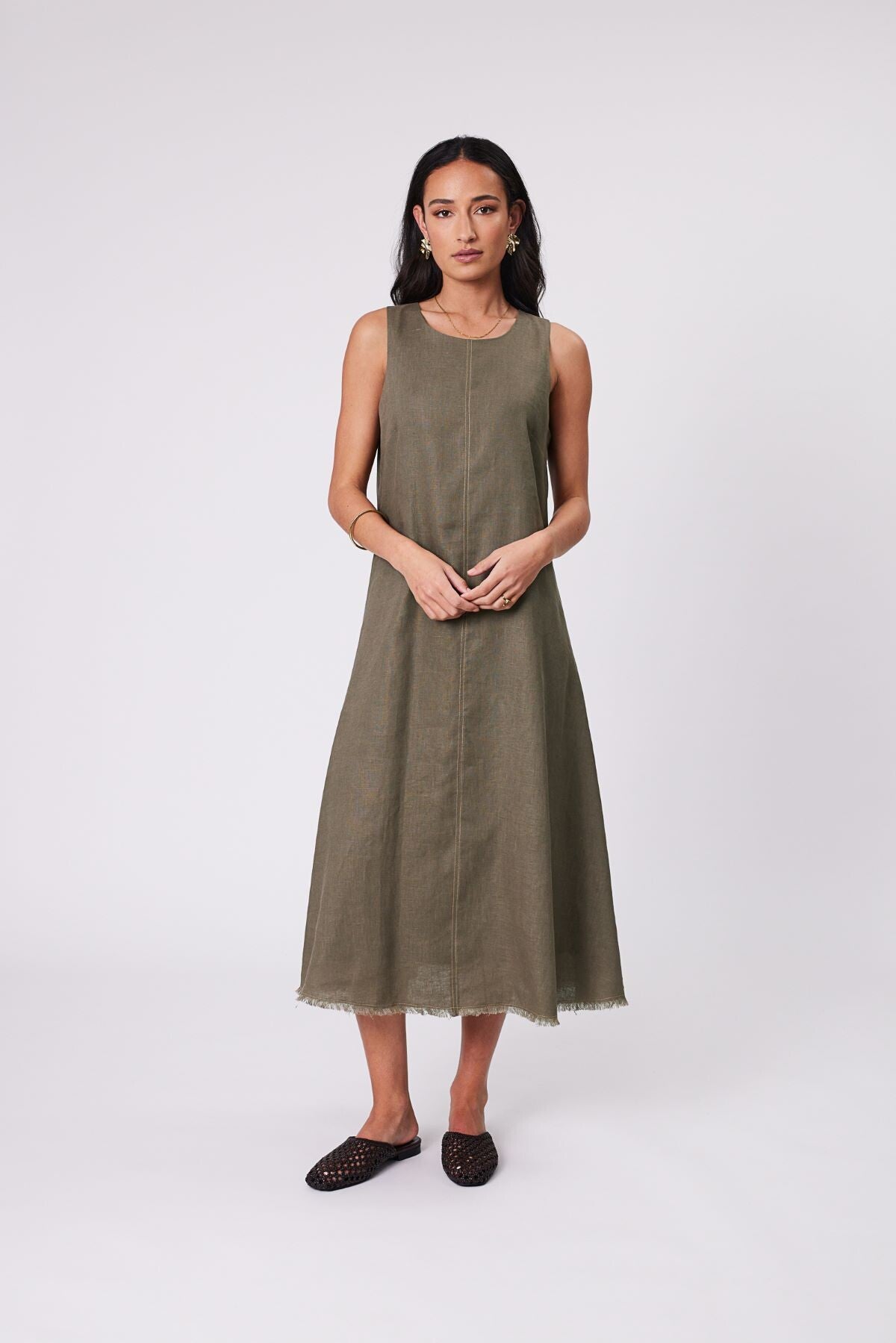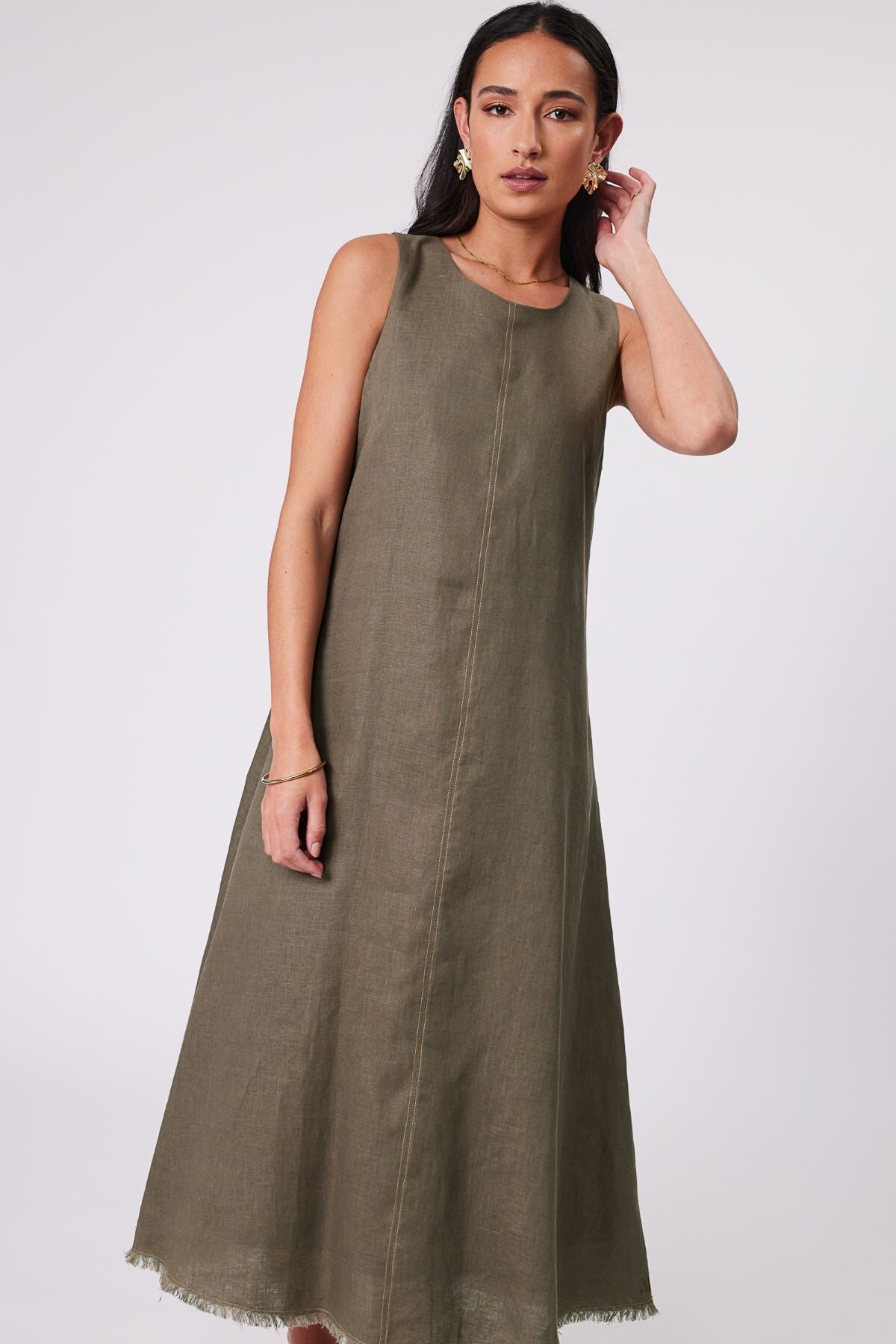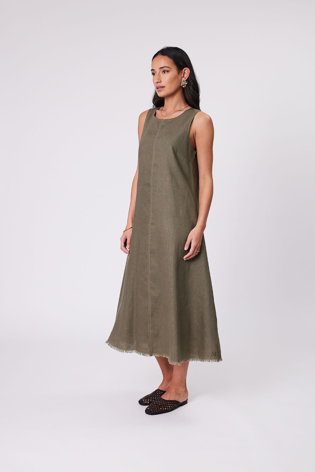 SIZE ON TAG: XLFITS LIKE: 16COLOUR: KhakiFABRIC: Linen, Lining - CottonCONDITION: Like newMEASUREMENTS:BUST: 56cms WAIST: 56cms LENGTH: 122cmsNOTES: The Florence Linen Dress is your new best...