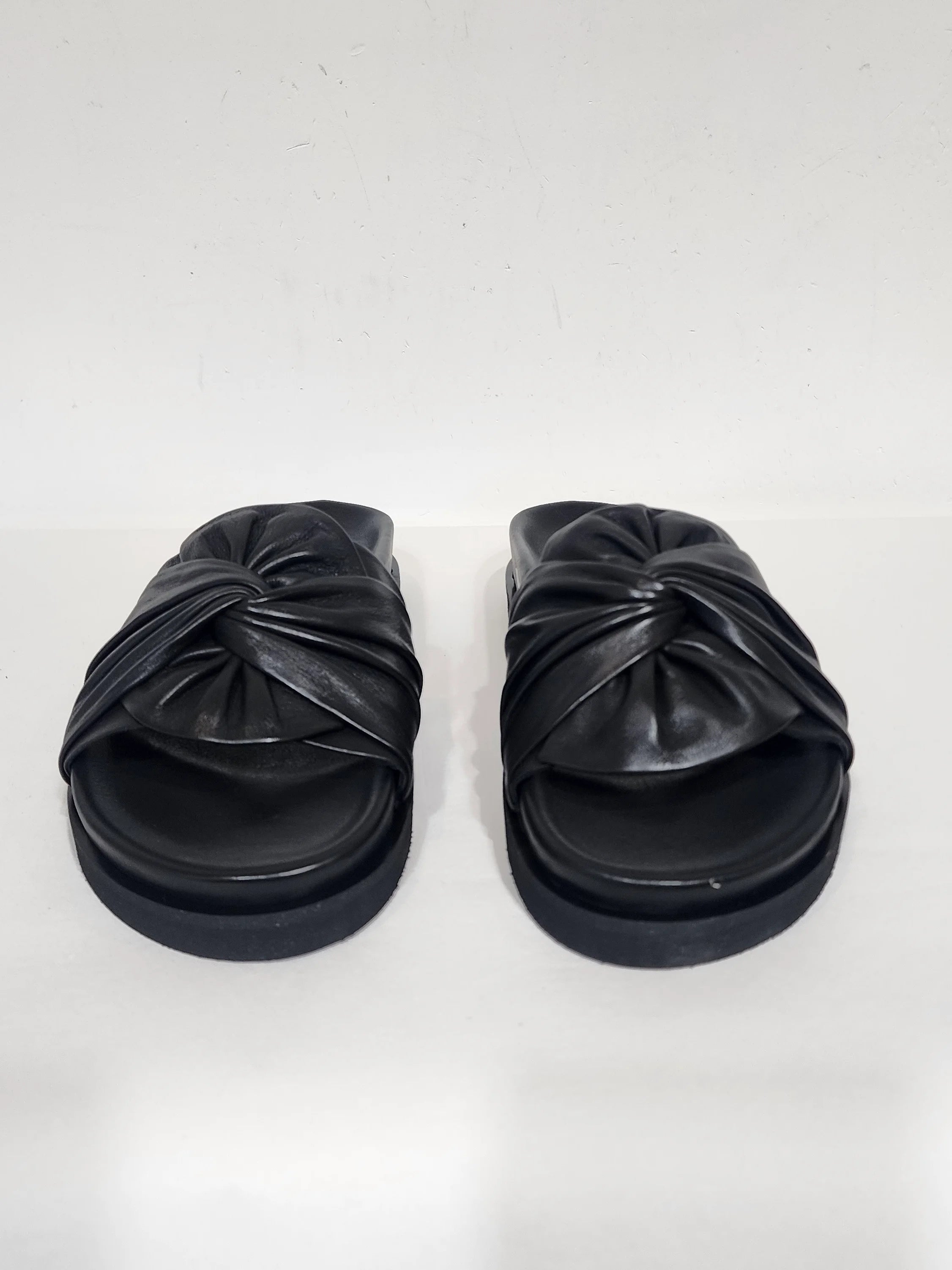 SIZE ON SHOE: 40FITS LIKE: 9COLOUR: BlackFABRIC: Leather upper, leather lining, rubber sole CONDITION: Like newMEASUREMENTS:INNER SOLE: 27cms WIDTH: 10cms HEEL: 3cms NOTES: The Tubist Sandals by...
