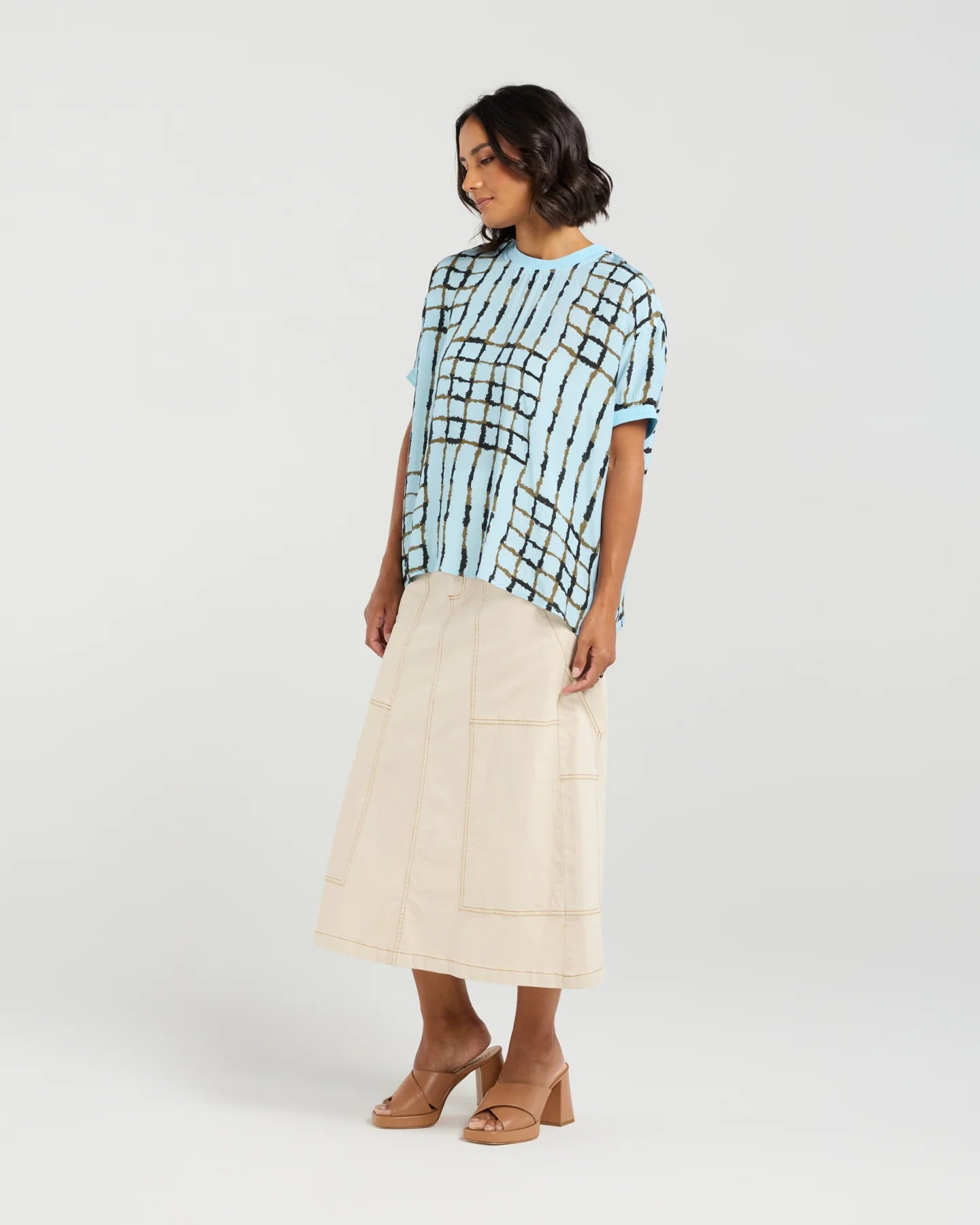 SIZE ON TAG: MFITS LIKE: 12COLOUR: Beige, charcoal grey, brownFABRIC: 55% linen, 45% polyesterCONDITION: Excellent prelovedMEASUREMENTS:BUST: 54cms WAIST: 53cms LENGTH: 61-65cmsNOTES: Fabric has stretch.