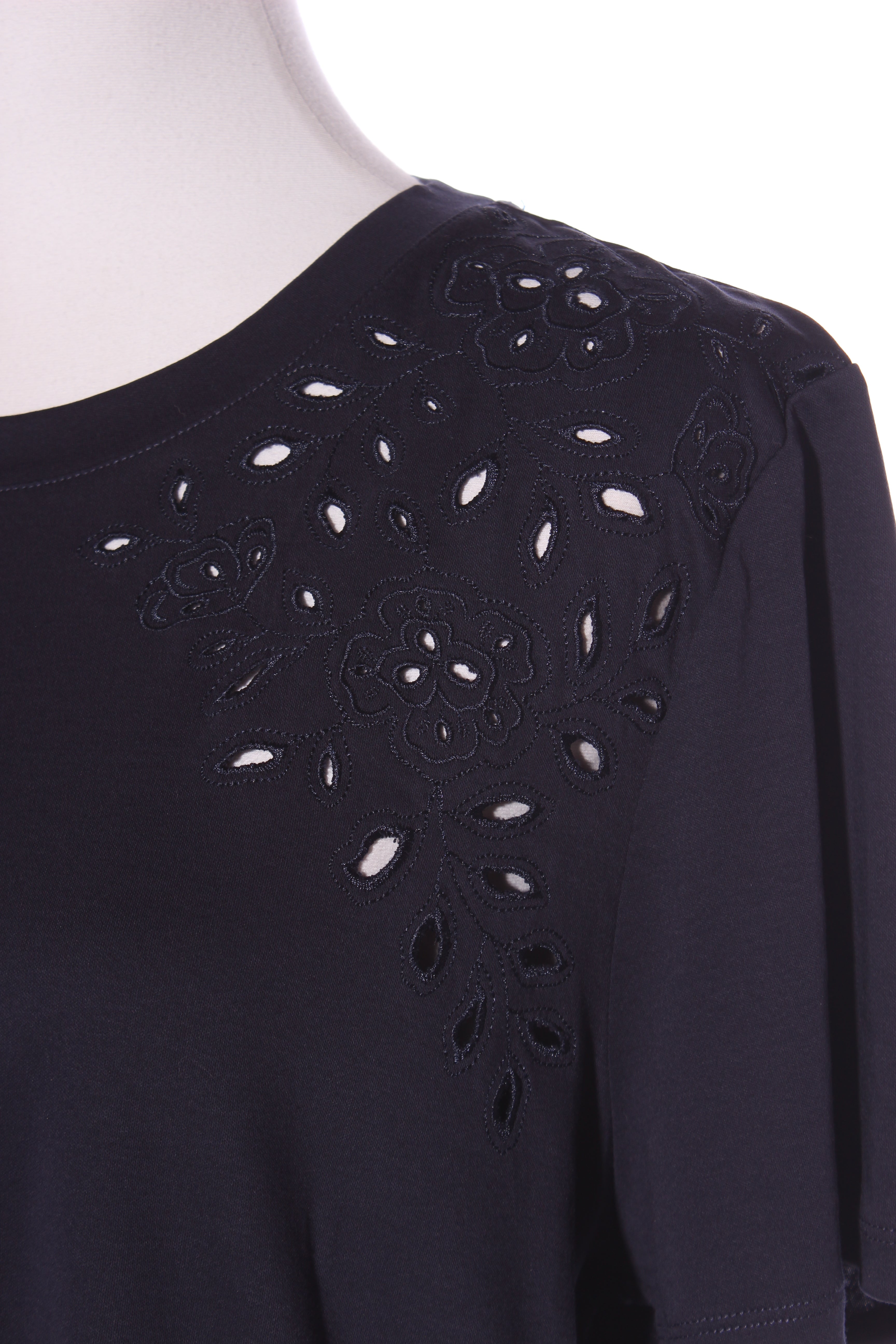 SIZE ON TAG: LFITS LIKE: 14COLOUR: Navy blueFABRIC: CottonCONDITION: Excellent preloved - hardly wornMEASUREMENTS:BUST: 57cms WAIST: 56cms LENGTH: 63cmsNOTES: S22 collection. Fabric has stretch.