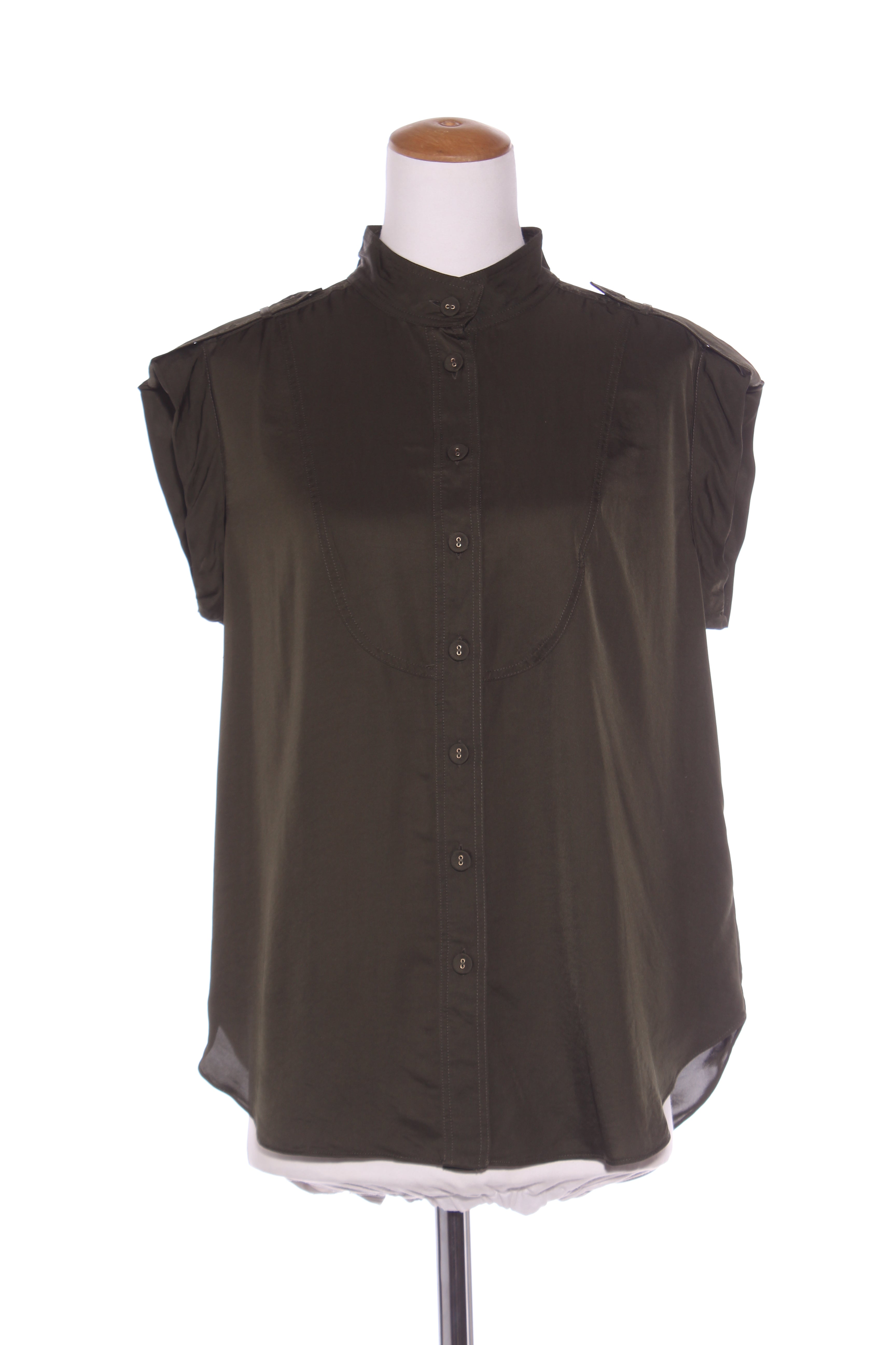 SIZE ON TAG: 10FITS LIKE: 10-12COLOUR: TaupeFABRIC: 59% cupro, 41% viscoseCONDITION: Excellent prelovedMEASUREMENTS:BUST: 59cms WAIST: 59cms LENGTH: 57-63cmsNOTES: This shirt is made using soft cupro blended...