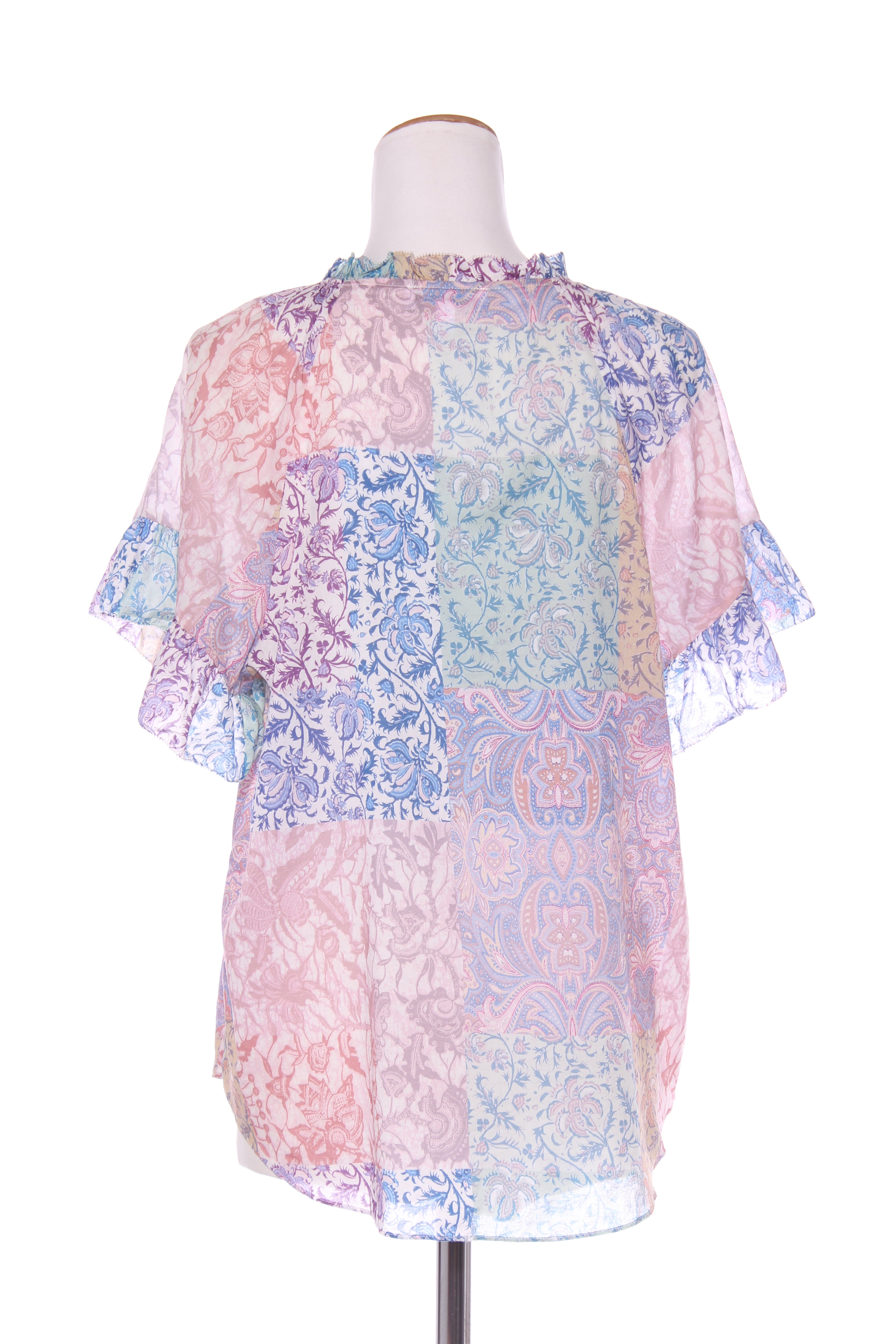 SIZE ON TAG: LFITS LIKE: 14COLOUR: Beige, blue, blackFABRIC: ModalCONDITION: Excellent prelovedMEASUREMENTS:BUST: 60cms WAIST: 62cms LENGTH: 64cmsNOTES: This blouse is made from silky-soft modal, screen printed...