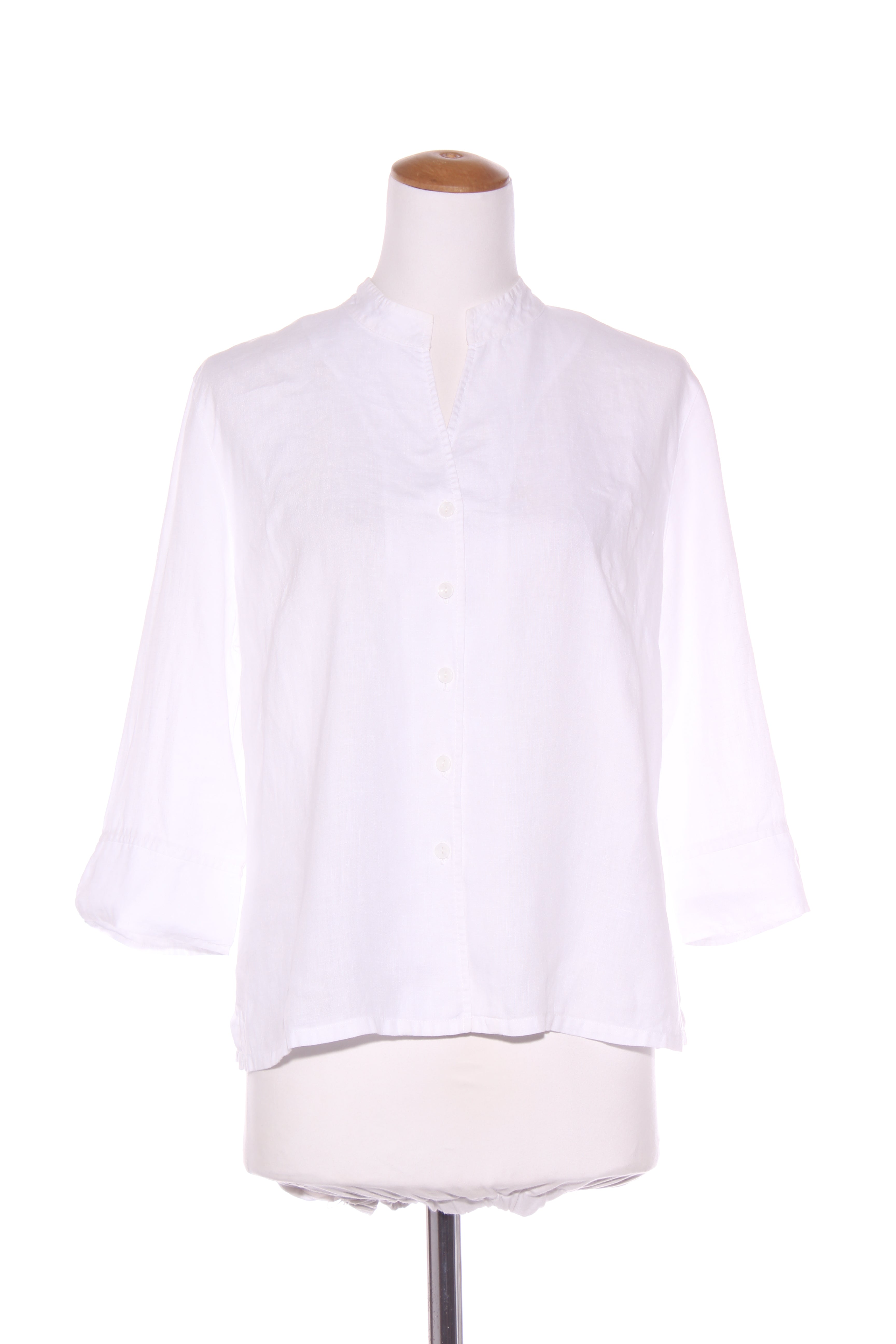 SIZE ON TAG: 12FITS LIKE: N/ACOLOUR: WhiteFABRIC: LinenCONDITION: Excellent prelovedMEASUREMENTS:BUST: 54cms WAIST: 50cms LENGTH: 61cmsNOTES: Button up front.