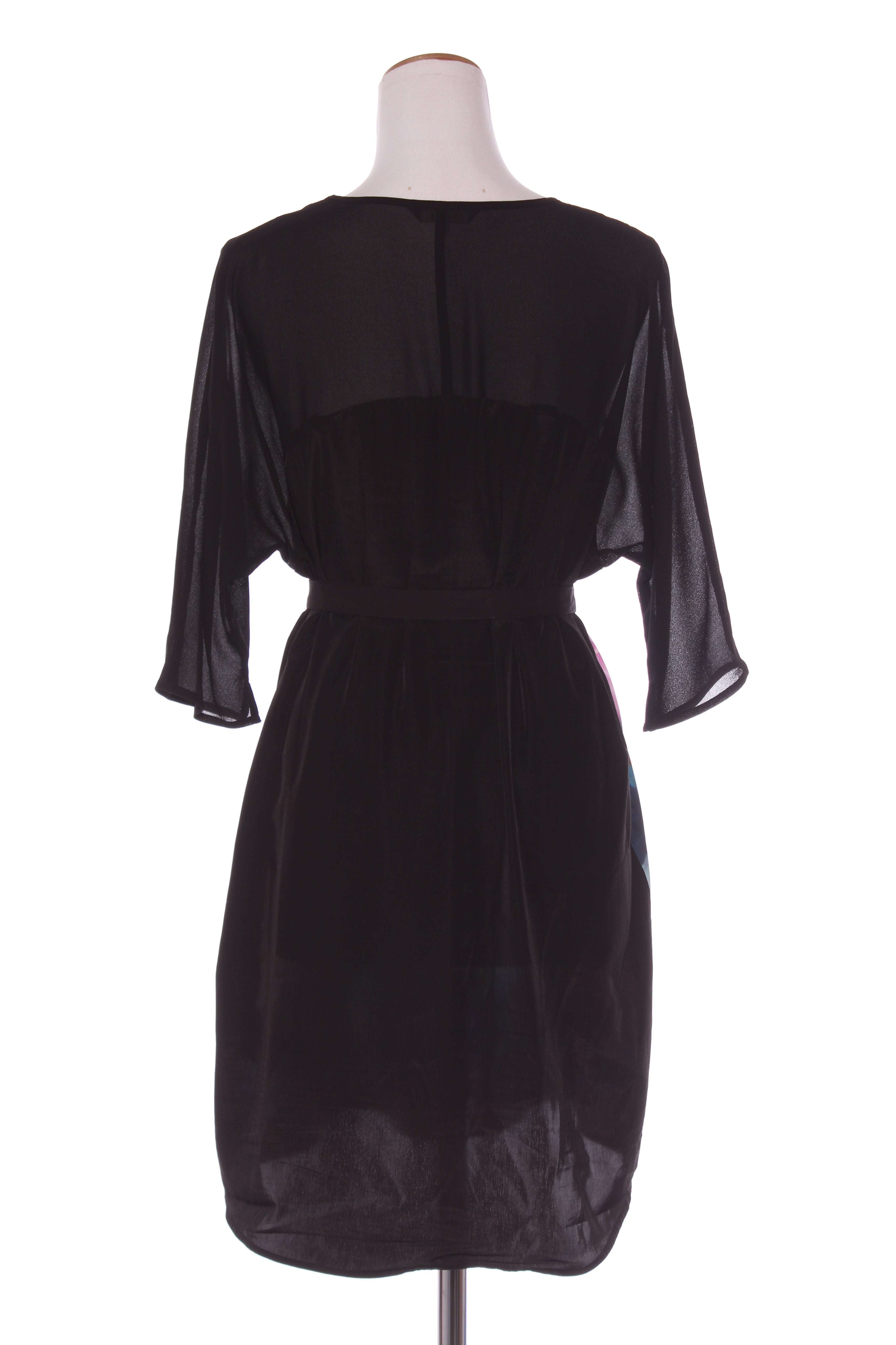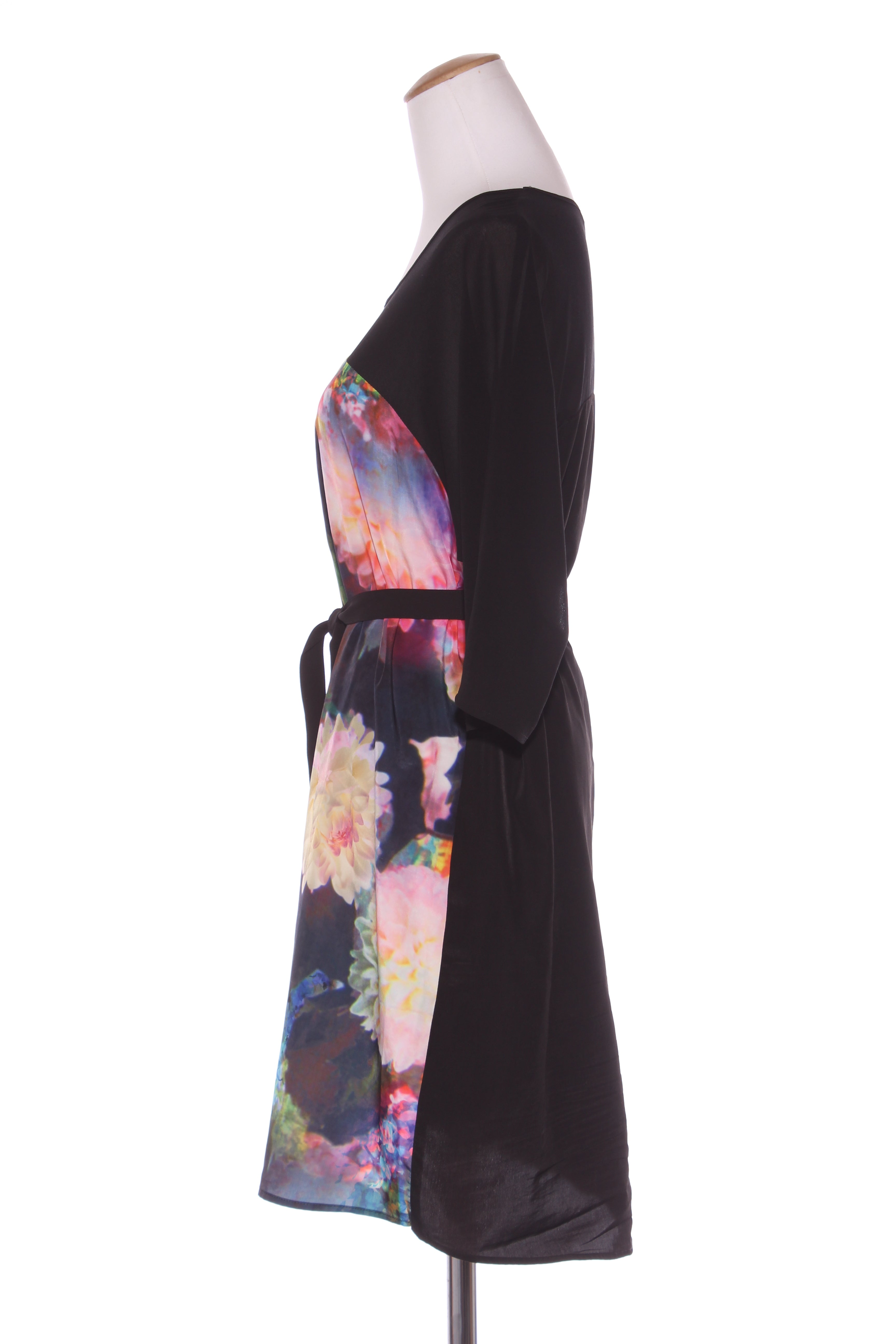 SIZE ON TAG: 14FITS LIKE: N/ACOLOUR: Black, pink, yellow, multiFABRIC: PolyesterCONDITION: Excellent prelovedMEASUREMENTS:BUST: 55cms WAIST: 55cms LENGTH: 92cmsNOTES: Pull over style. Comes with matching belt.