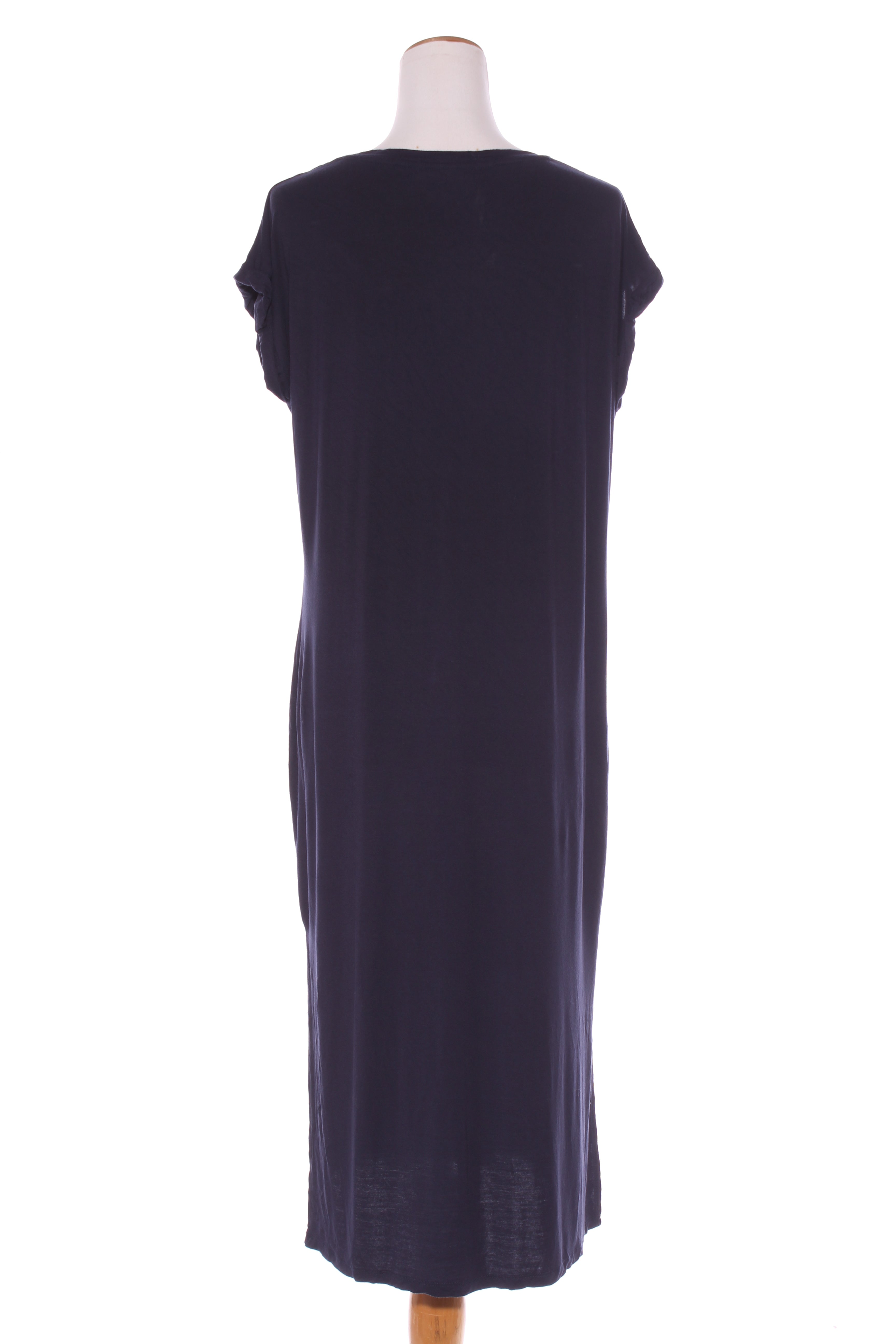 SIZE ON TAG: 12FITS LIKE: N/ACOLOUR: Navy blueFABRIC: Viscose, elastaneCONDITION: Excellent prelovedMEASUREMENTS:BUST: 58cms WAIST: 53cms LENGTH: 120cmsNOTES: Pull over style. Fabric has stretch. Side splits up...