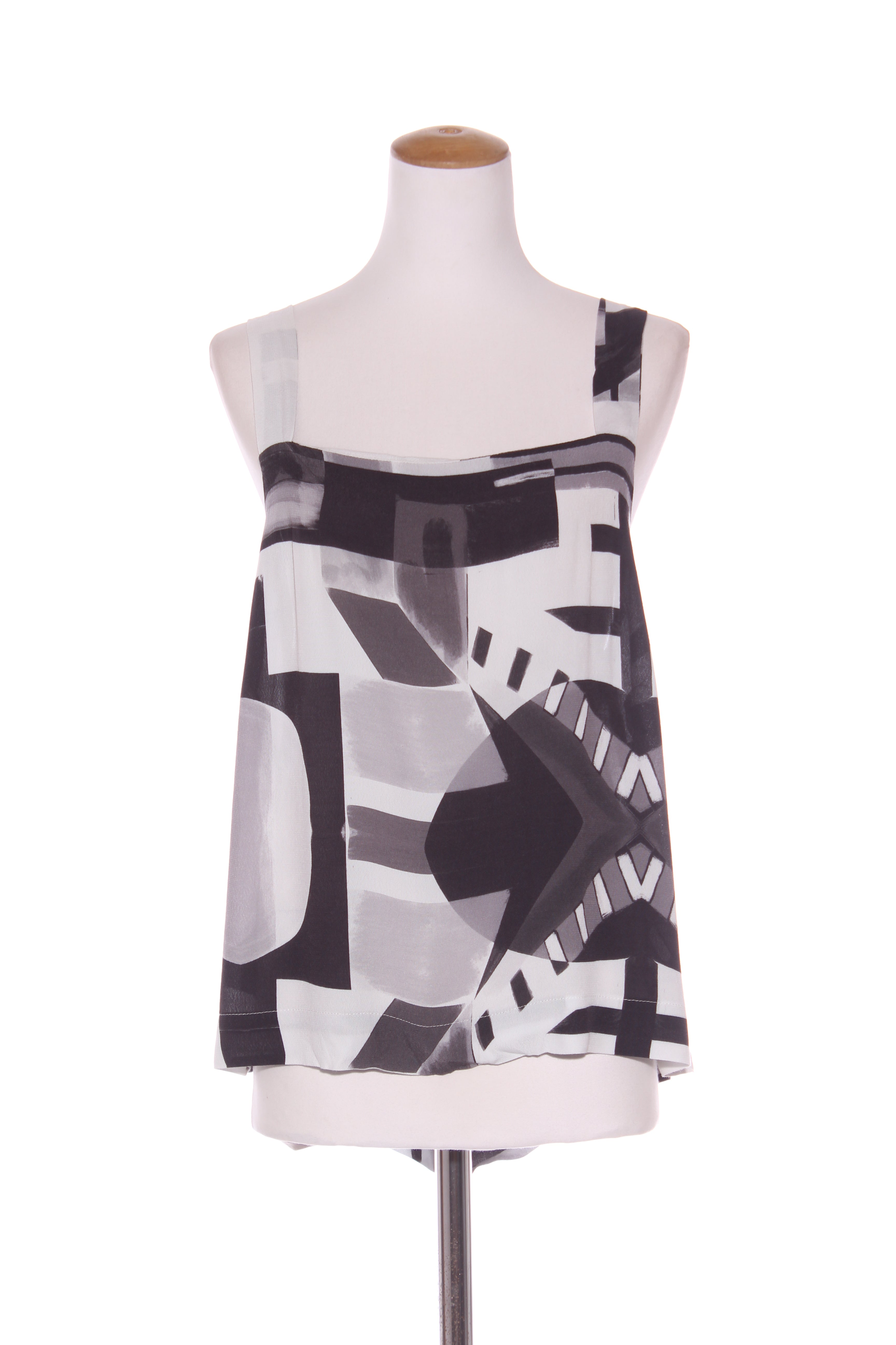 SIZE ON TAG: 14FITS LIKE: N/ACOLOUR: Multi, charcoal greyFABRIC: No tag, silkCONDITION: Very good preloved - couple of tiny fine pulls - hardly noticeableMEASUREMENTS:BUST: 60cms WAIST: 56cms ...