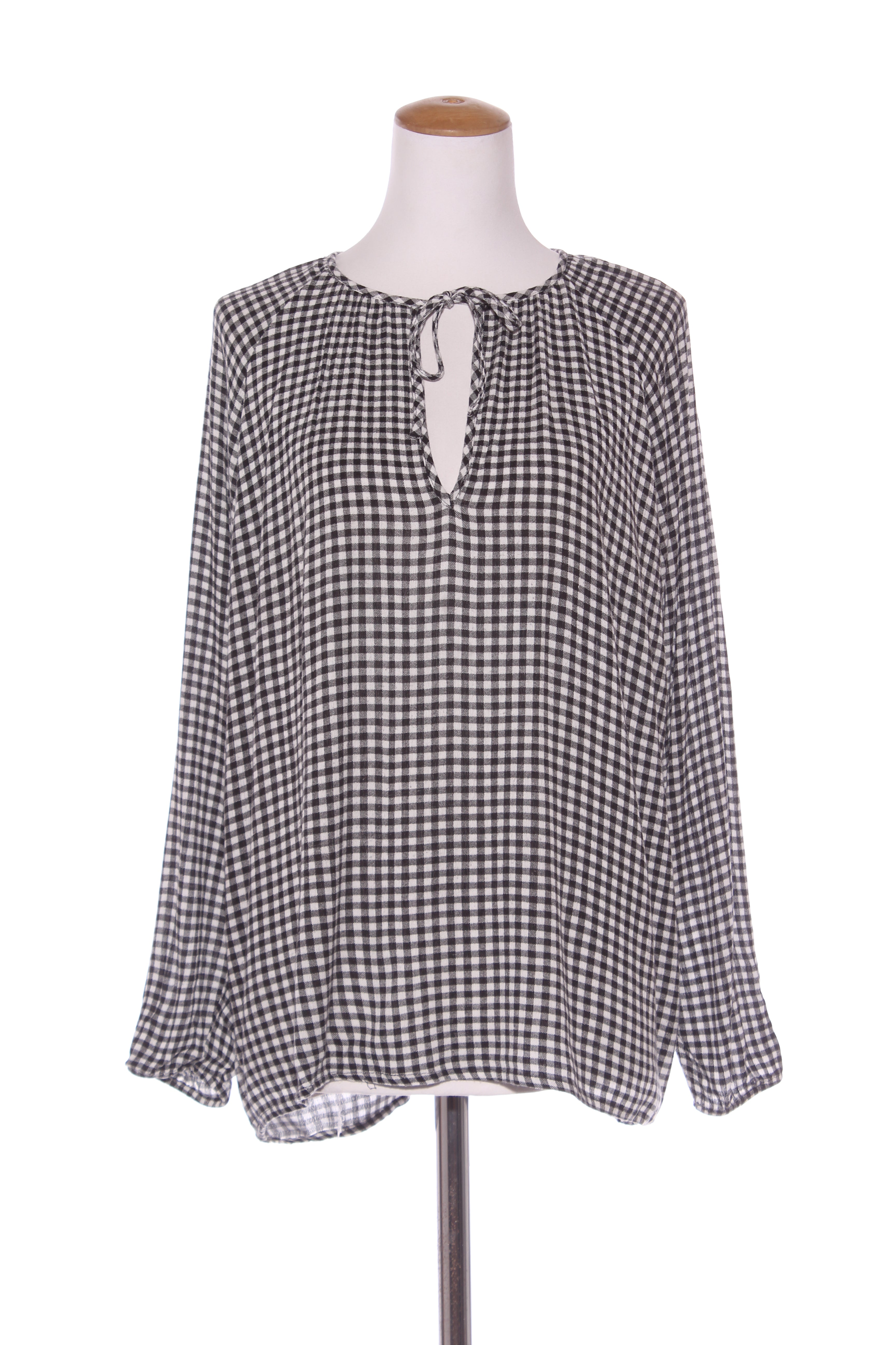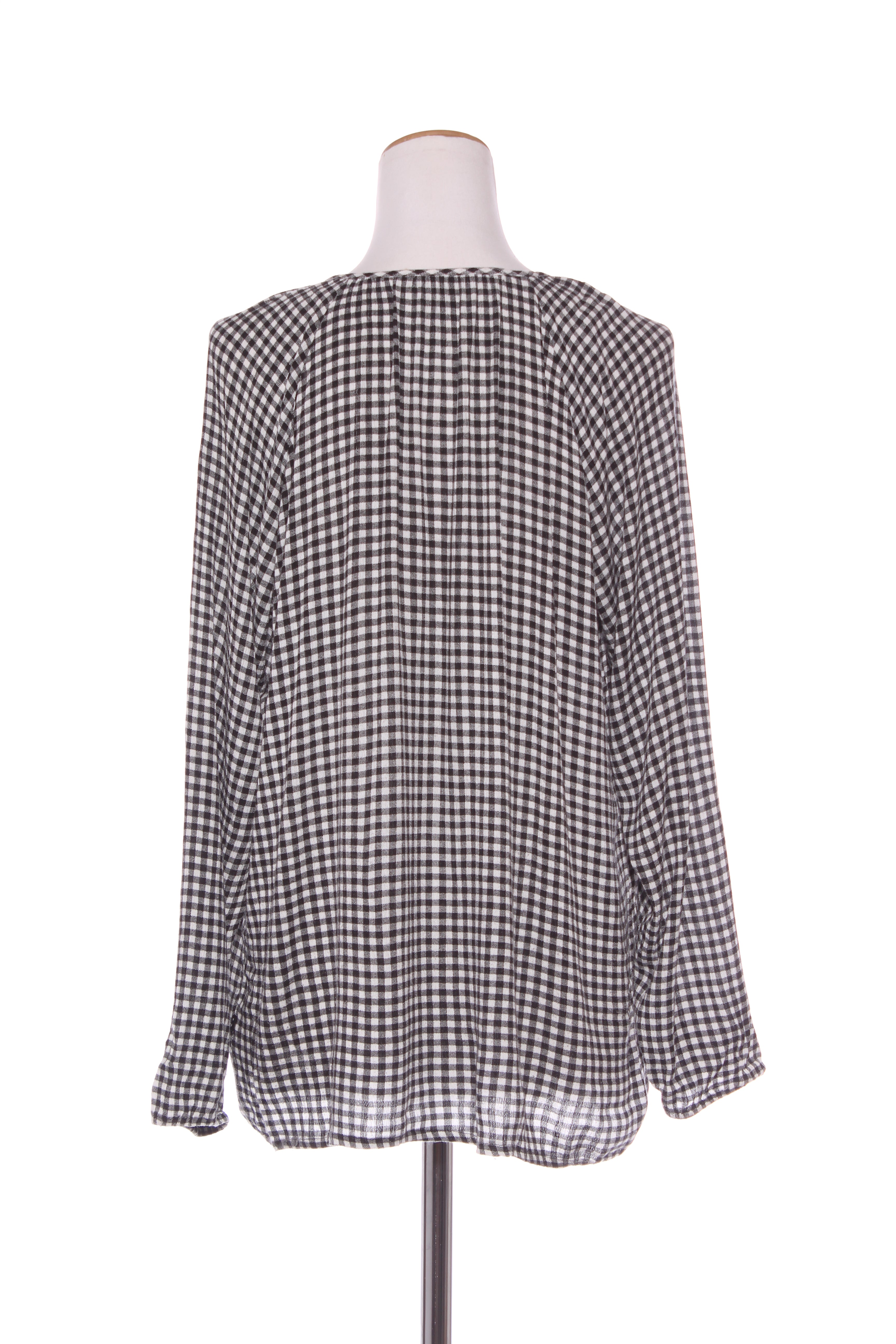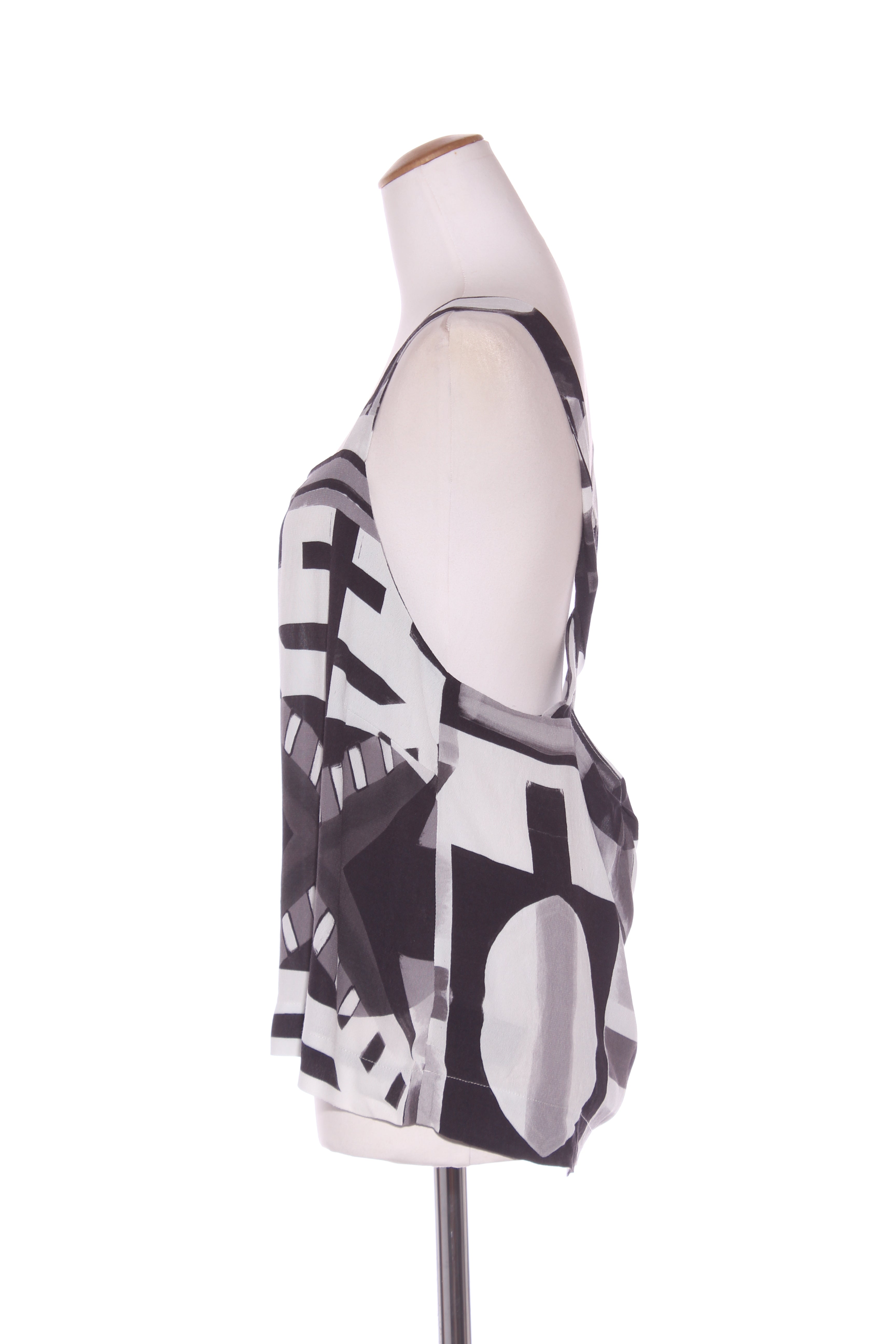 SIZE ON TAG: 10FITS LIKE: 10-12COLOUR: Black, whiteFABRIC: RayonCONDITION: Excellent prelovedMEASUREMENTS:BUST: 63cms WAIST: 63cms LENGTH: 70cmsNOTES: Nice, lightweight rayon fabric. Ties at front of neckline. Elasticated...