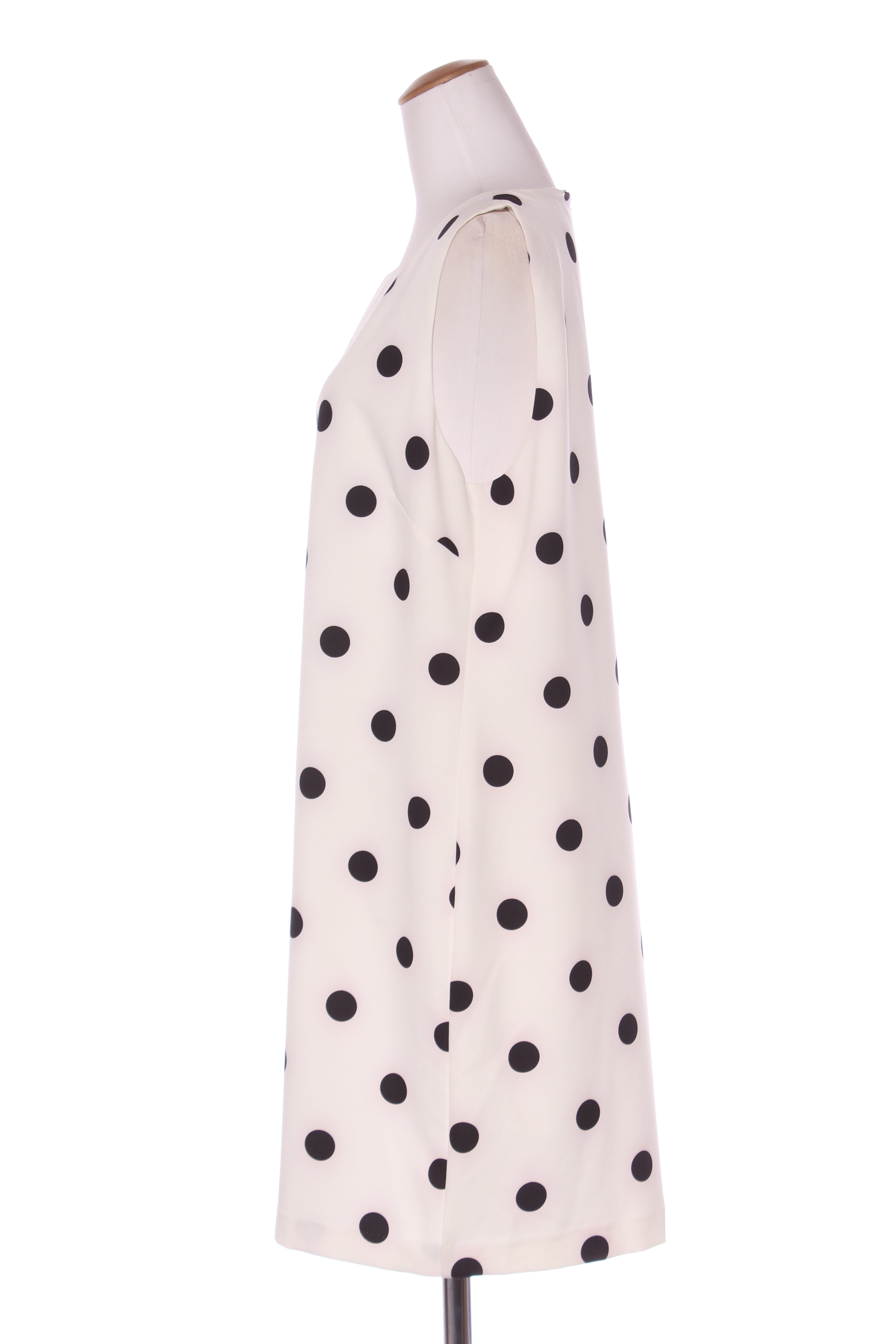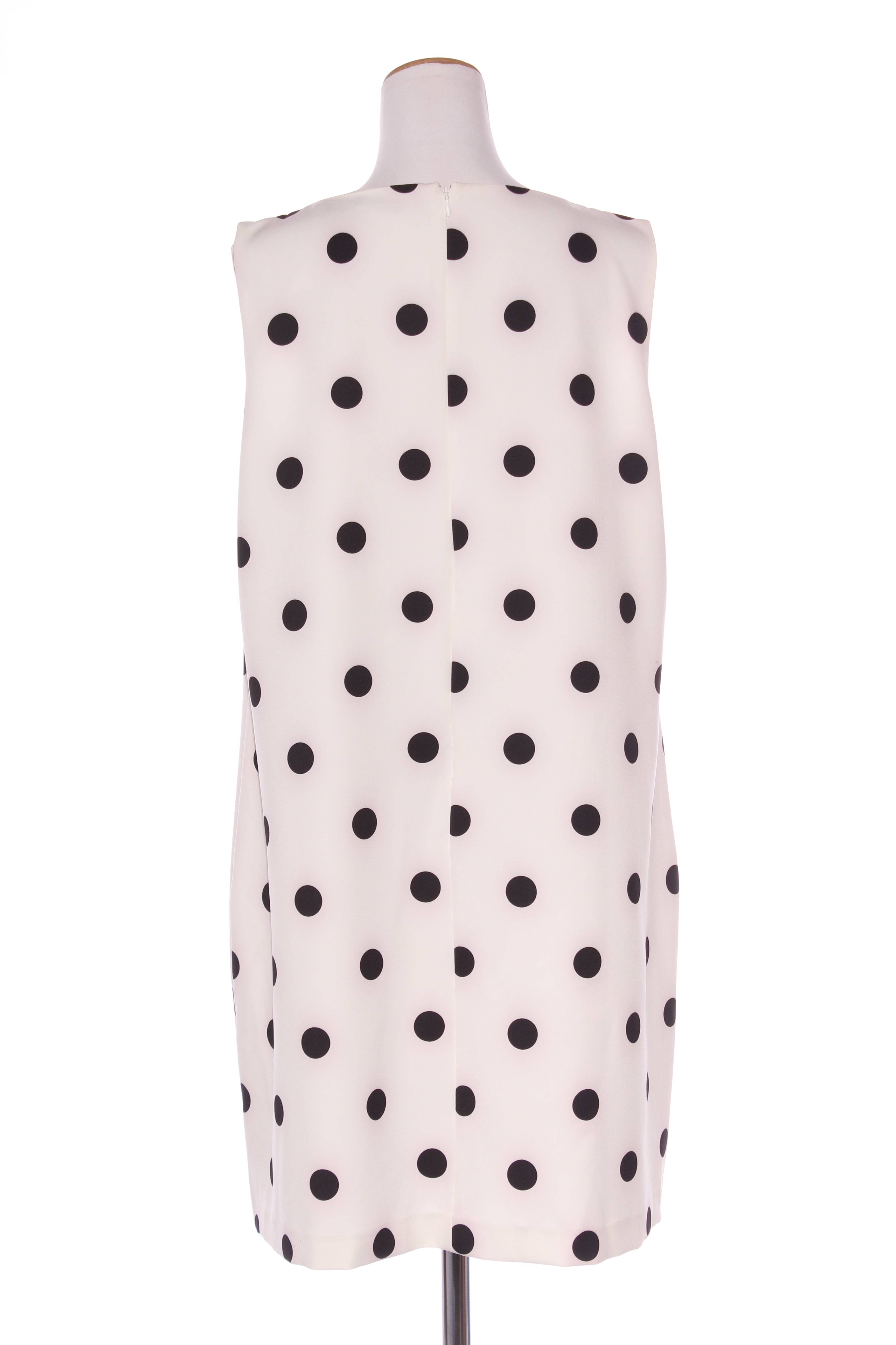 SIZE ON TAG: LFITS LIKE: 12COLOUR: Black, whiteFABRIC: PolyesterCONDITION: Excellent prelovedMEASUREMENTS:BUST: 54cms WAIST: 54cms LENGTH: 72cmsNOTES: Button up front and sleeve ends. Slip required.
