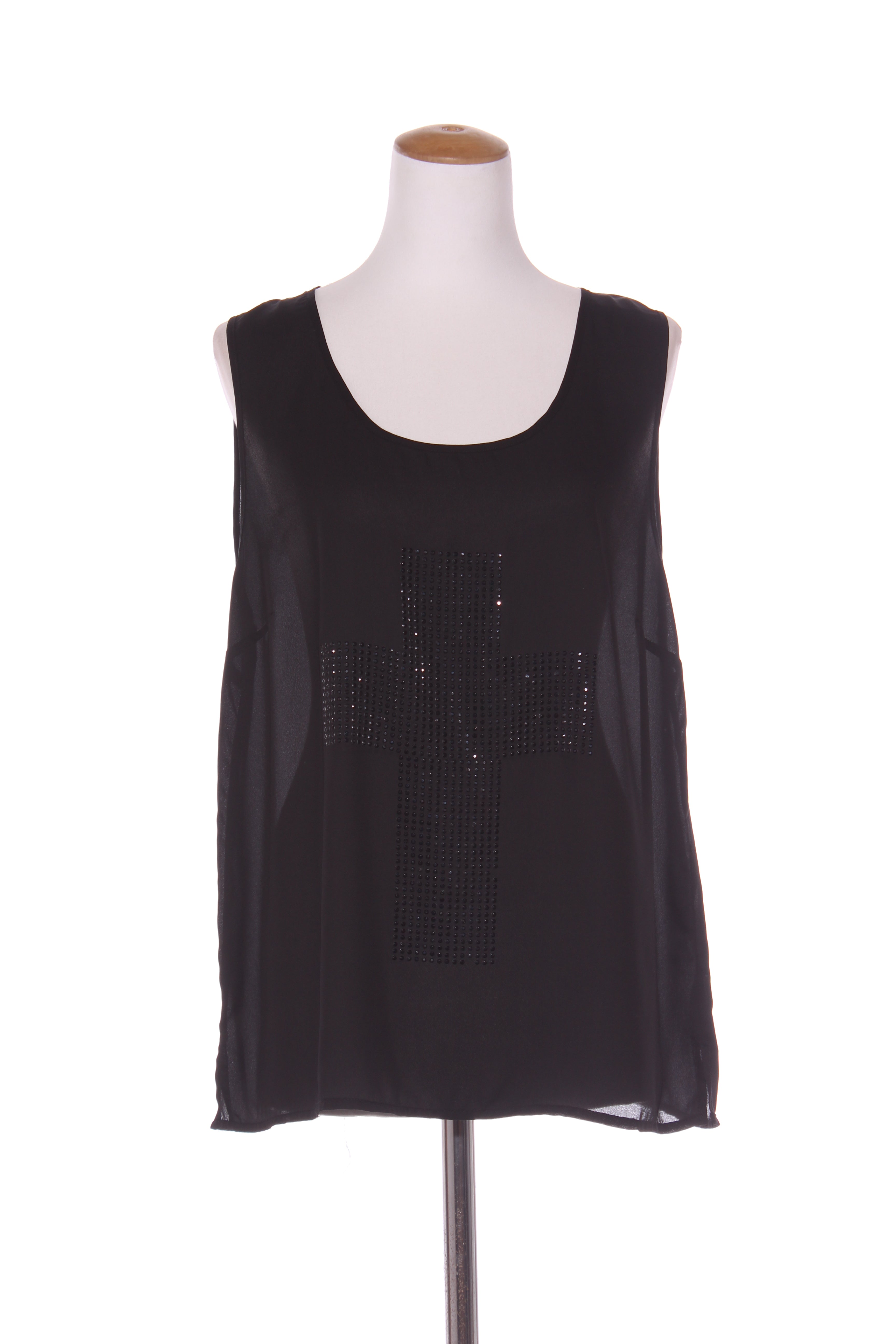 SIZE ON TAG: 14FITS LIKE: N/ACOLOUR: BlackFABRIC: 70% cotton, 30% nylonCONDITION: Like newMEASUREMENTS:BUST: 61cms WAIST: 58cms LENGTH: 55-70cmsNOTES: Single front pocket with embroidered detail. Fabric has...