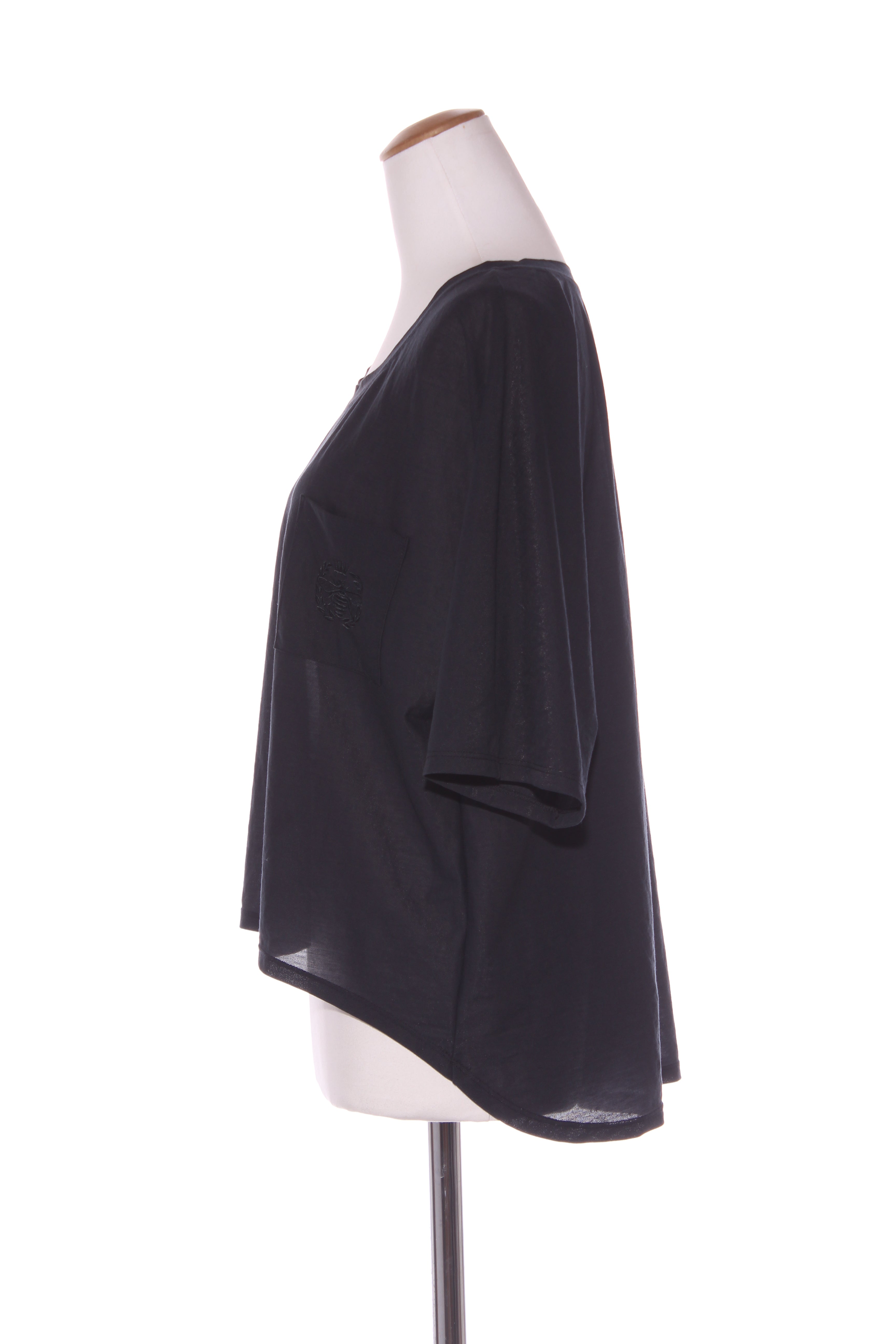 SIZE ON TAG: 14FITS LIKE: N/ACOLOUR: Navy blueFABRIC: 70% cotton, 30% nylonCONDITION: Like newMEASUREMENTS:BUST: 61cms WAIST: 58cms LENGTH: 55-70cmsNOTES: Single front pocket with embroidered detail. Fabric...