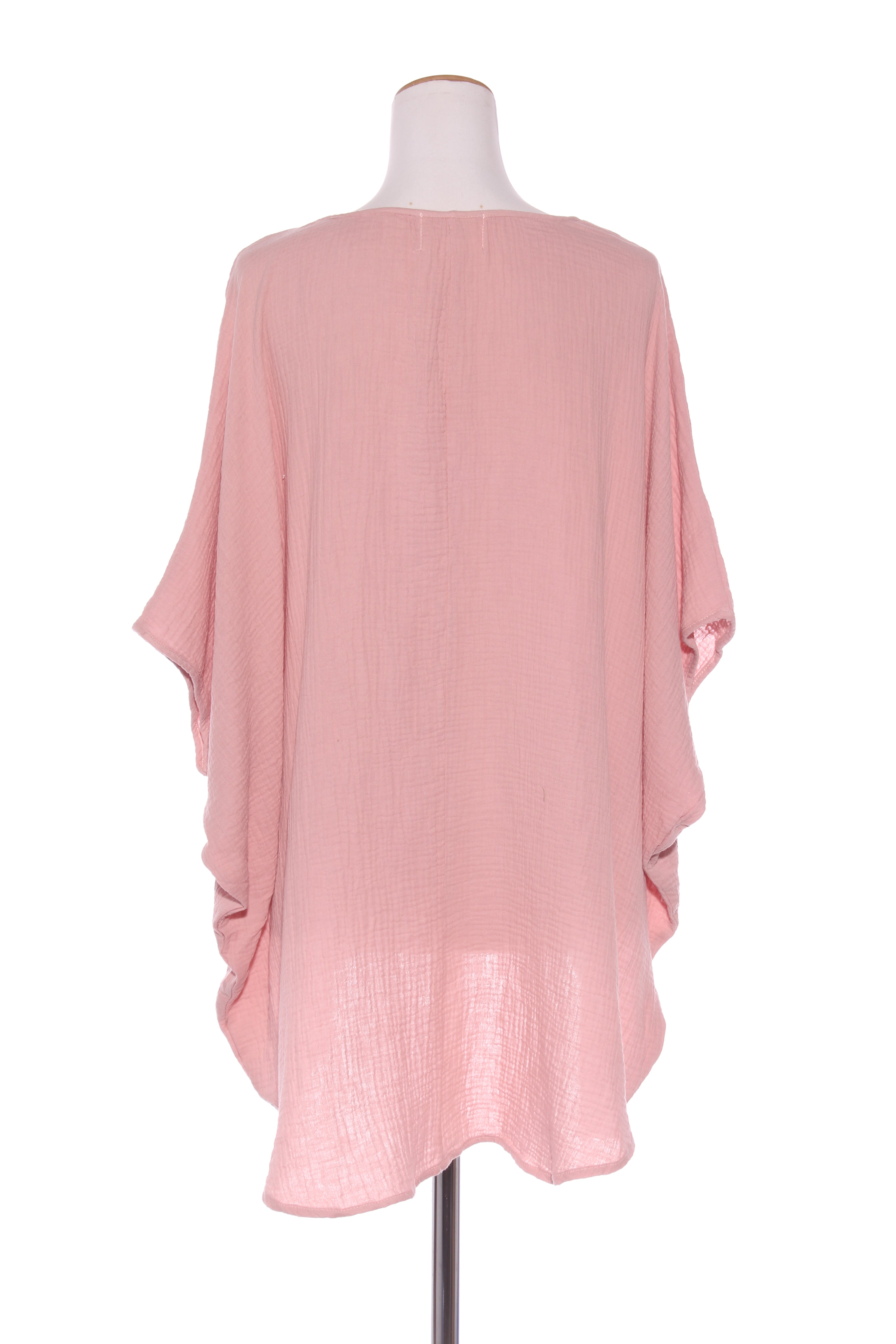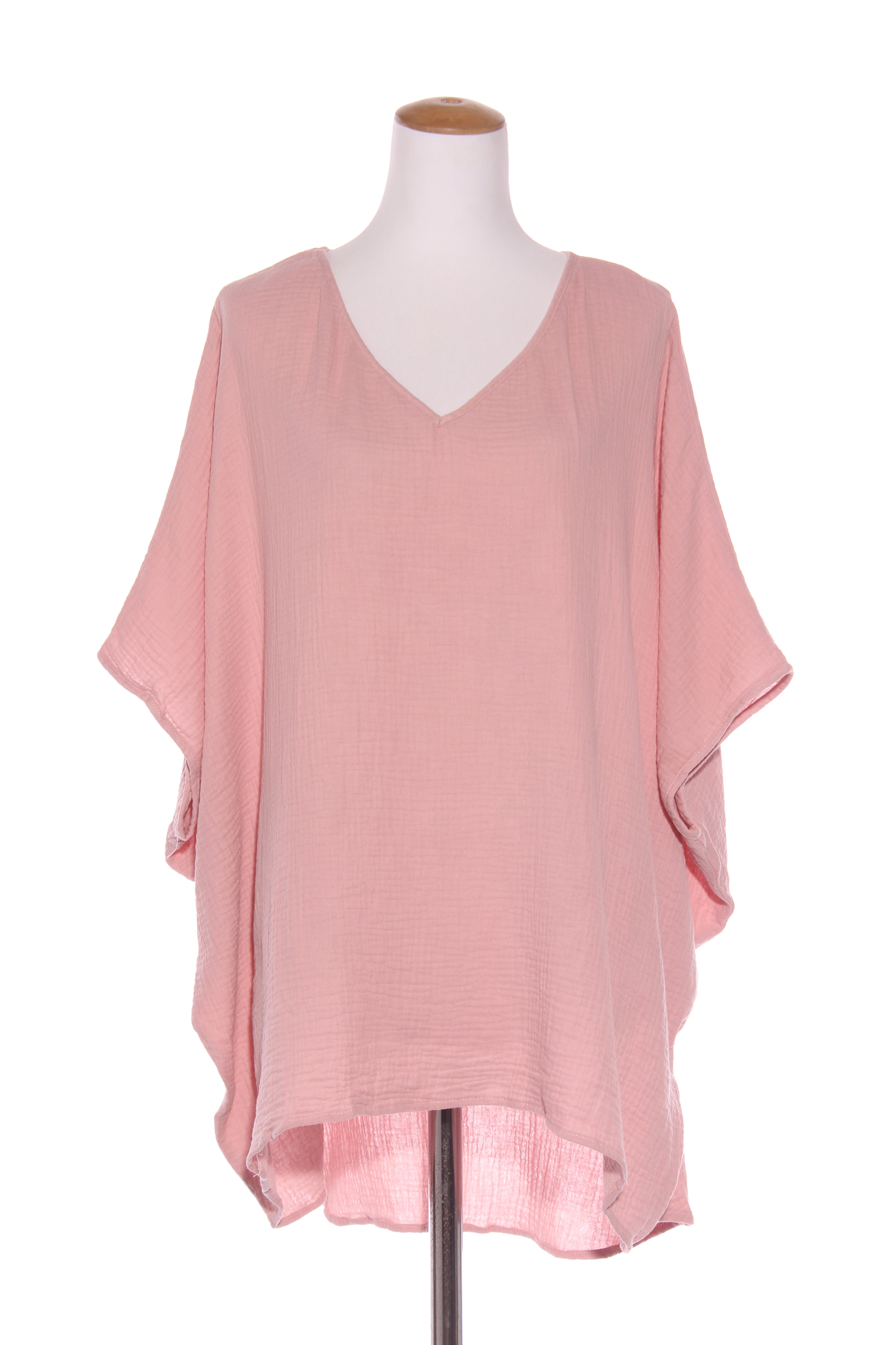 SIZE ON TAG: L/X6LFITS LIKE: 14-18COLOUR: Blush pinkFABRIC: CottonCONDITION: Excellent prelovedMEASUREMENTS:BUST: Free WAIST: 87cms LENGTH: 72-90cmsNOTES: Pull over style. Fabric has some stretch.
