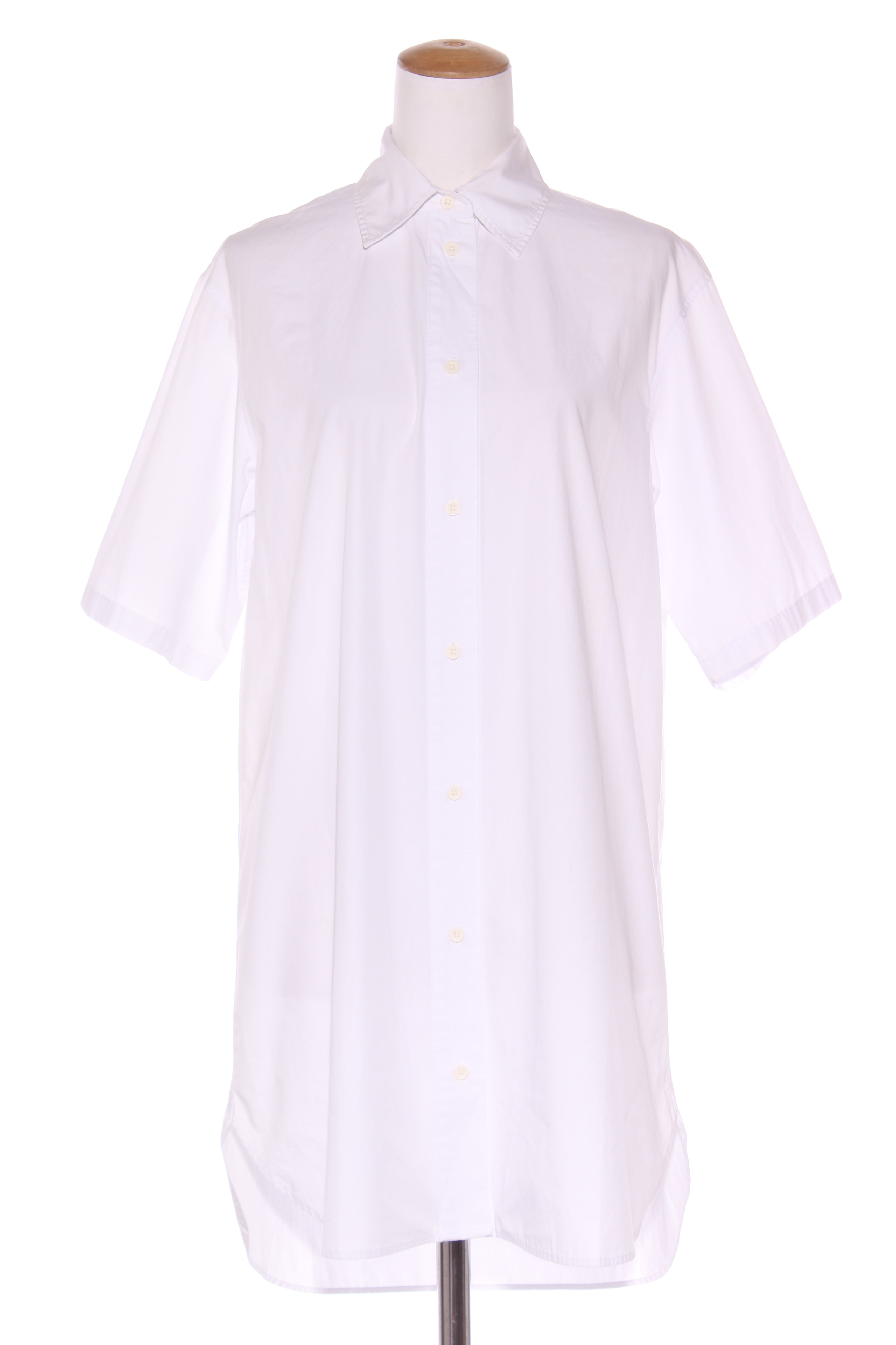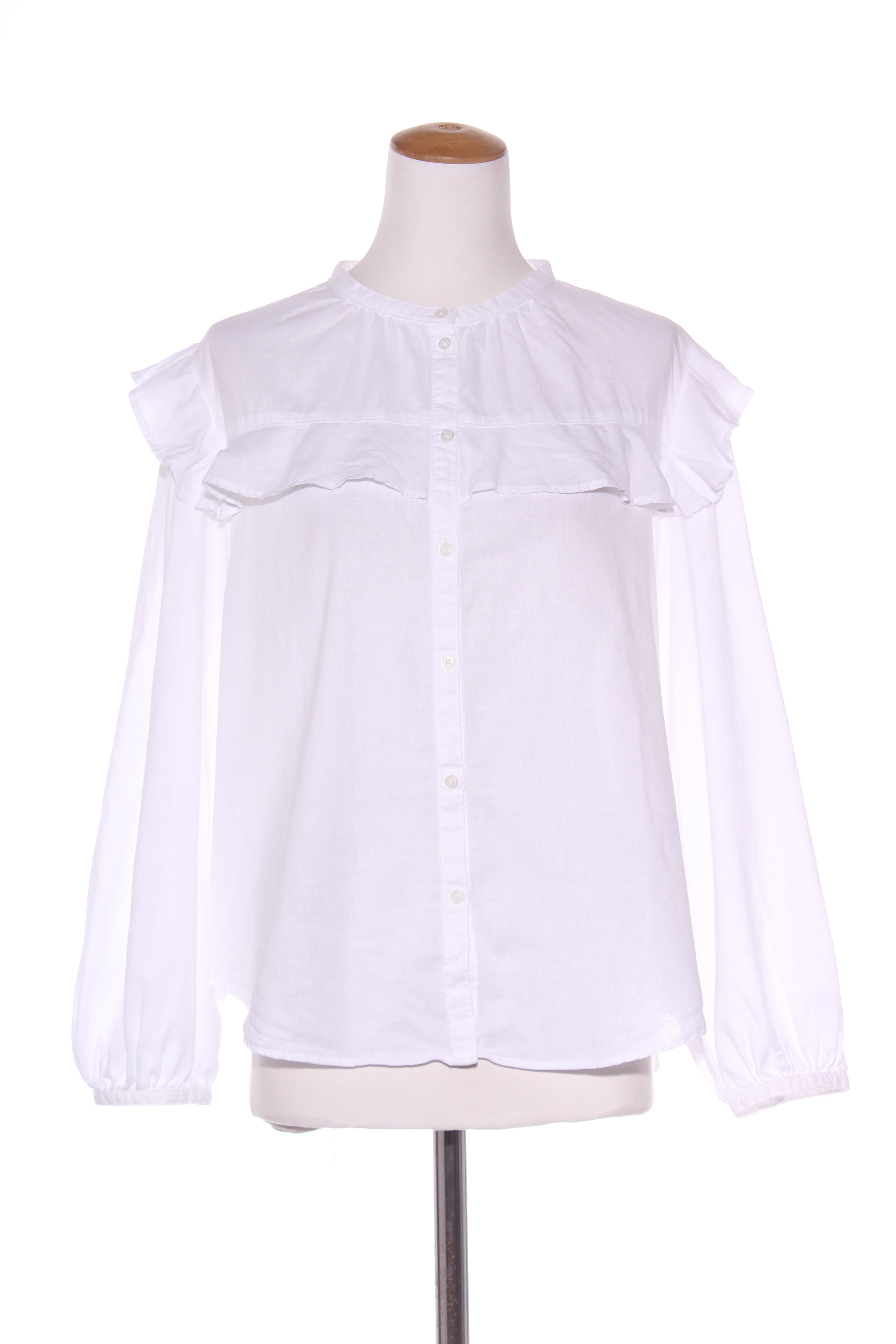 SIZE ON TAG: LFITS LIKE: 14COLOUR: WhiteFABRIC: 55% linen, 45% cottonCONDITION: Excellent prelovedMEASUREMENTS:BUST: 59cms WAIST: 61cms LENGTH: 65cmsNOTES: Button up front and sleeve ends.