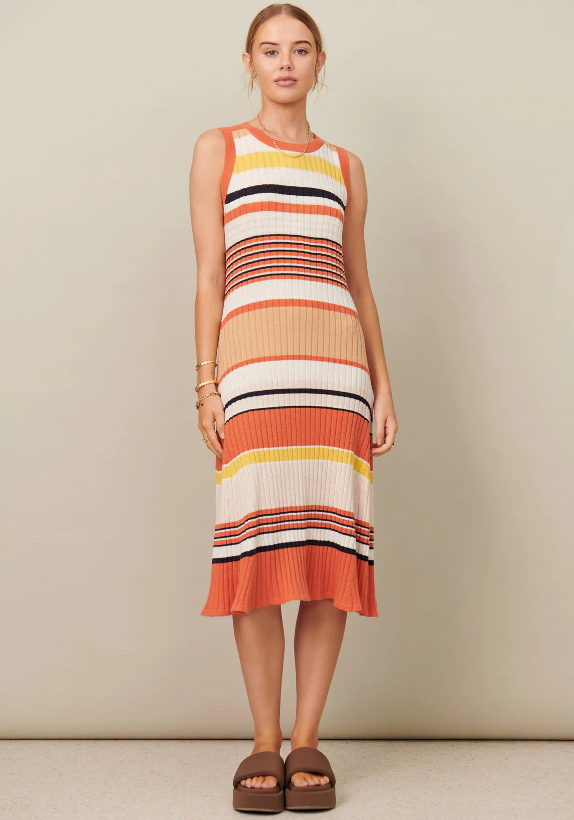 SIZE ON TAG: XSFITS LIKE: 8-10COLOUR: Orange, yellow, multiFABRIC: 36% linen, 44% cotton, 20% polyesterCONDITION: Like newMEASUREMENTS:BUST: 42cms WAIST: 35cms LENGTH: 110cmsNOTES: The POL Clothing Chloe...