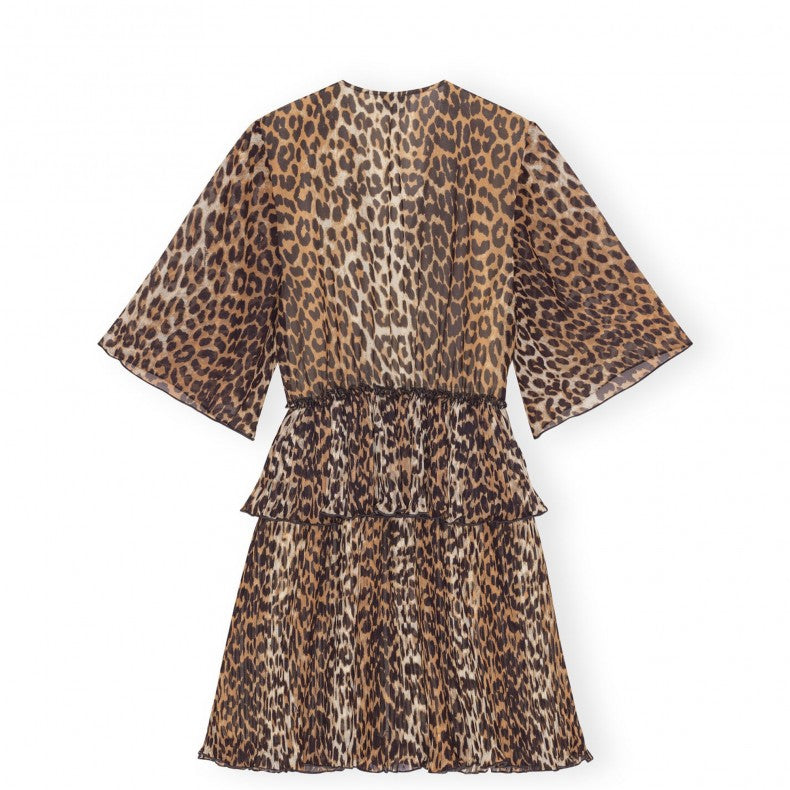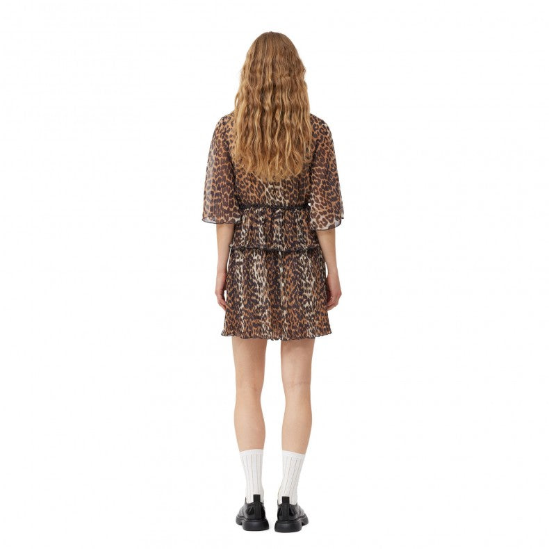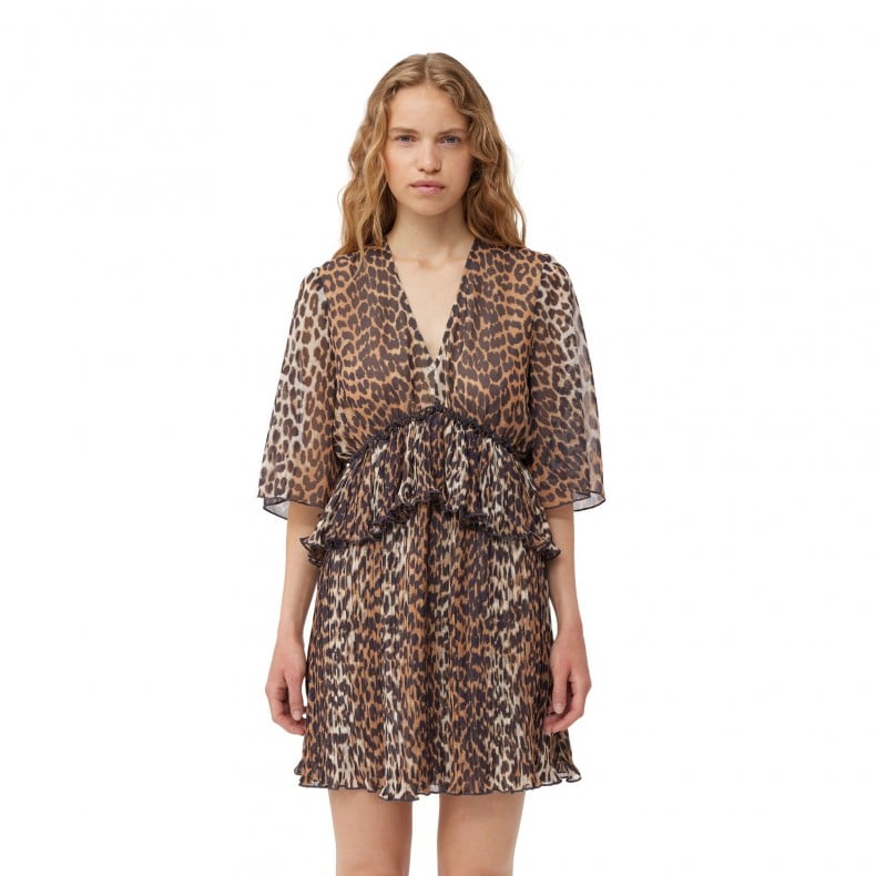 SIZE ON TAG: 34FITS LIKE: 8COLOUR: Brown, rustFABRIC: Polyester, Lining - polyesterCONDITION: Like newMEASUREMENTS:BUST: 46cms WAIST: 33cms LENGTH: 85cmsNOTES: This Leopard Pleated Georgette V-neck Flounce Mini...