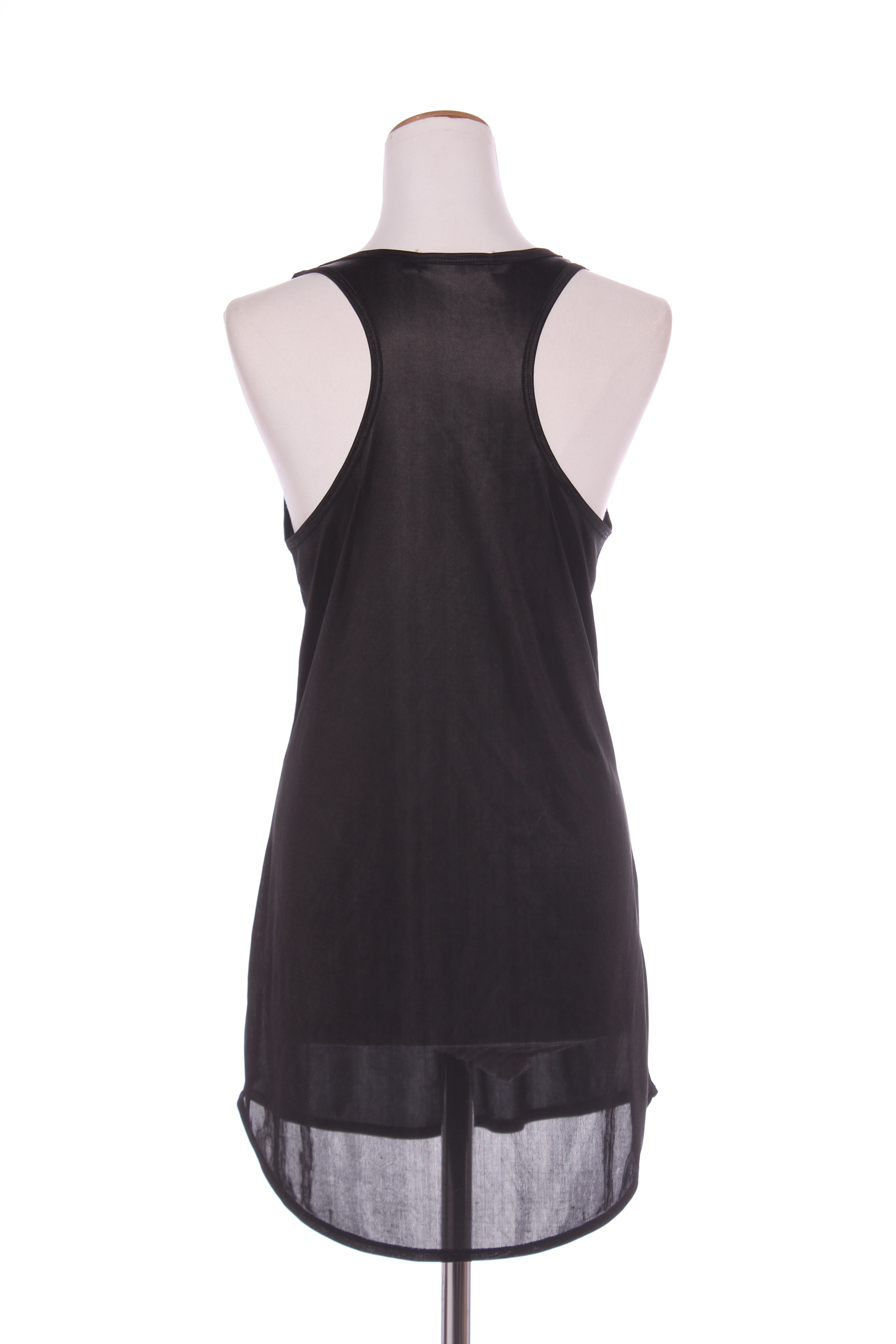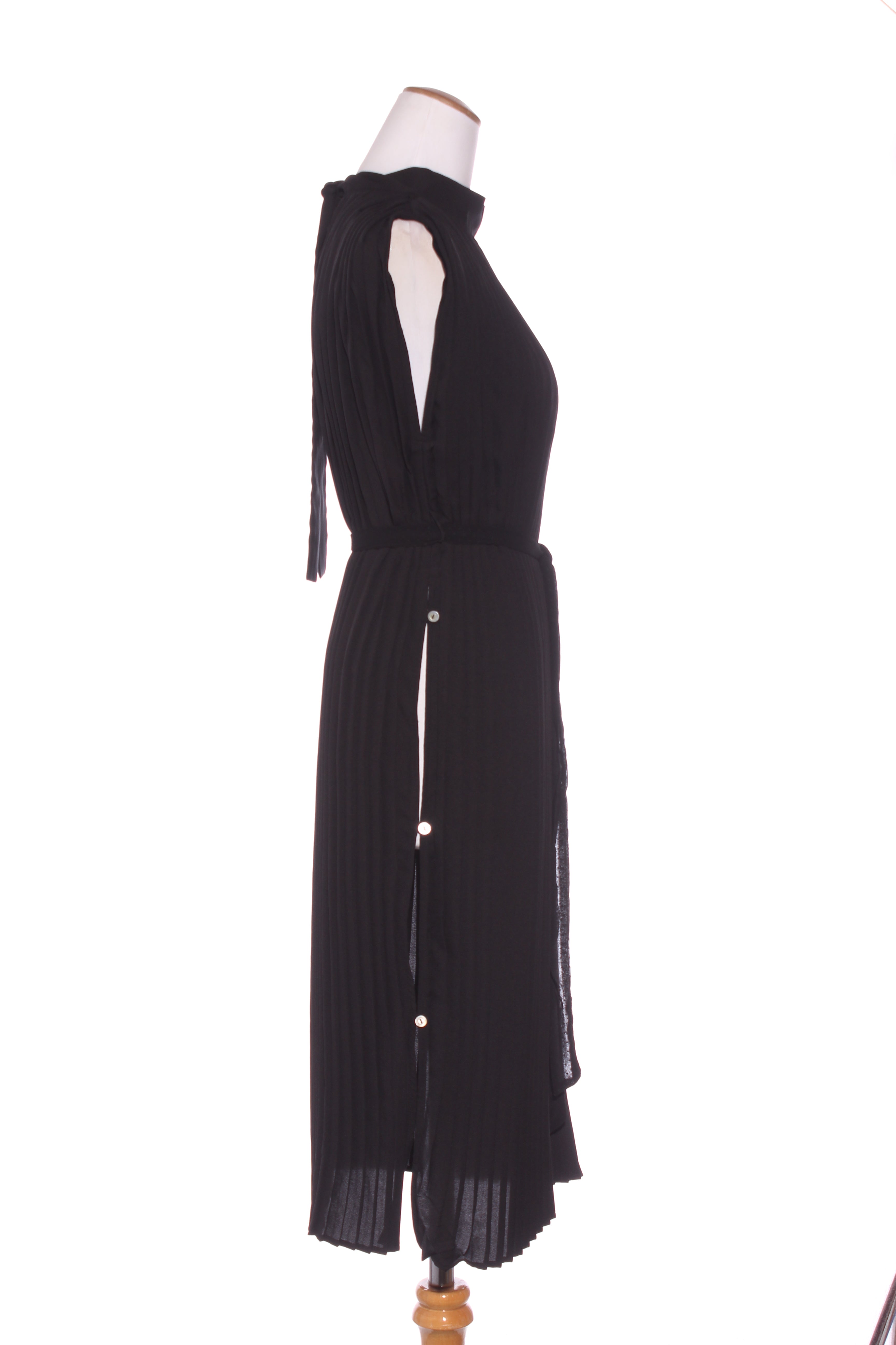 SIZE ON TAG: 6FITS LIKE: N/ACOLOUR: BlackFABRIC: PolyesterCONDITION: Excellent prelovedMEASUREMENTS:BUST: 42cms WAIST: 47cms LENGTH: 48cmsNOTES: Button up nape of neck.