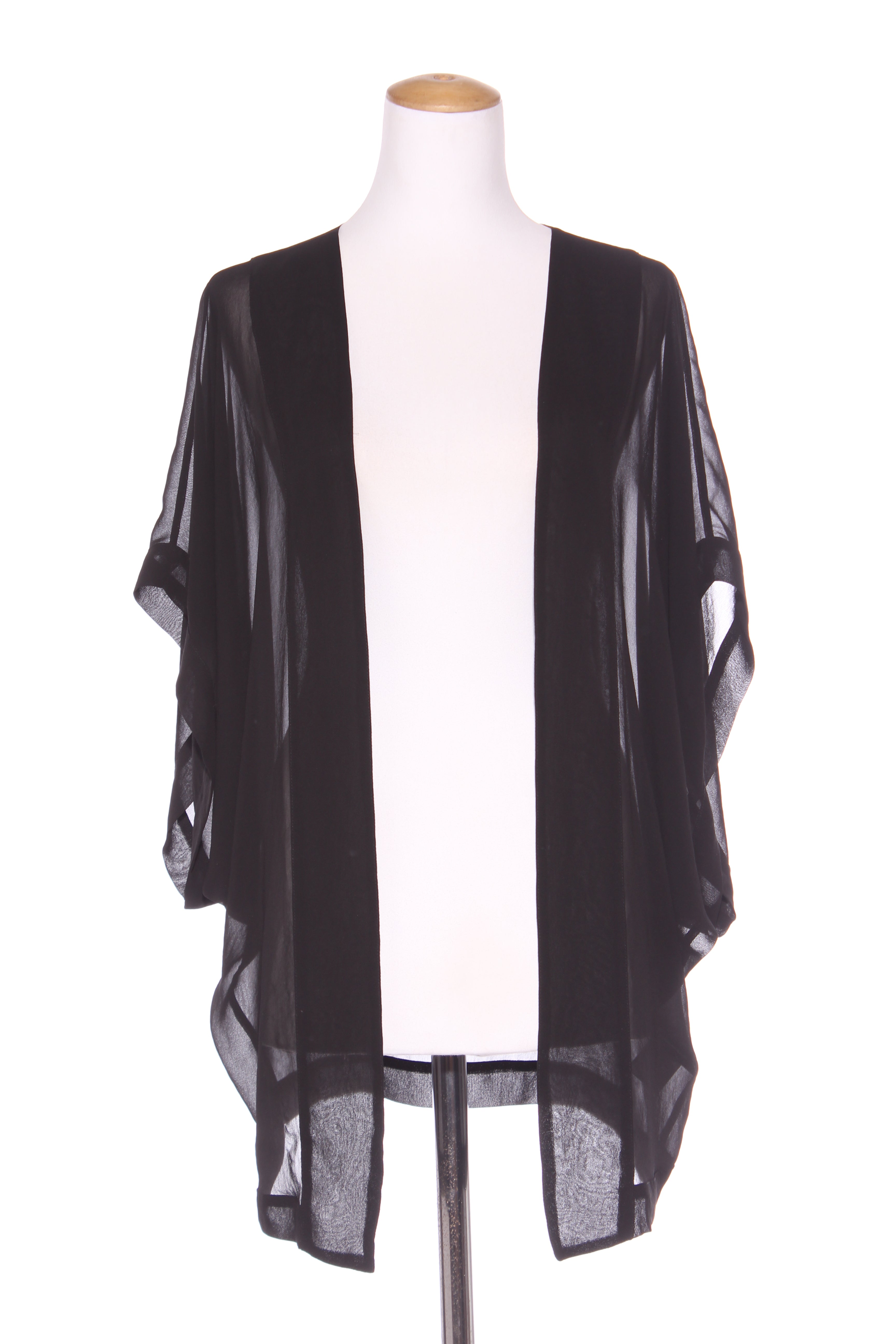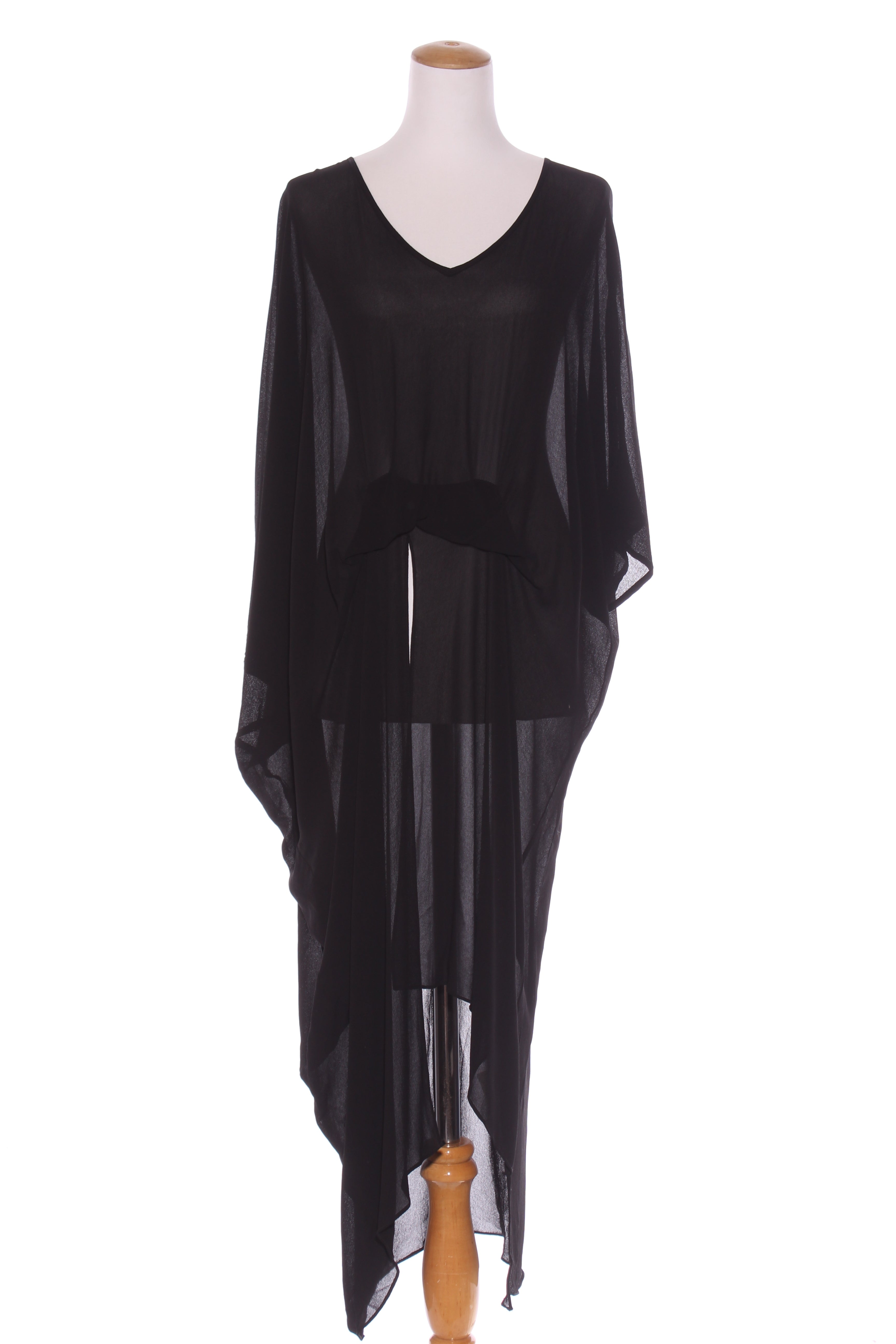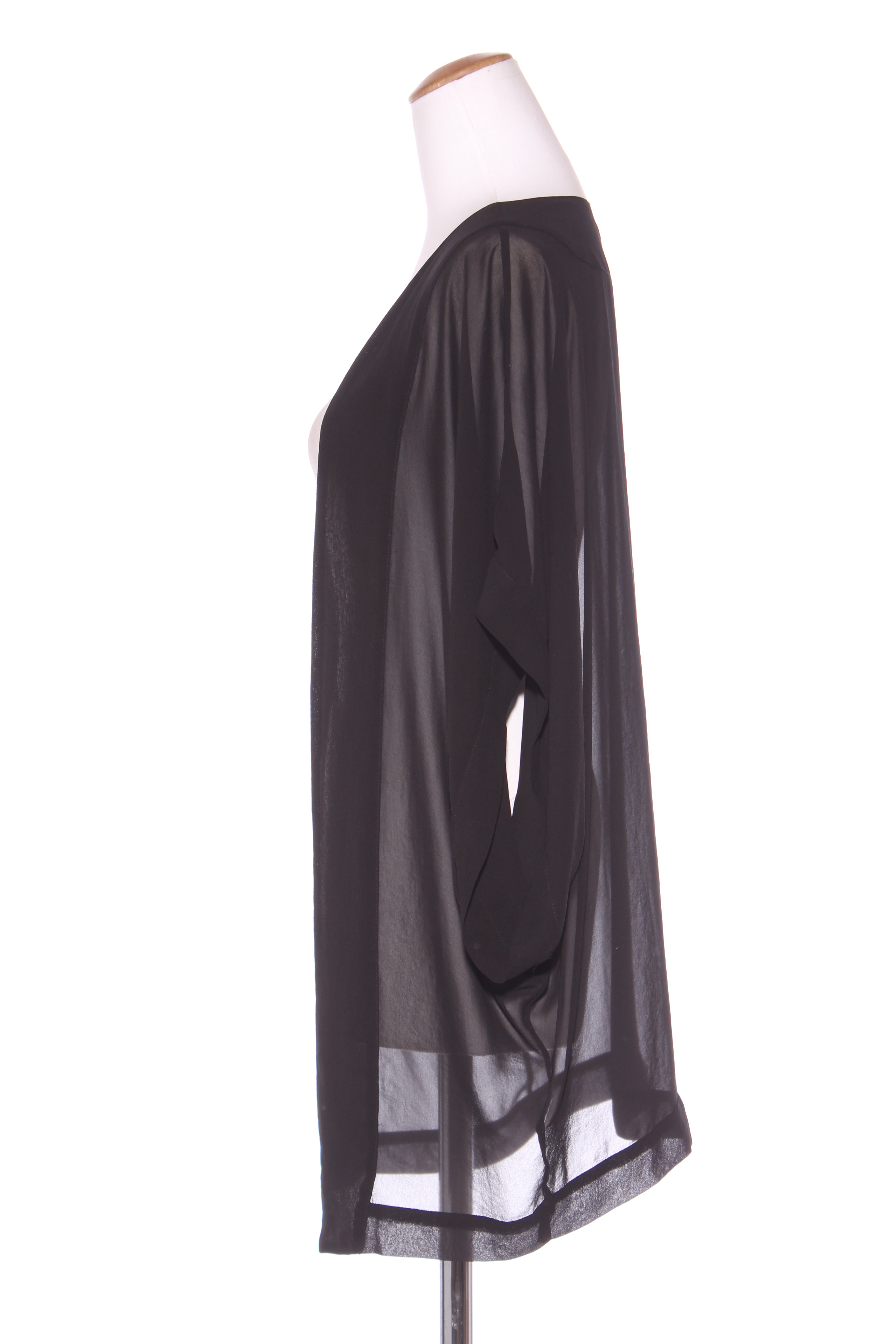 SIZE ON TAG: One sizeFITS LIKE: 10-18COLOUR: BlackFABRIC: PolyesterCONDITION: Excellent prelovedMEASUREMENTS:BUST: Free WAIST: Free LENGTH: 82cmsNOTES: Made in NZ. Open front no fastening.