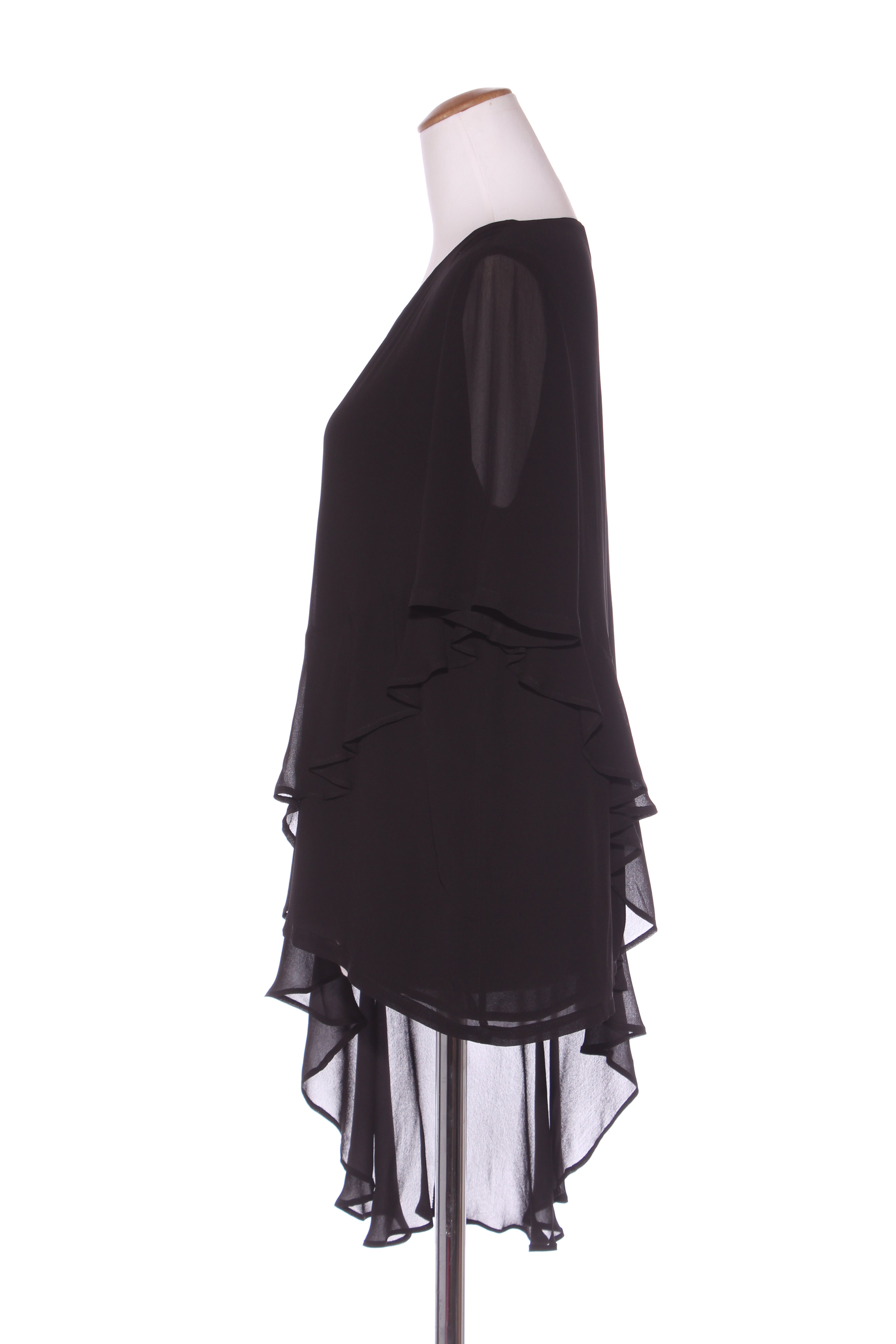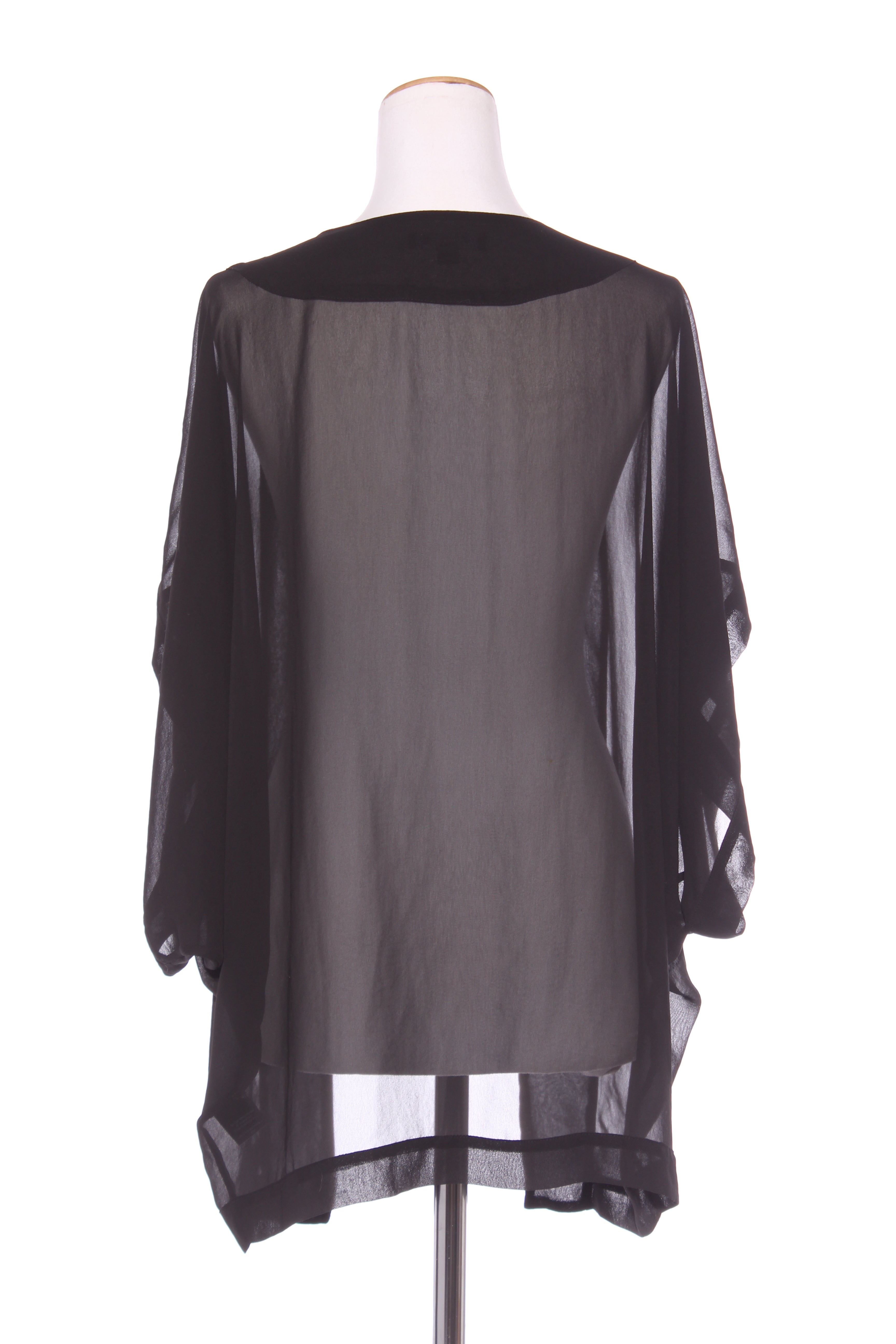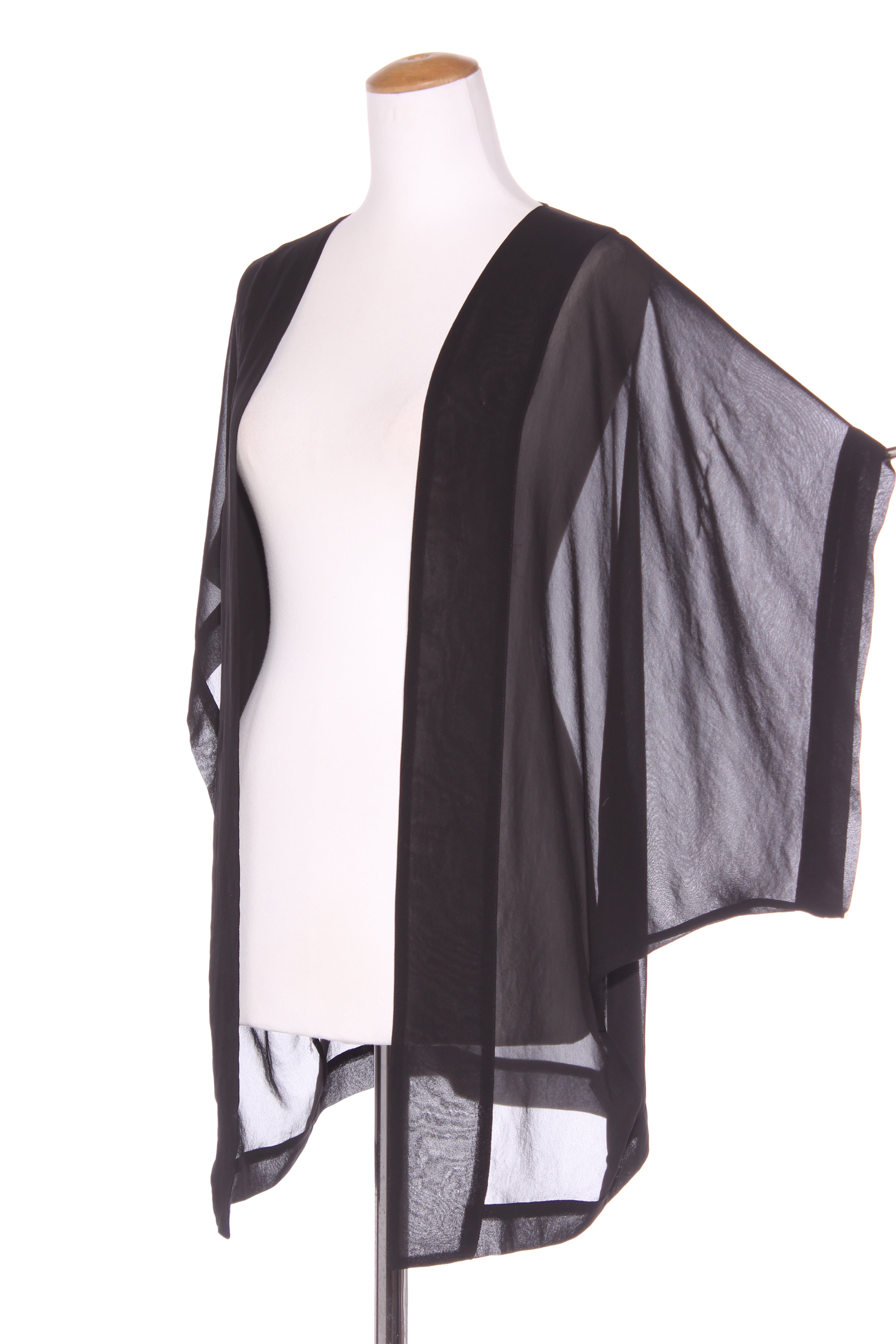 SIZE ON TAG: One sizeFITS LIKE: 10-18COLOUR: BlackFABRIC: PolyesterCONDITION: Excellent prelovedMEASUREMENTS:BUST: Free WAIST: Free LENGTH: 82cmsNOTES: Made in NZ. Open front no fastening.