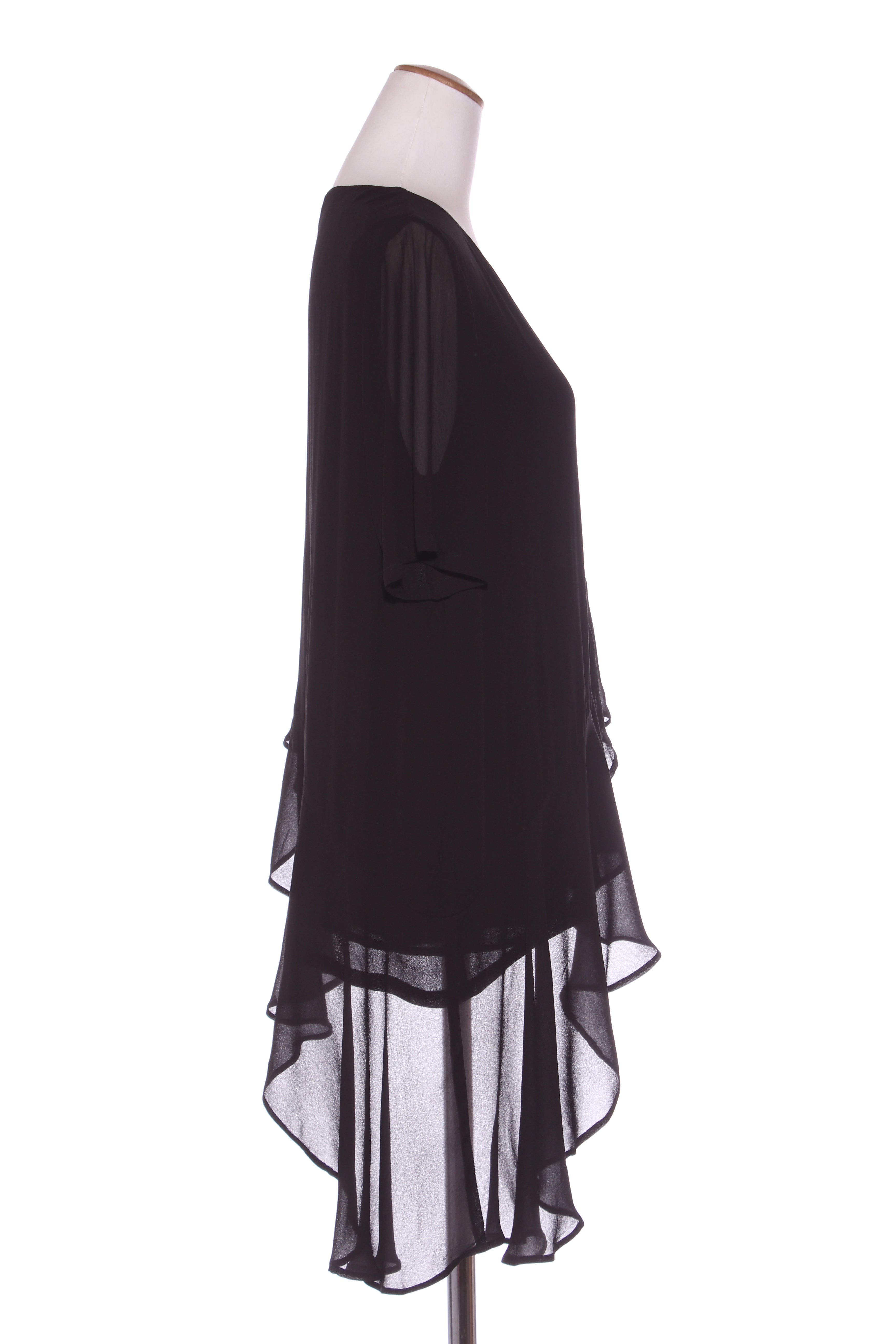 SIZE ON TAG: XLFITS LIKE: 16COLOUR: BlackFABRIC: ViscoseCONDITION: Brand new with tagsMEASUREMENTS:BUST: Free WAIST: 89cms LENGTH: 100-139cmsNOTES: Pull over style. Centred front split up from hem...