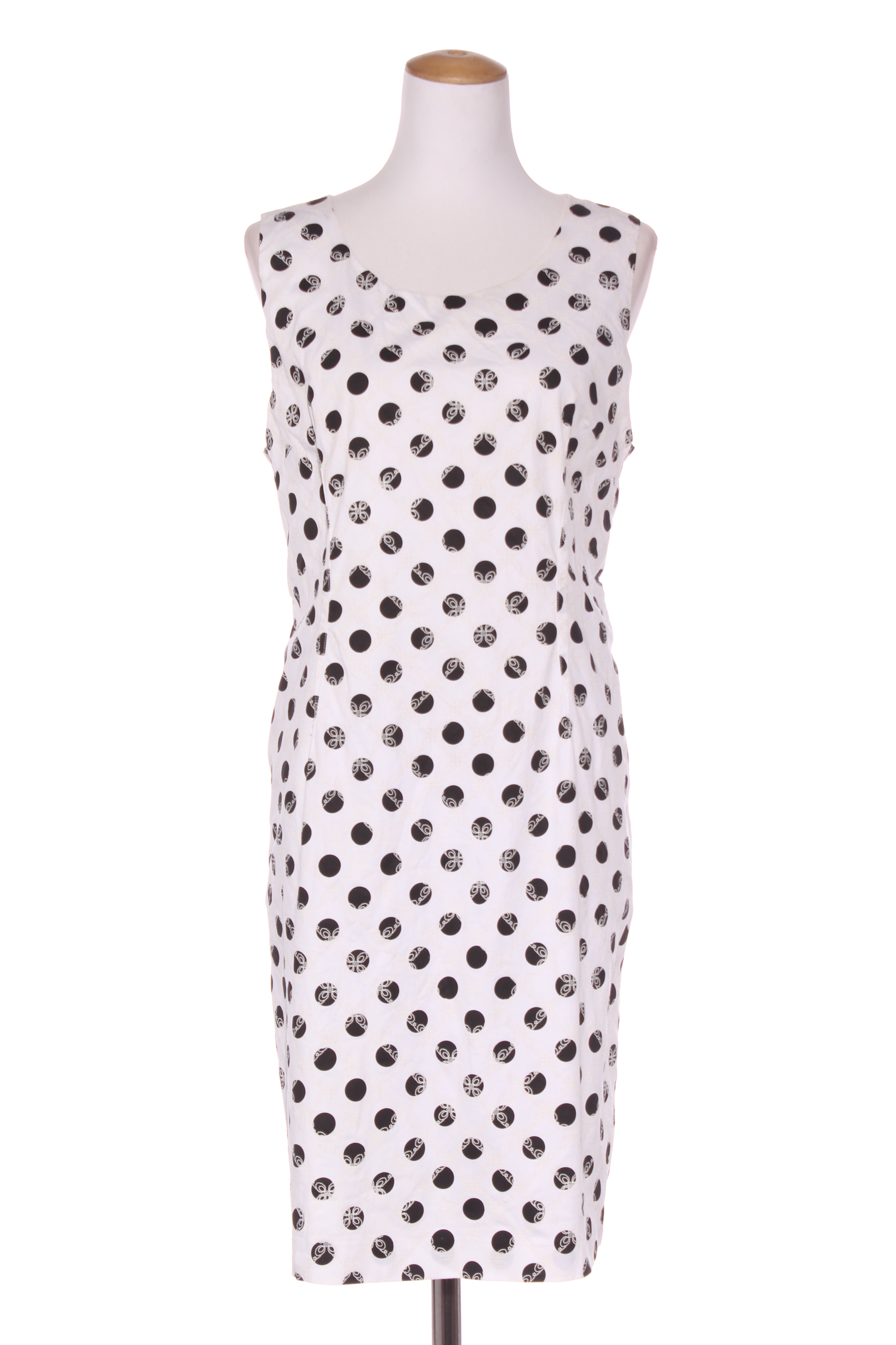 SIZE ON TAG: 16FITS LIKE: N/ACOLOUR: White, blackFABRIC: 95% polyester, 5% spandex, Lining - 70% nylon, 30% cottonCONDITION: Excellent prelovedMEASUREMENTS:BUST: 55cms WAIST: 49cms LENGTH: 100cmsNOTES: Back...