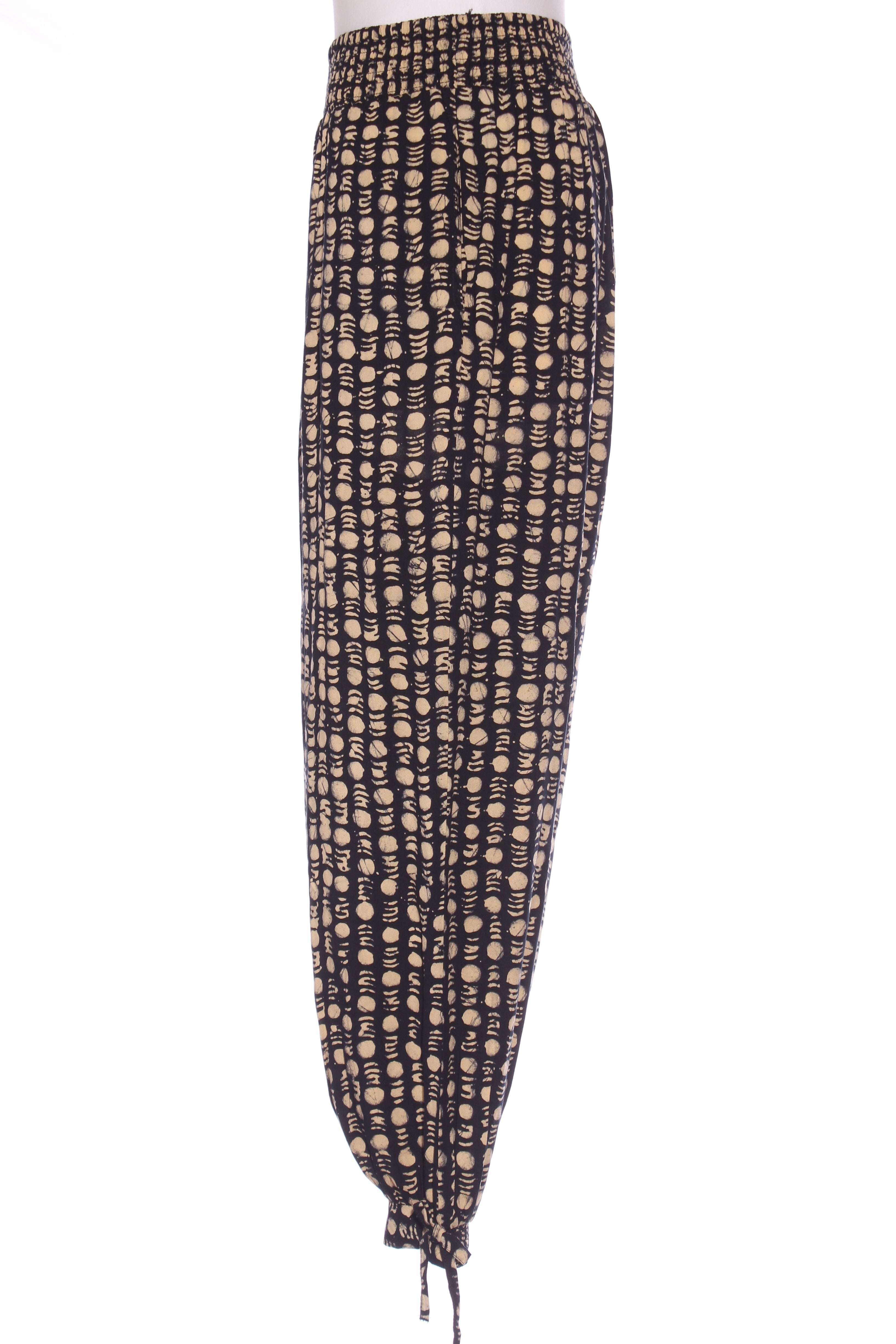 SIZE ON TAG: SFITS LIKE: 10COLOUR: Black, beigeFABRIC: ViscoseCONDITION: Excellent prelovedMEASUREMENTS:WAIST: 33cms HIPS: 62cms RISE: 35cms LENGTH: 62cms (From crotch to end of pant)...
