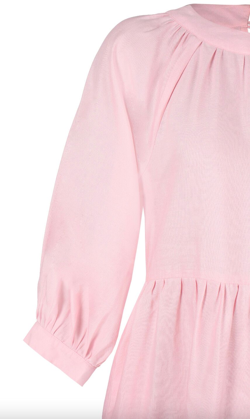 SIZE ON TAG: XLFITS LIKE: 16COLOUR: Blush pinkFABRIC: LinenCONDITION: Excellent prelovedMEASUREMENTS:BUST: 59cms WAIST: 69cms LENGTH: 71cmsNOTES: Button up nape of neck.