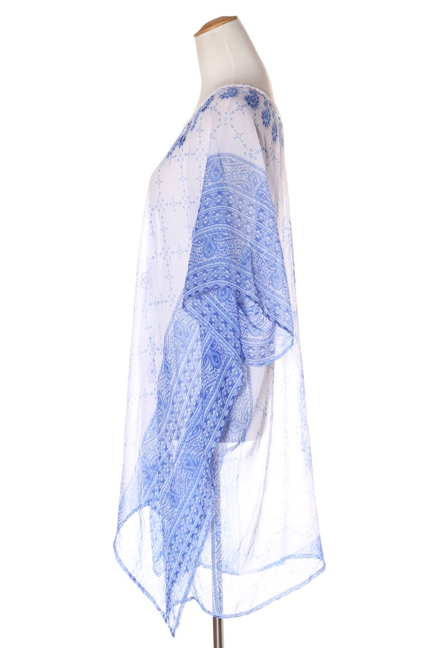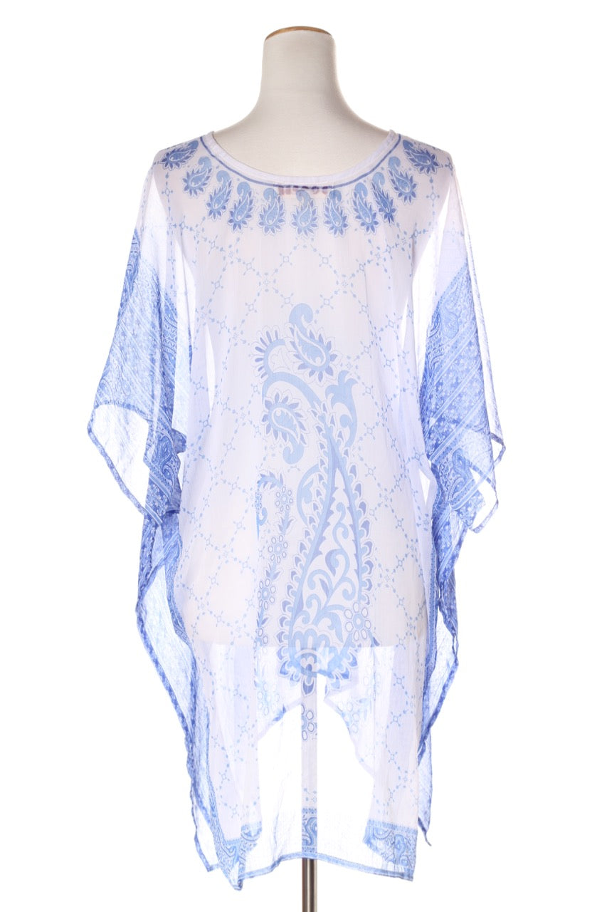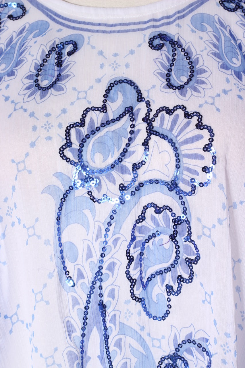 SIZE ON TAG: LFITS LIKE: 14COLOUR: Blue, whiteFABRIC: PolyesterCONDITION: Excellent prelovedMEASUREMENTS:BUST: 85cms WAIST: 85cms LENGTH: 91-104cmsNOTES: "Raffles - Beach babe". Slip required.
