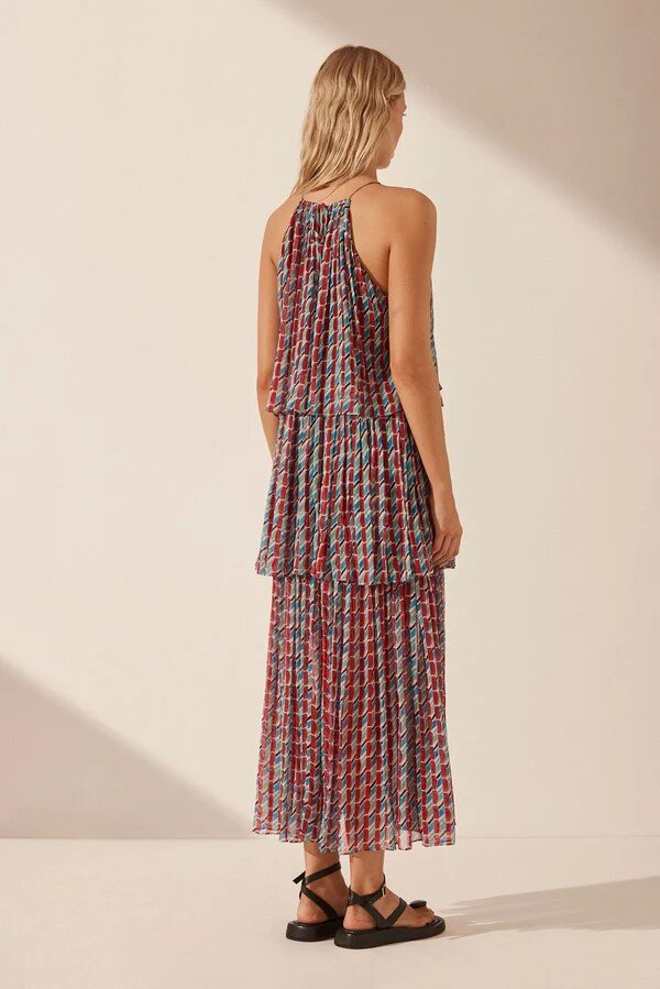NOTES: Tiered midi dress in a light weight semi-sheer chiffon in the exclusive Maribel print.