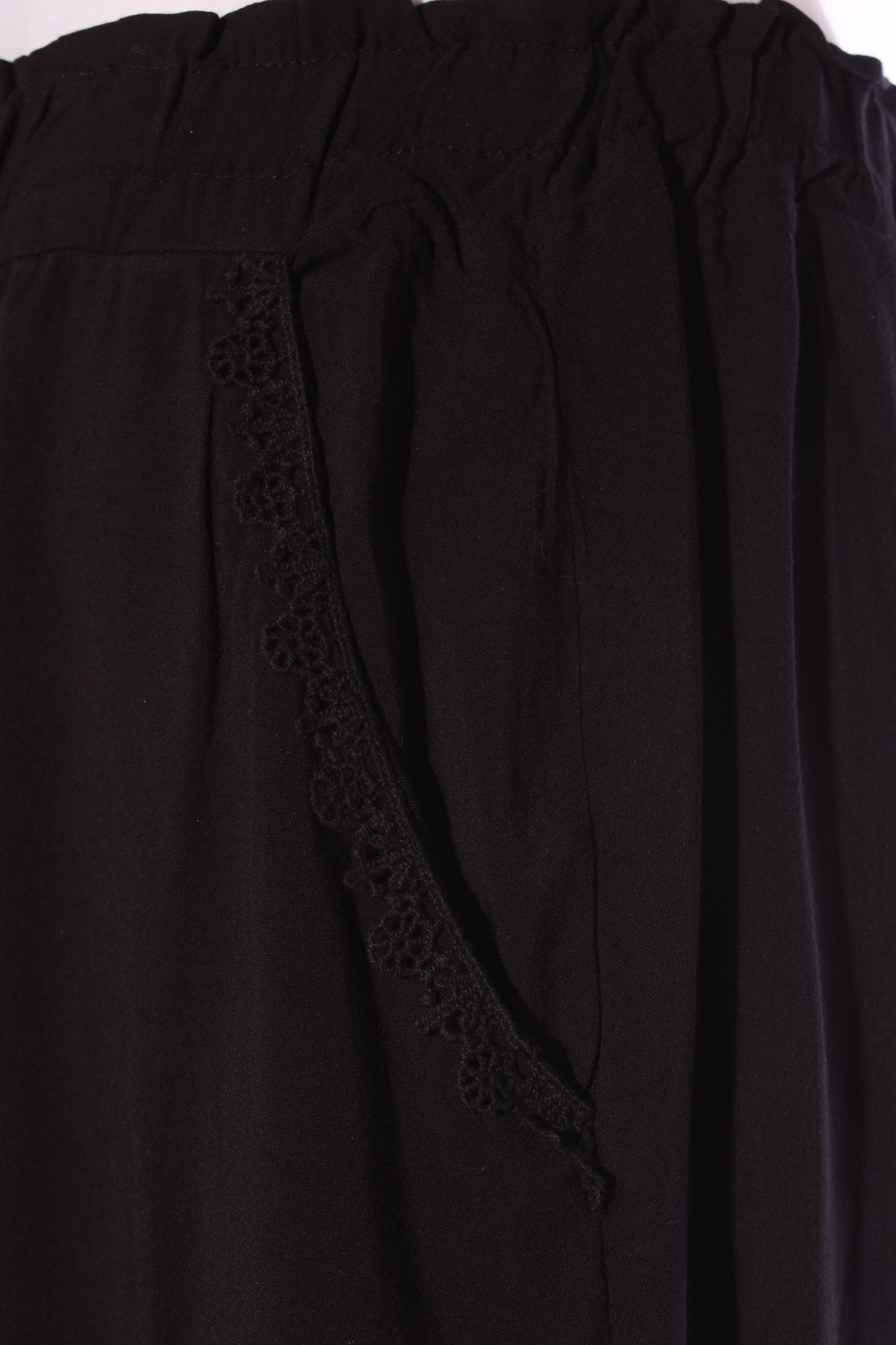 SIZE ON TAG: 12FITS LIKE: N/ACOLOUR: BlackFABRIC: Viscose, Trim - cottonCONDITION: Excellent prelovedMEASUREMENTS:WAIST: 37cms HIPS: 50cms RISE: 29cms LENGTH: 71cms (From crotch to end...
