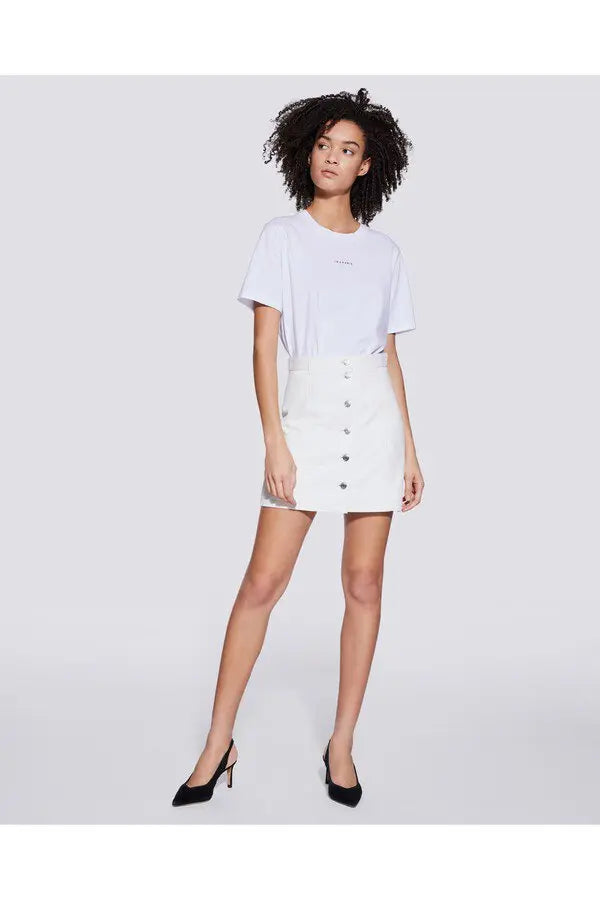 SIZE ON TAG: 14FITS LIKE: N/ACOLOUR: White, goldFABRIC: 55% linen, 45% rayon, Lining - cottonCONDITION: Excellent prelovedMEASUREMENTS:WAIST: 41cms HIPS: 61cms LENGTH: 45cmsNOTES: High-rise mini skirt -...