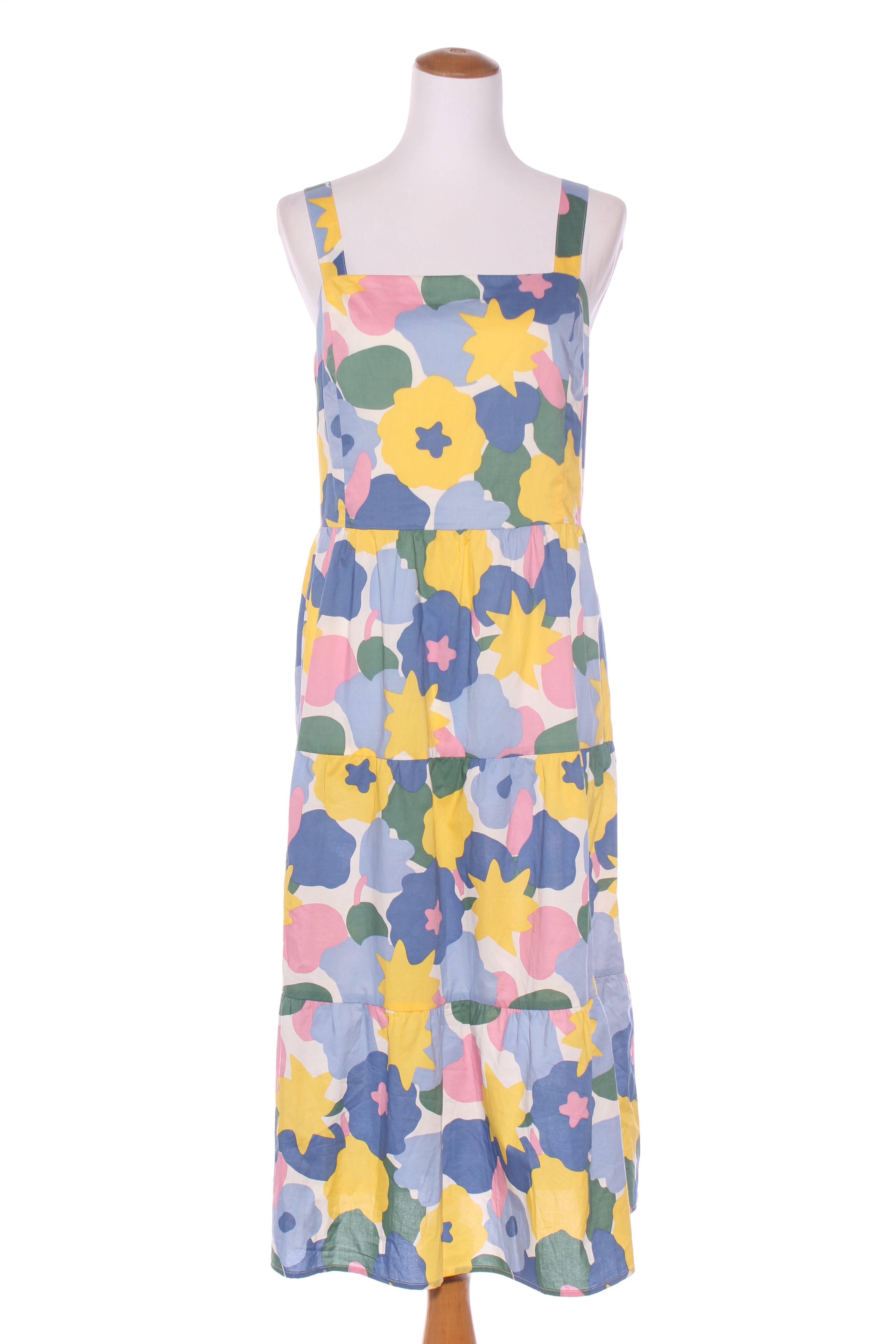 SALE ITEM - [NOT ELIGIBLE FOR RETURN] - Was $65SIZE ON TAG: SXFITS LIKE: 20COLOUR: Cream, blue, goldFABRIC: ViscoseCONDITION: Excellent prelovedMEASUREMENTS:BUST: 70cms WAIST: 80cms LENGTH: 72-80cmsNOTES:...