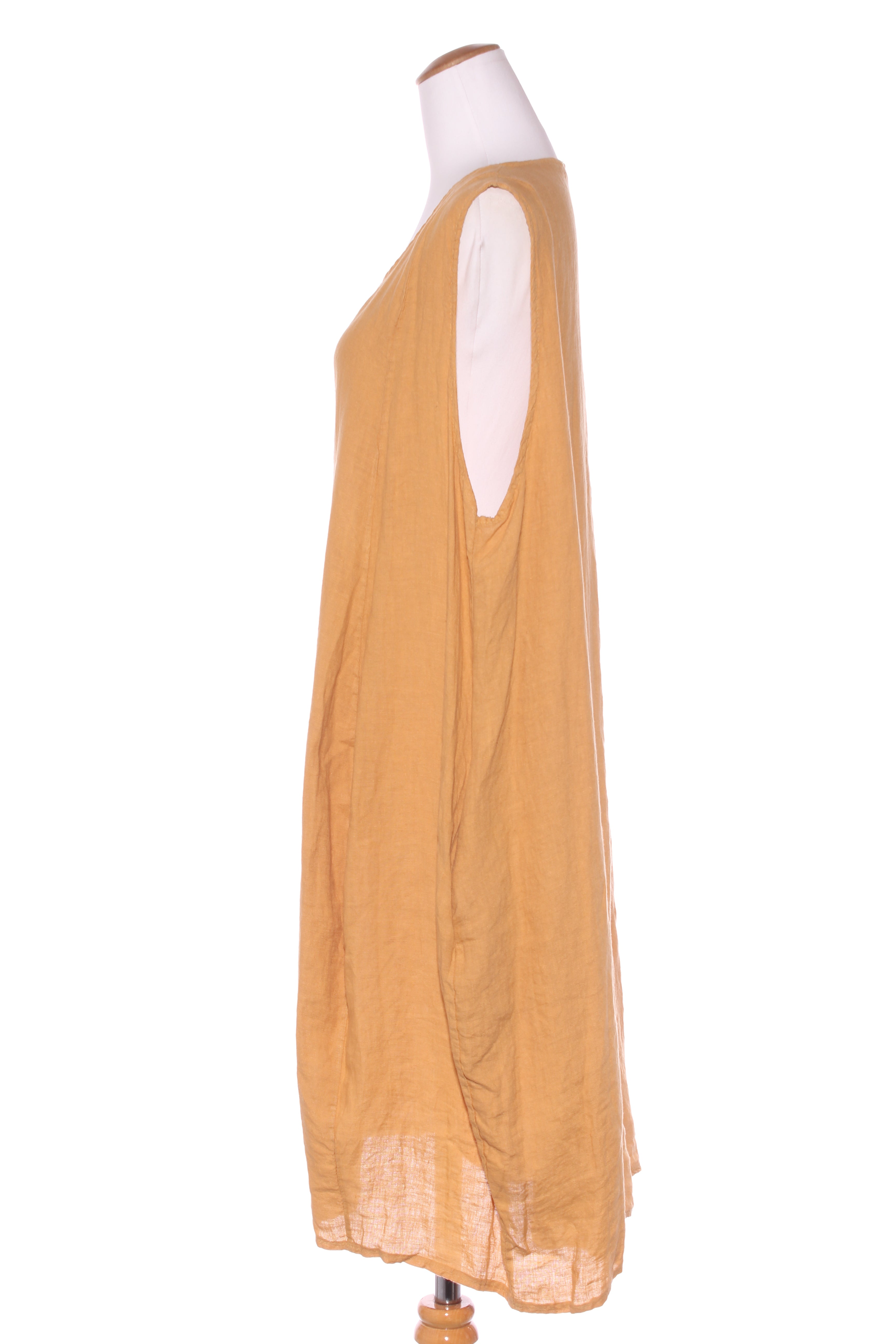 SIZE ON TAG: XXXLFITS LIKE: 18-20COLOUR: MustardFABRIC: LinenCONDITION: Brand new with tagsMEASUREMENTS:BUST: 67cms WAIST: 76cms LENGTH: 107cmsNOTES: Made in Italy. Pull over style. Side pocket.