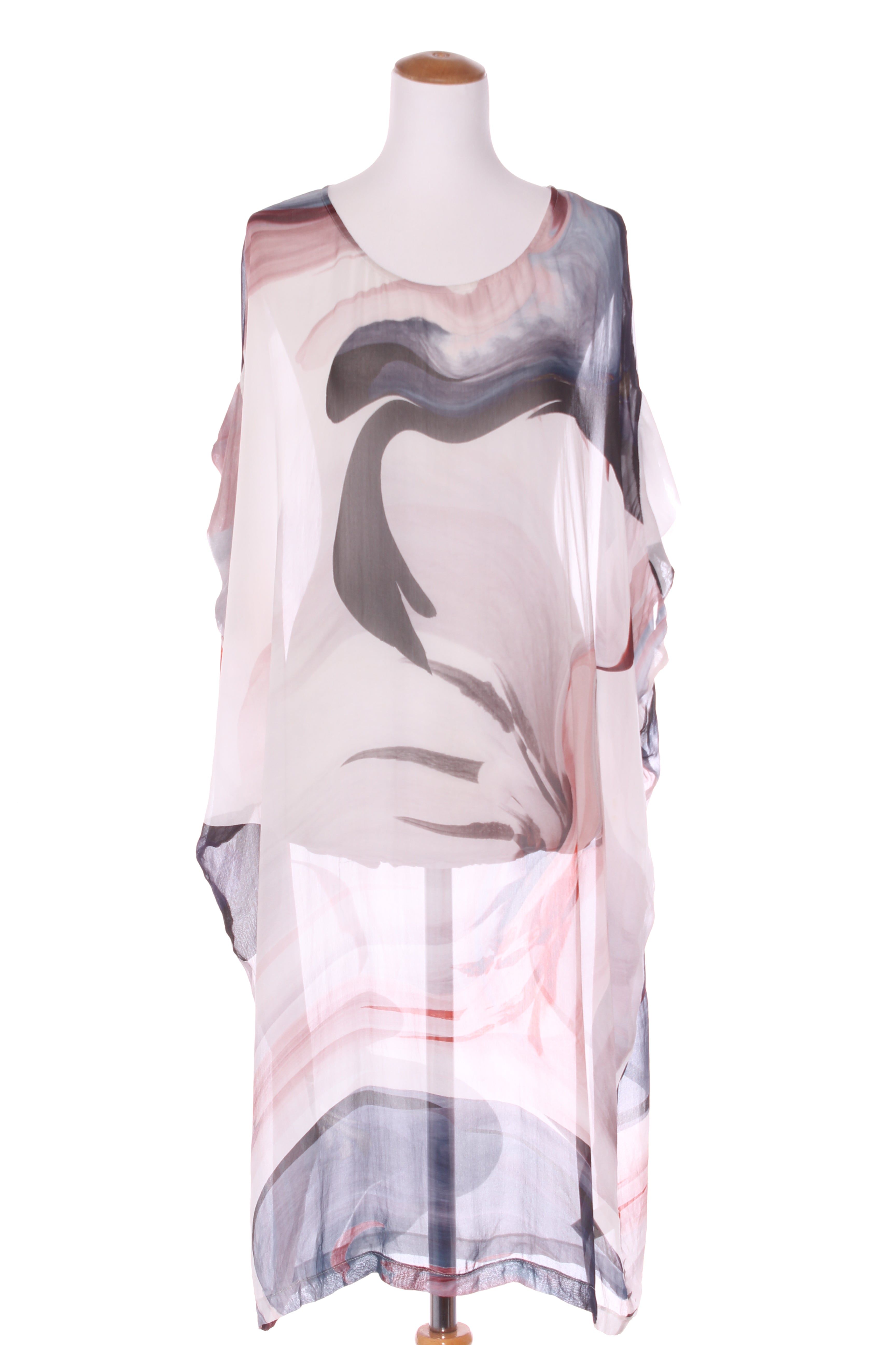 SIZE ON TAG: 14FITS LIKE: N/ACOLOUR: MultiFABRIC: ViscoseCONDITION: Excellent prelovedMEASUREMENTS:BUST: Free WAIST: 85cms LENGTH: 109-118cms HEMLINE: 62cmsNOTES: Made in NZ. Slip required.
