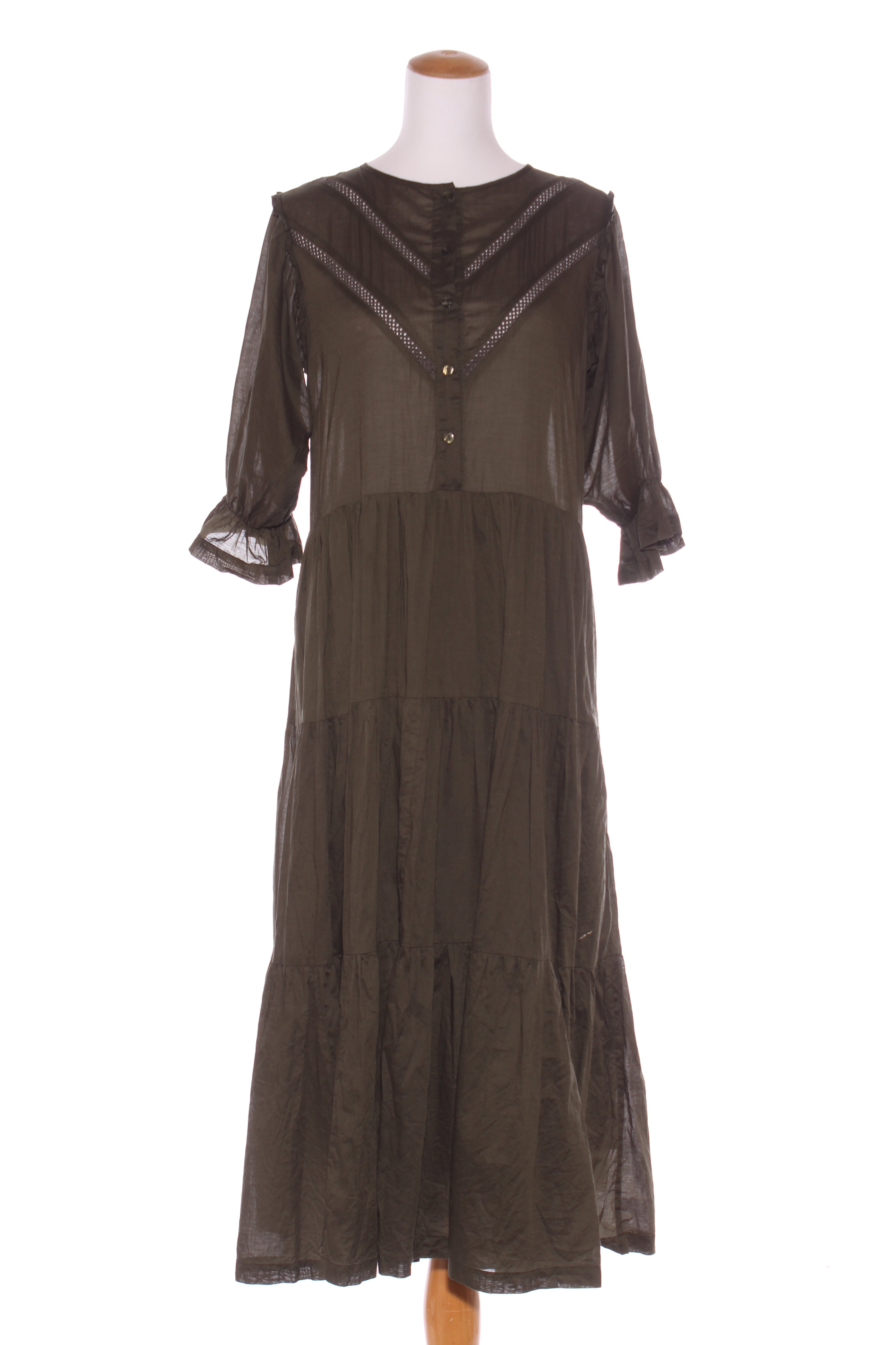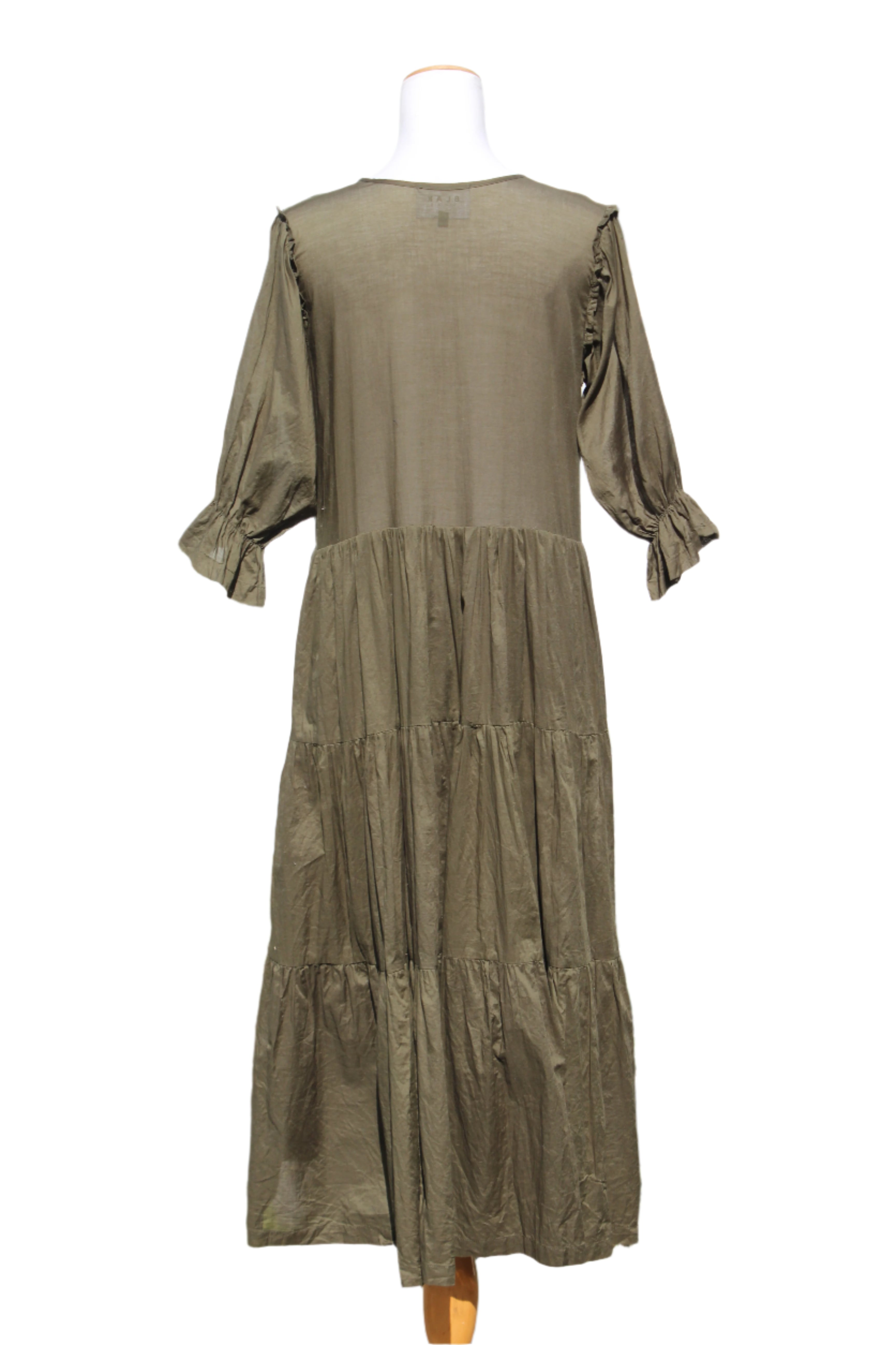 SALE ITEM - [NOT ELIGIBLE FOR RETURN] - Was $37SIZE ON TAG: 14FITS LIKE: N/ACOLOUR: Khaki FABRIC: CottonCONDITION: Excellent prelovedMEASUREMENTS:BUST: 55cms WAIST: 55cms LENGTH: 92cms NOTES: Button up...