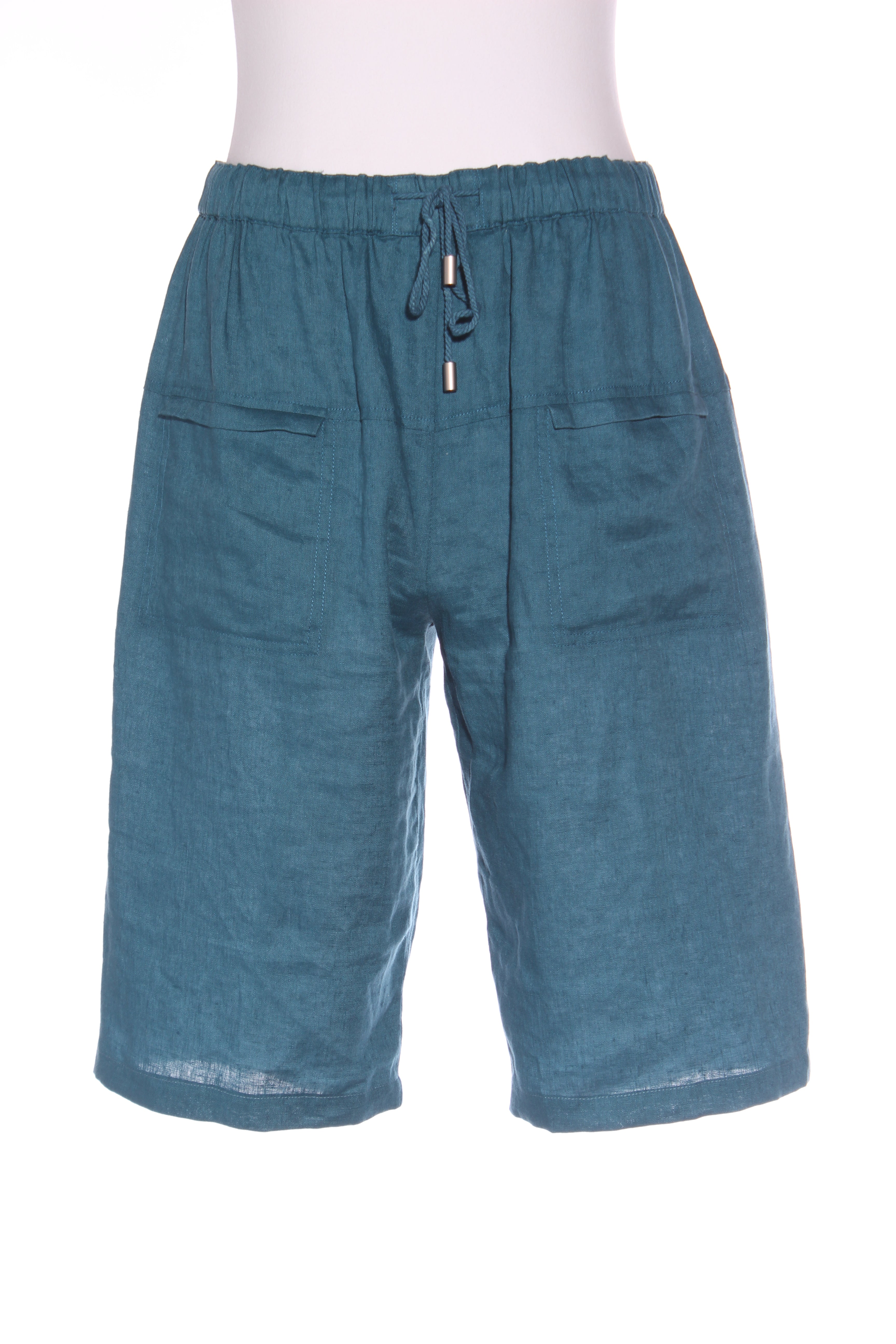 SIZE ON TAG: 10FITS LIKE: N/ACOLOUR: TealFABRIC: Tag removed, linenCONDITION: Like new - care label removedMEASUREMENTS:WAIST: 36cms HIPS: 62cms RISE: 30cms LENGTH: 30cms (From...