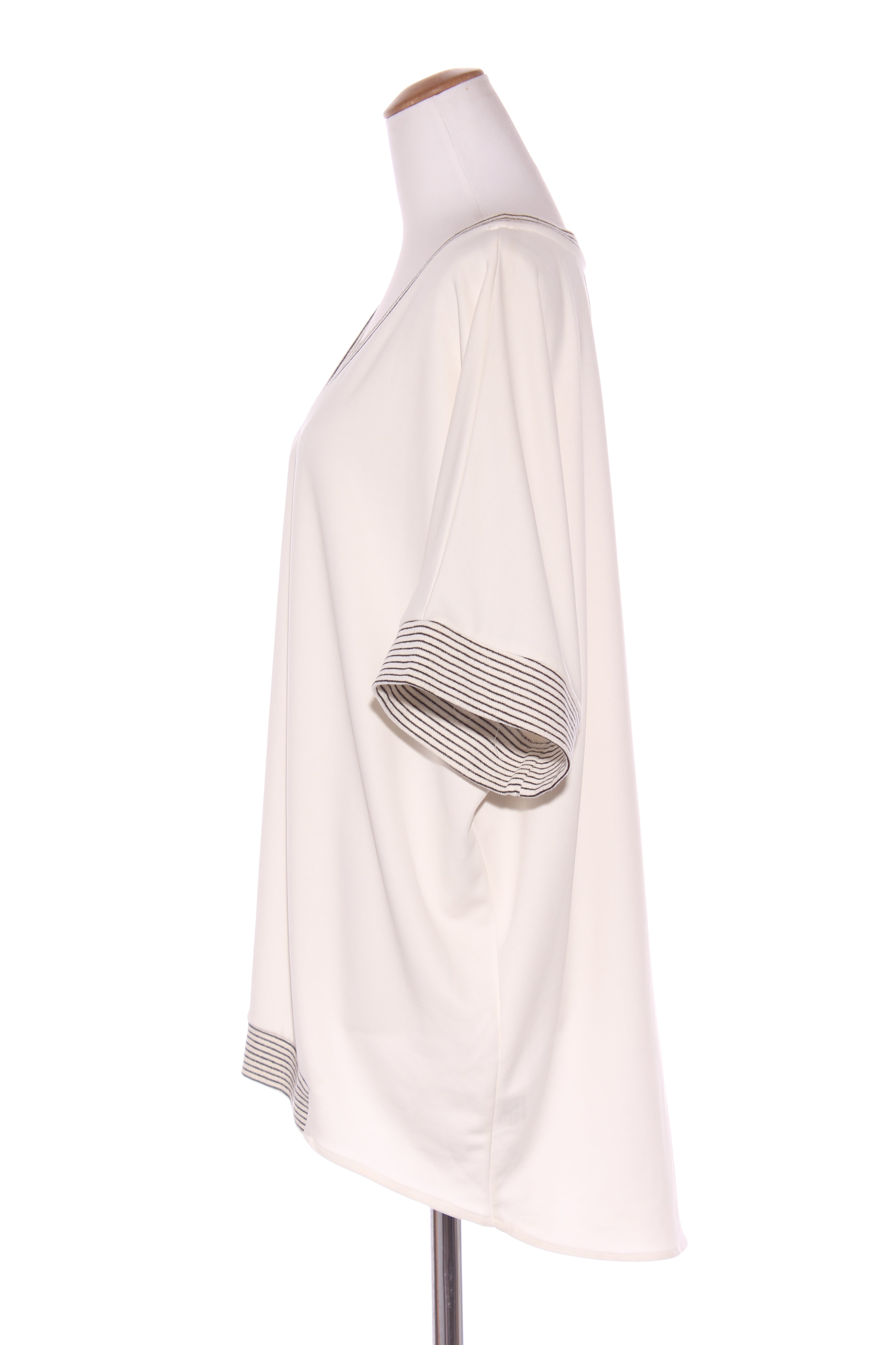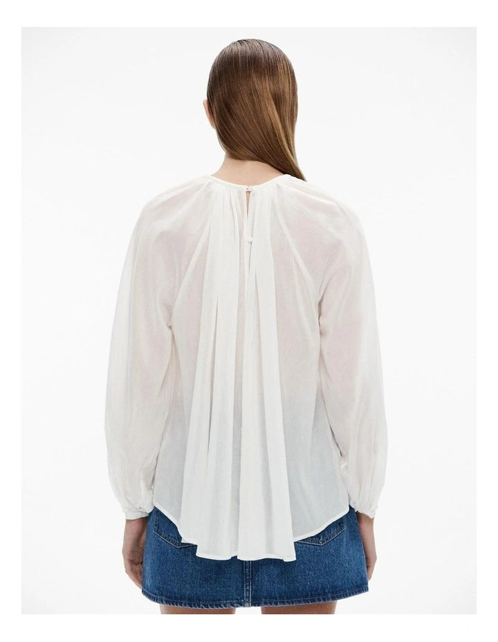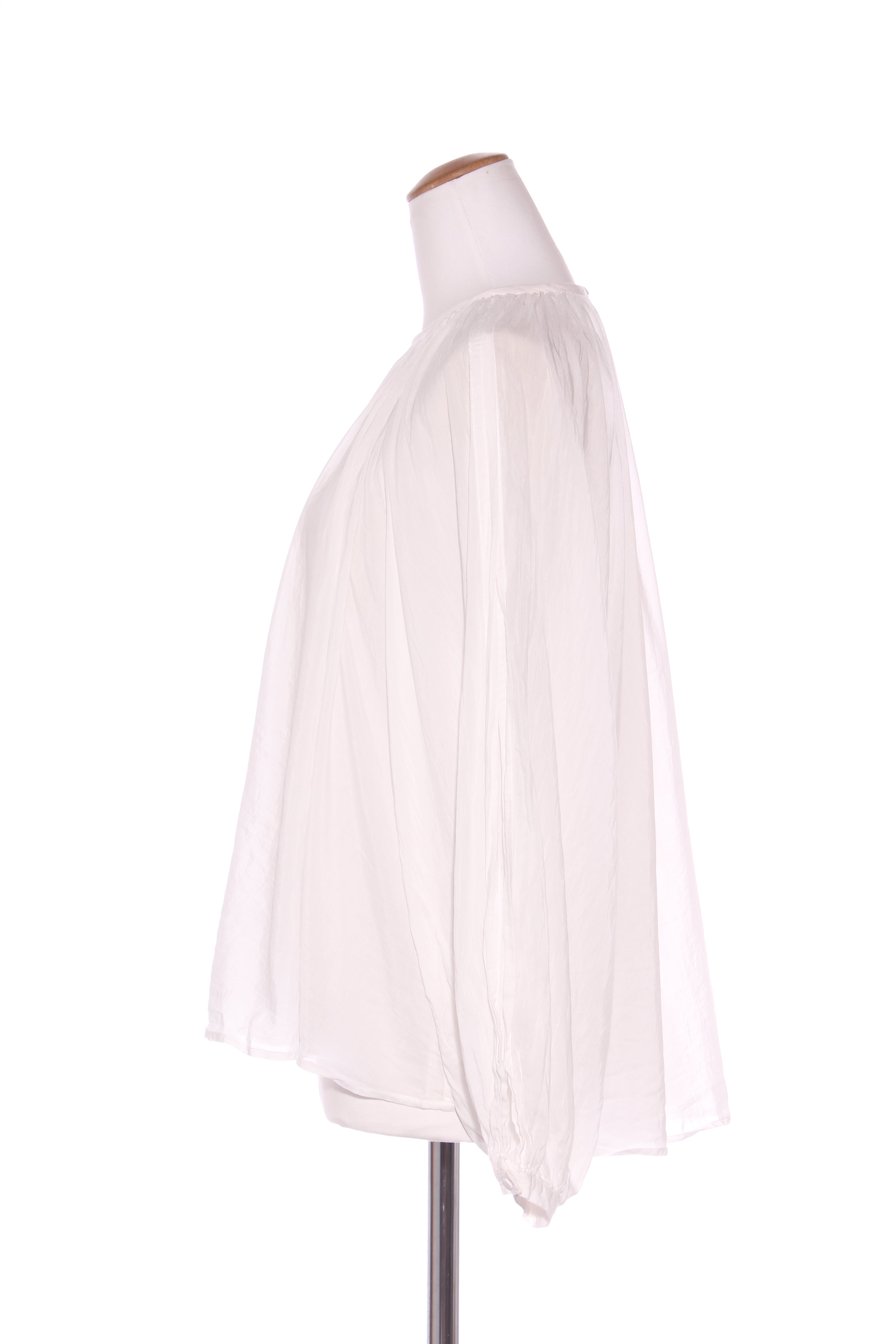 SIZE ON TAG: 14FITS LIKE: N/ACOLOUR: WhiteFABRIC: 73% cotton, 27% silkCONDITION: Excellent prelovedMEASUREMENTS:BUST: 80cms WAIST: 85cms LENGTH: 65cmsNOTES: In a relaxed fit Crew neckline Gathered through...