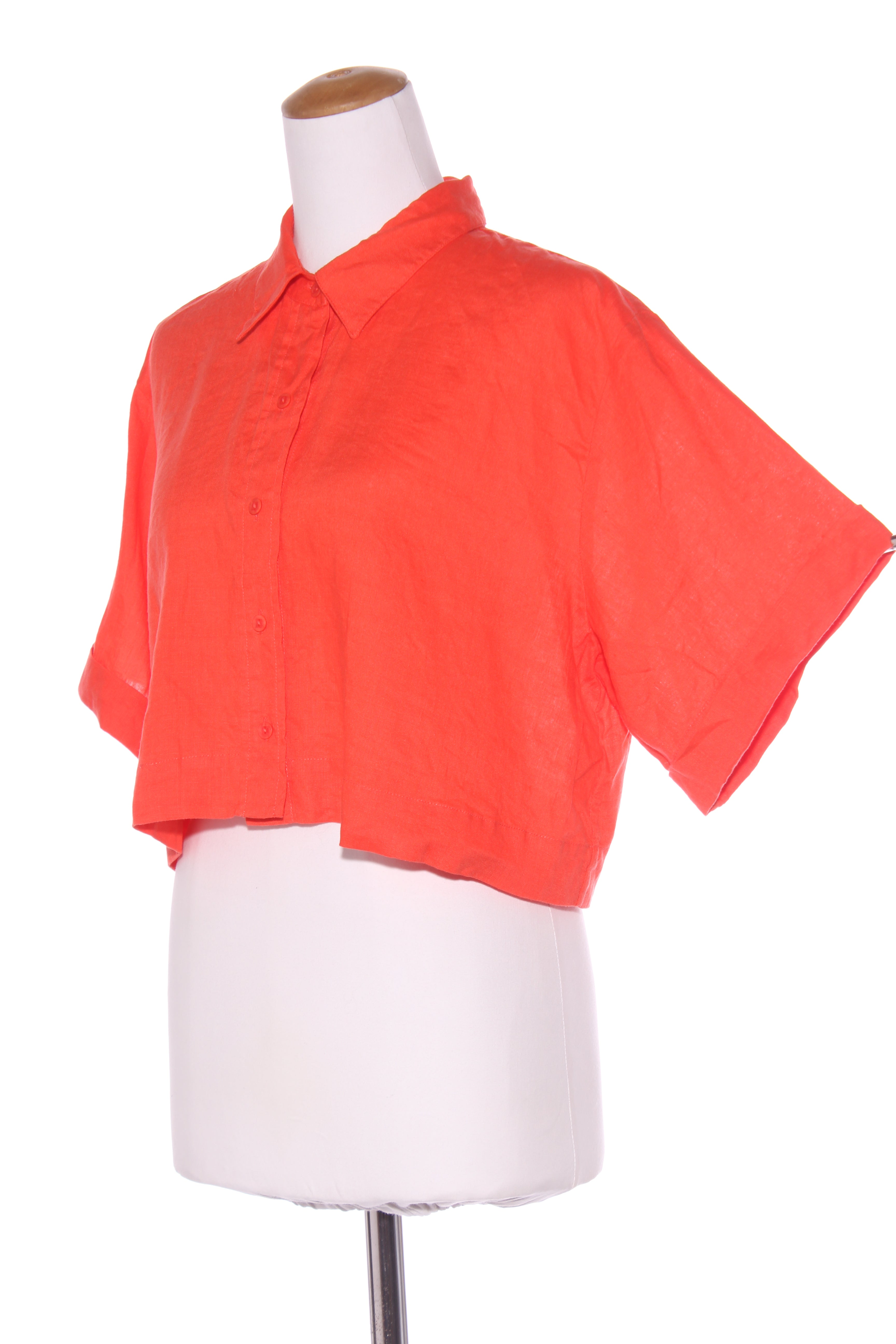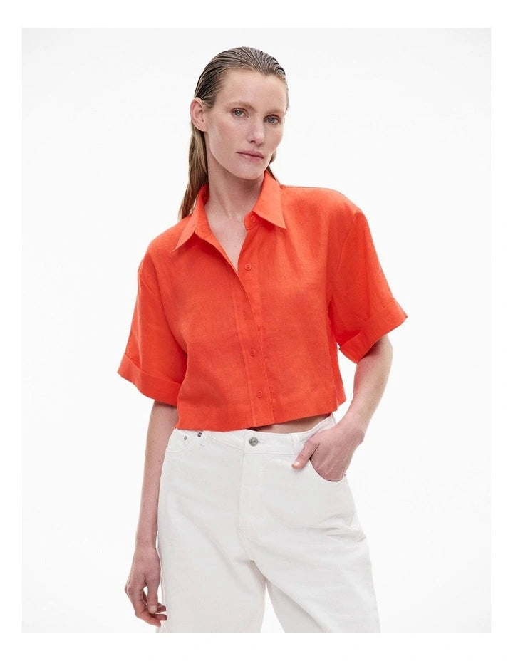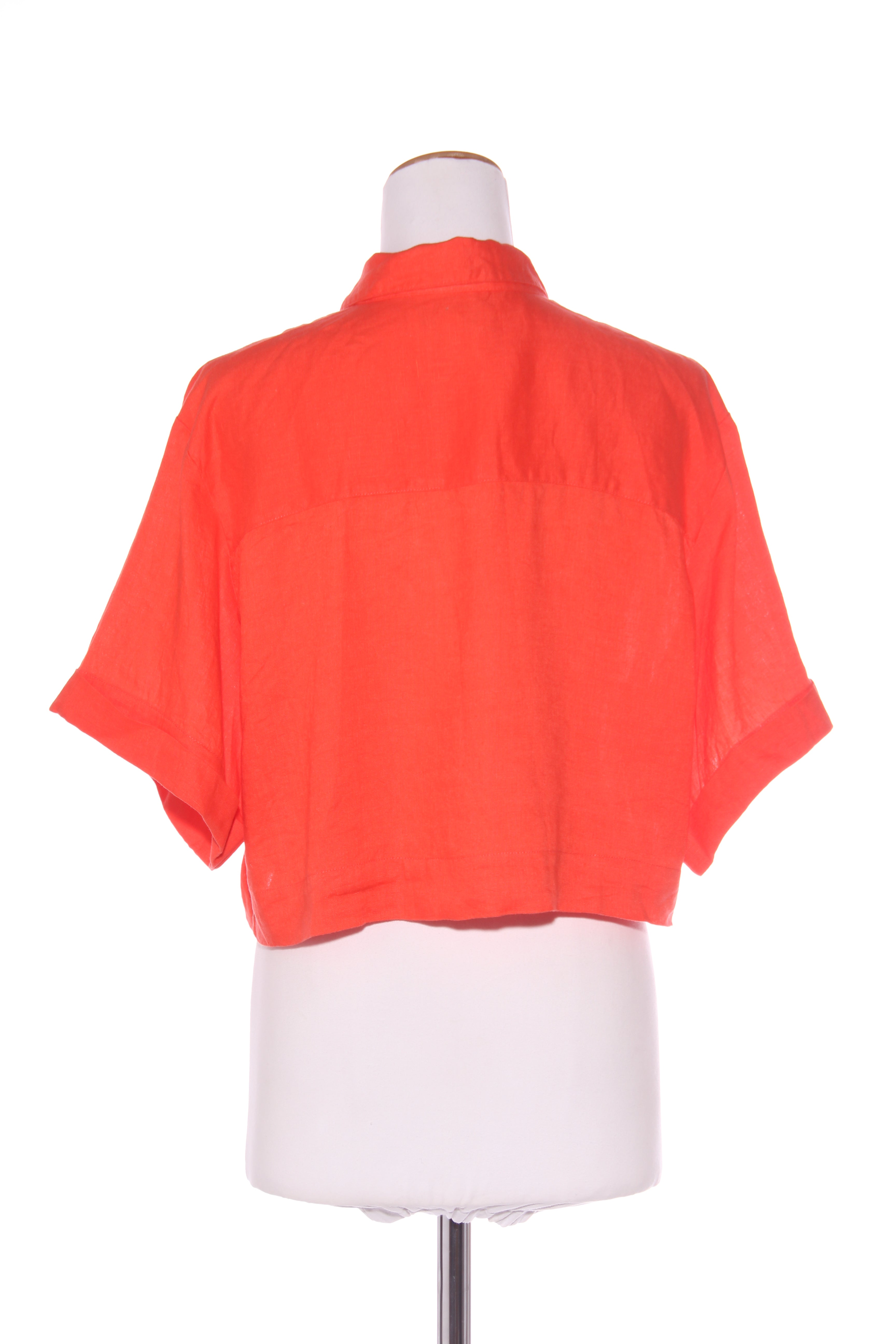 SIZE ON TAG: 12FITS LIKE: 12-14COLOUR: TangerineFABRIC: LinenCONDITION: Excellent prelovedMEASUREMENTS:BUST: 60cms WAIST: 60cms LENGTH: 47cms NOTES: Crafted from 100% linen, the Linen Crop Shirt offers a contemporary...