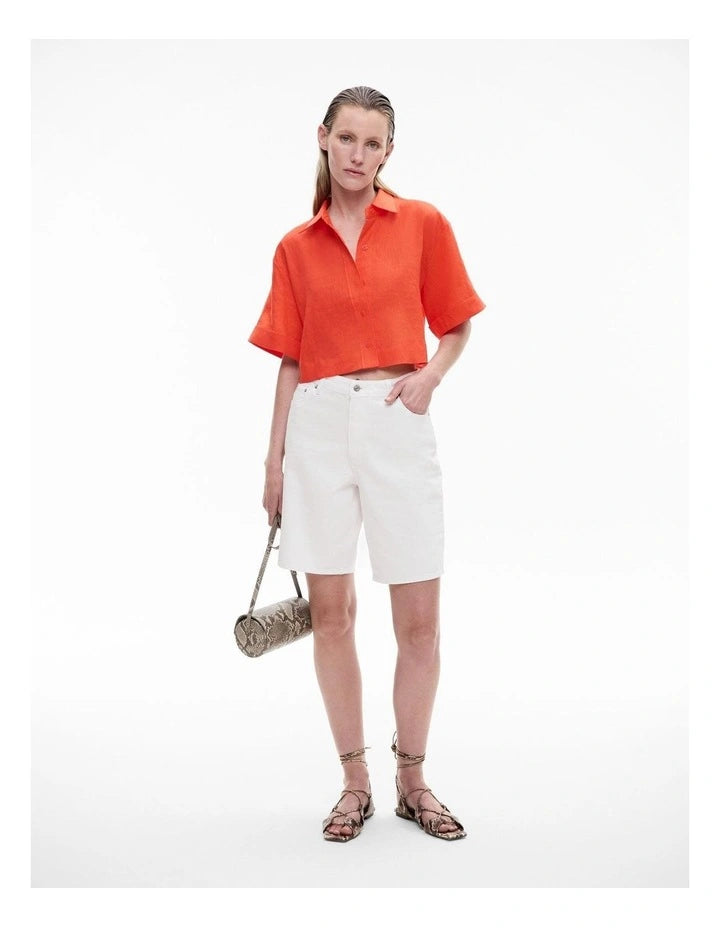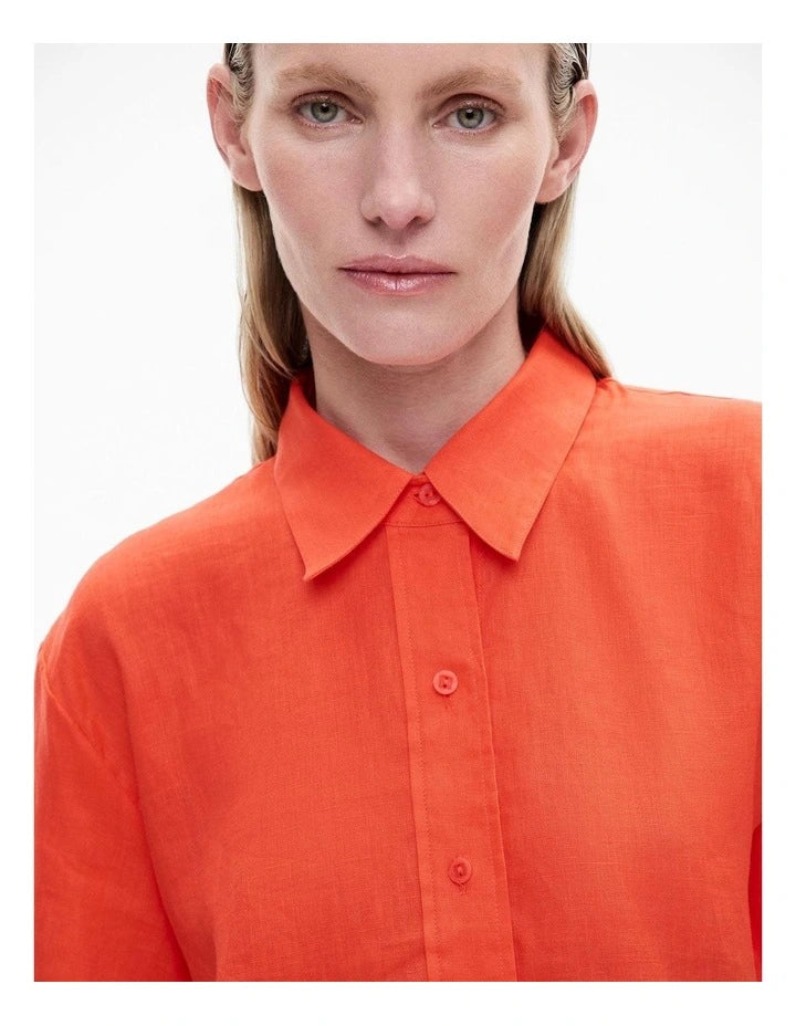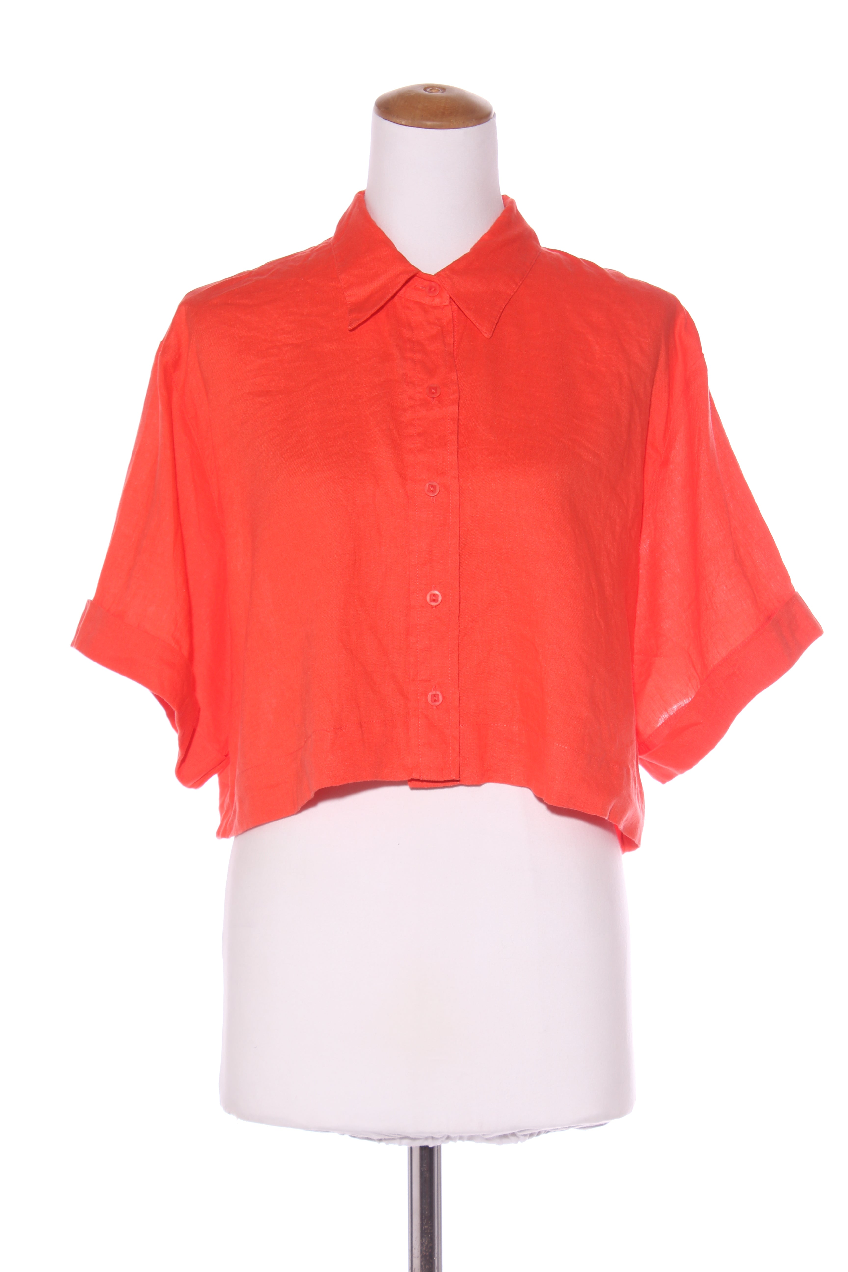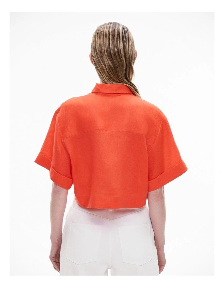 SIZE ON TAG: 12FITS LIKE: 12-14COLOUR: TangerineFABRIC: LinenCONDITION: Excellent prelovedMEASUREMENTS:BUST: 60cms WAIST: 60cms LENGTH: 47cms NOTES: Crafted from 100% linen, the Linen Crop Shirt offers a contemporary...