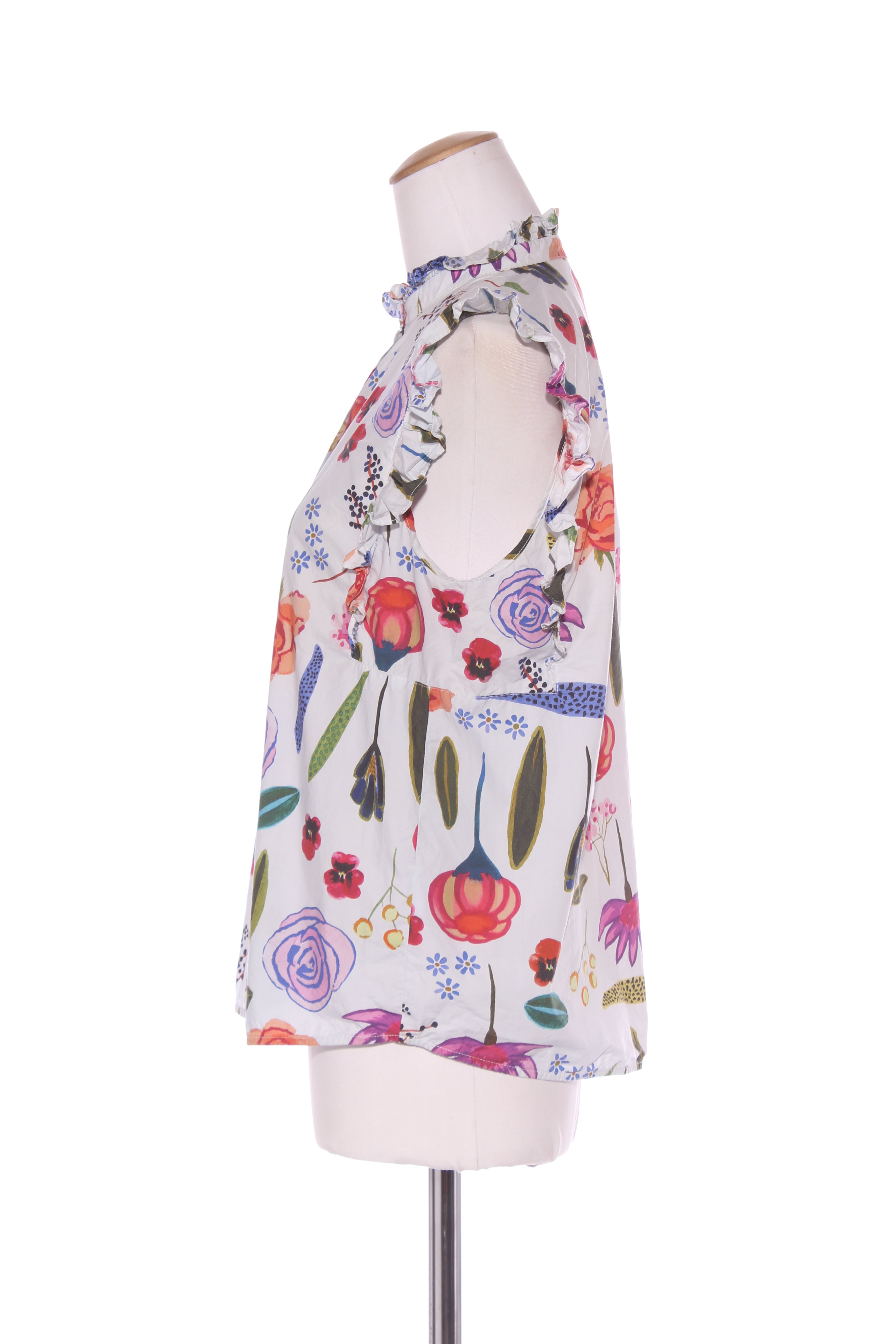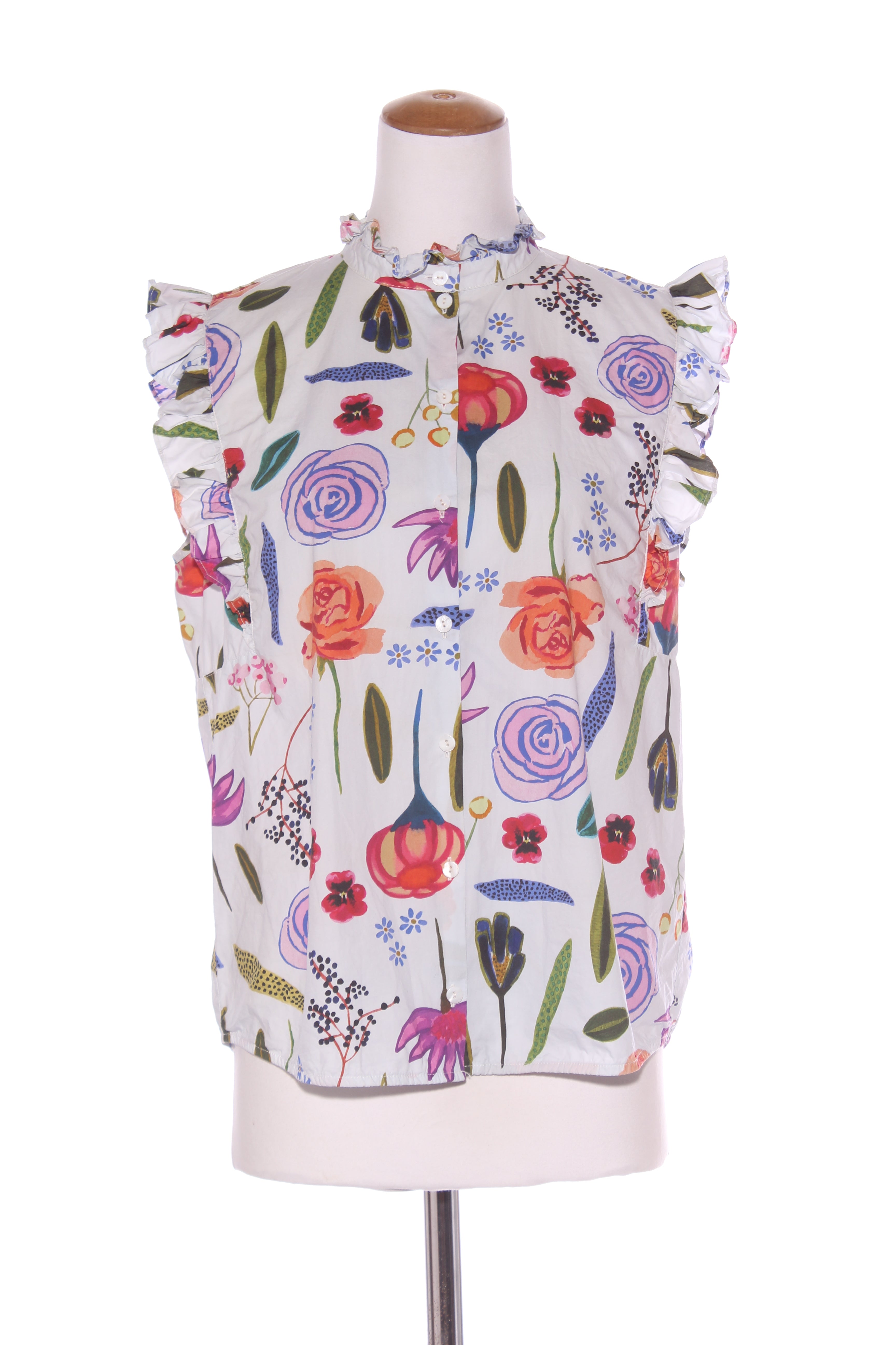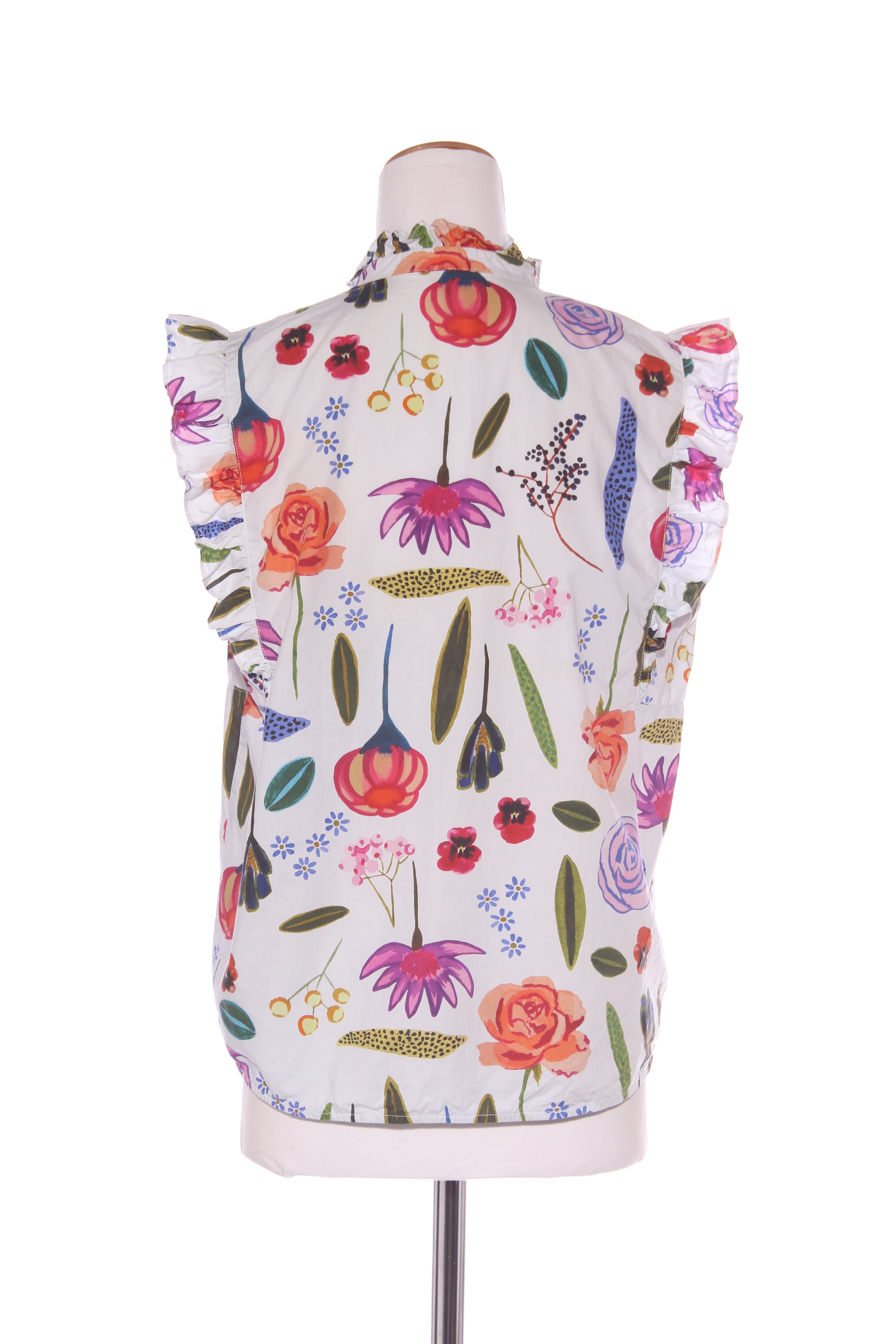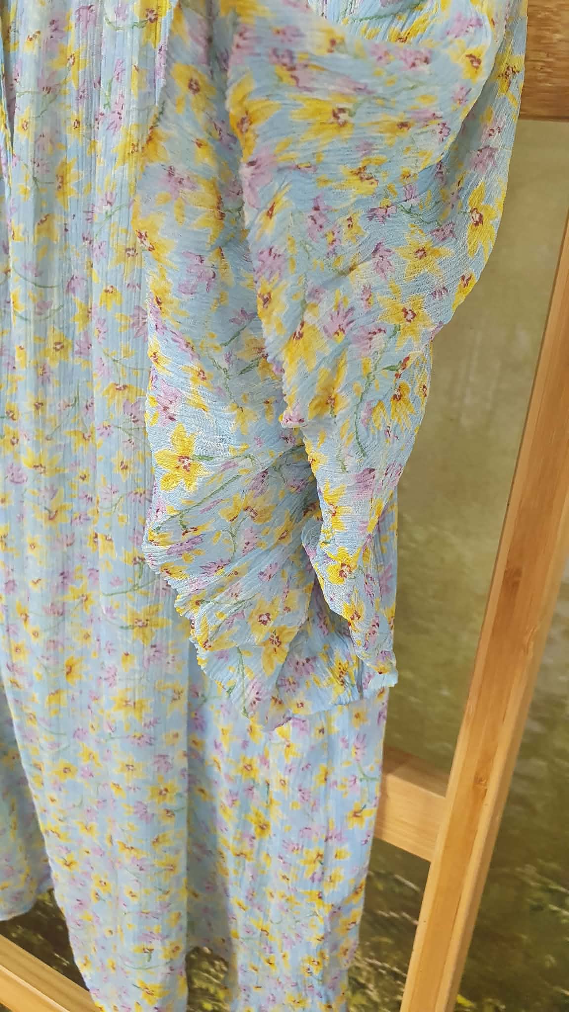 SIZE ON TAG: 42FITS LIKE: 12COLOUR: Multi, light blueFABRIC: Organic cottonCONDITION: Excellent prelovedMEASUREMENTS:BUST: 52cms WAIST: 53cms LENGTH: 63cmsNOTES: Button up front.