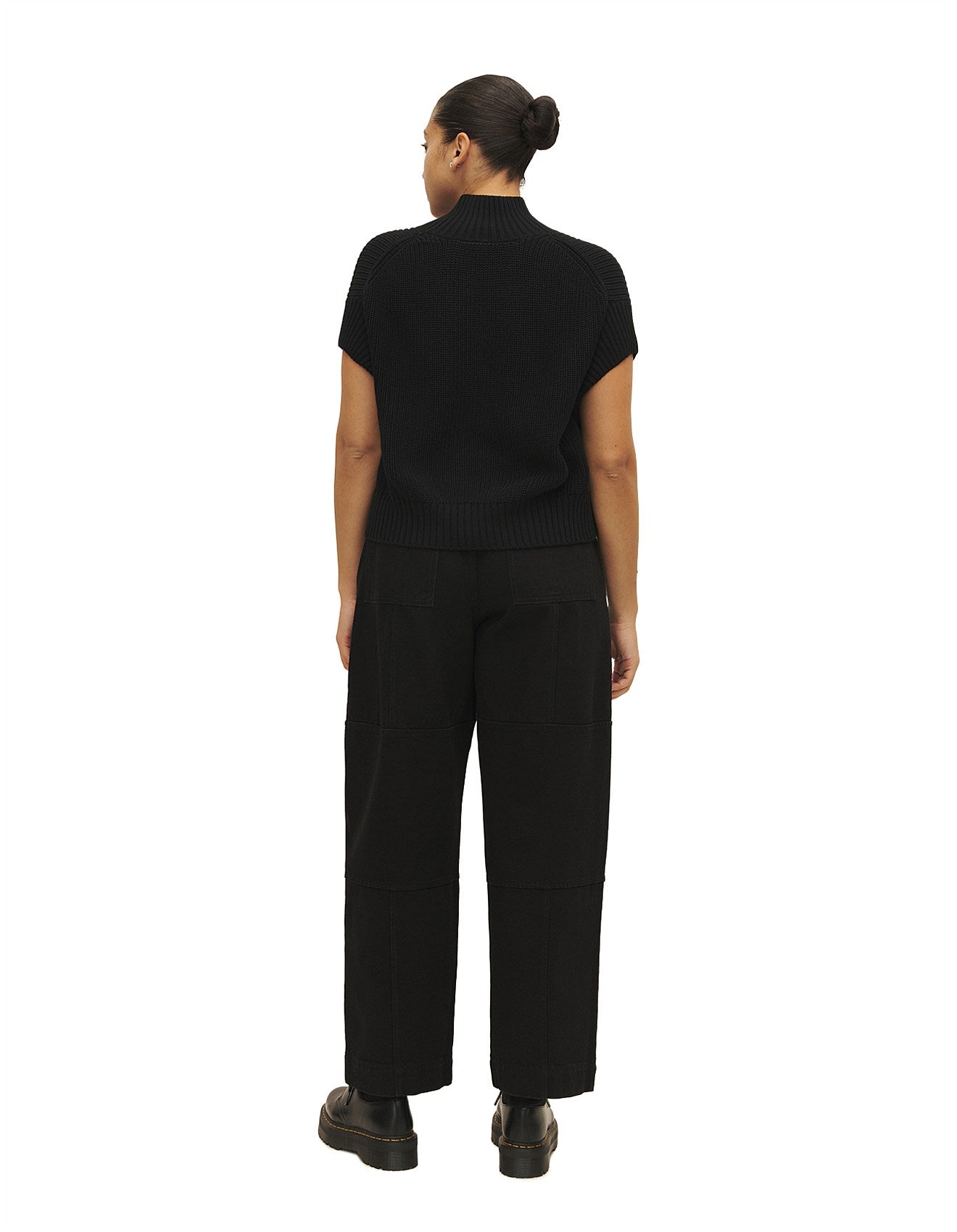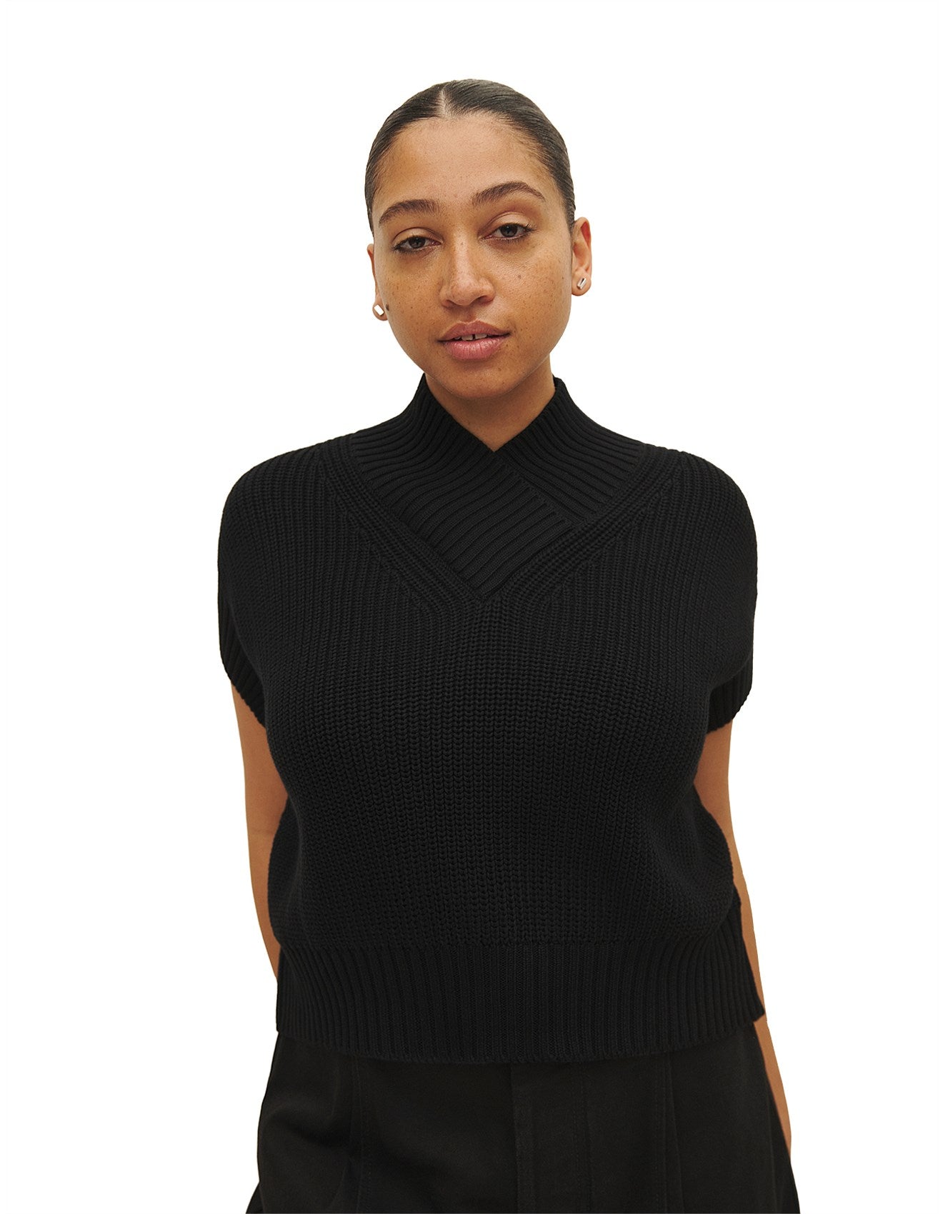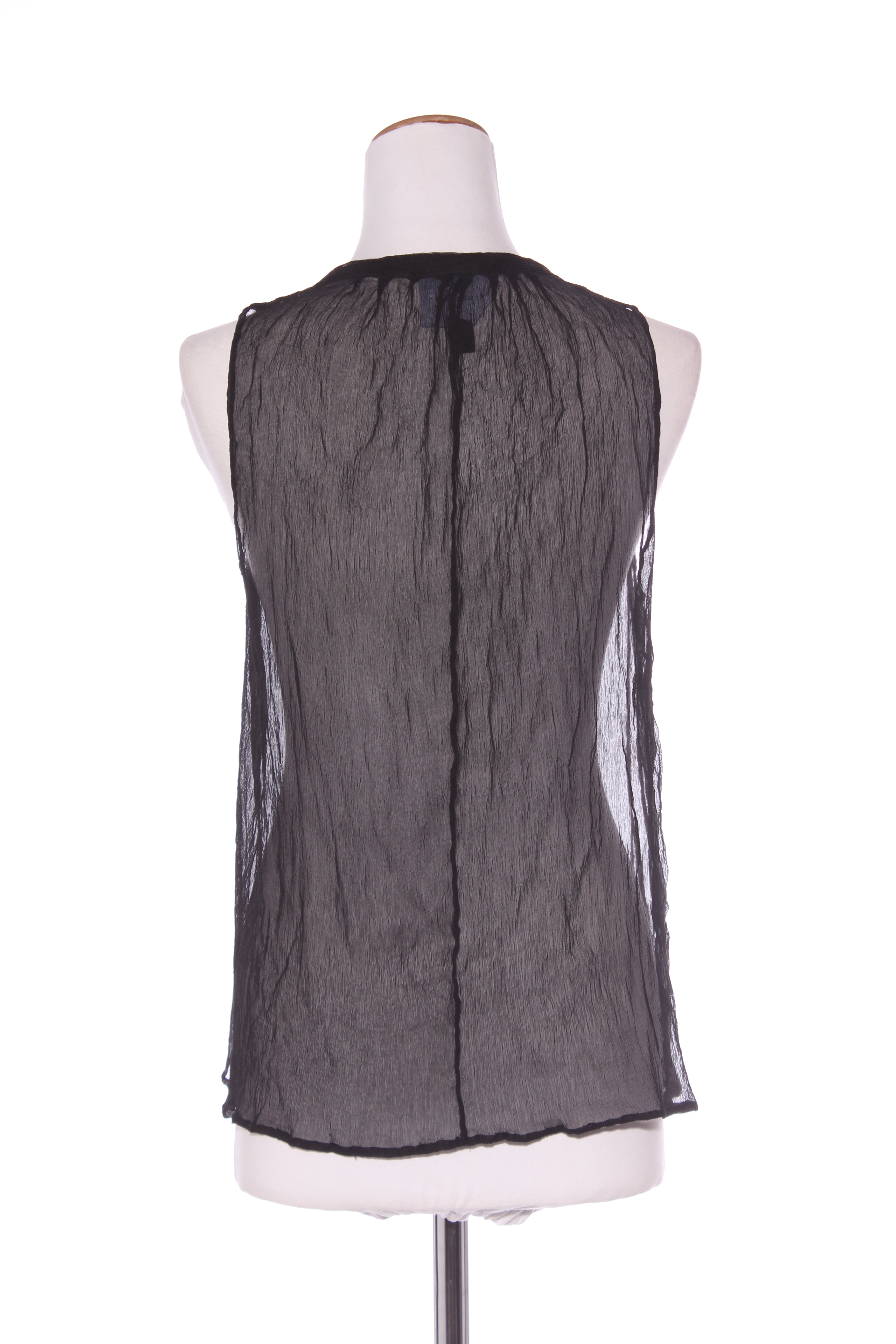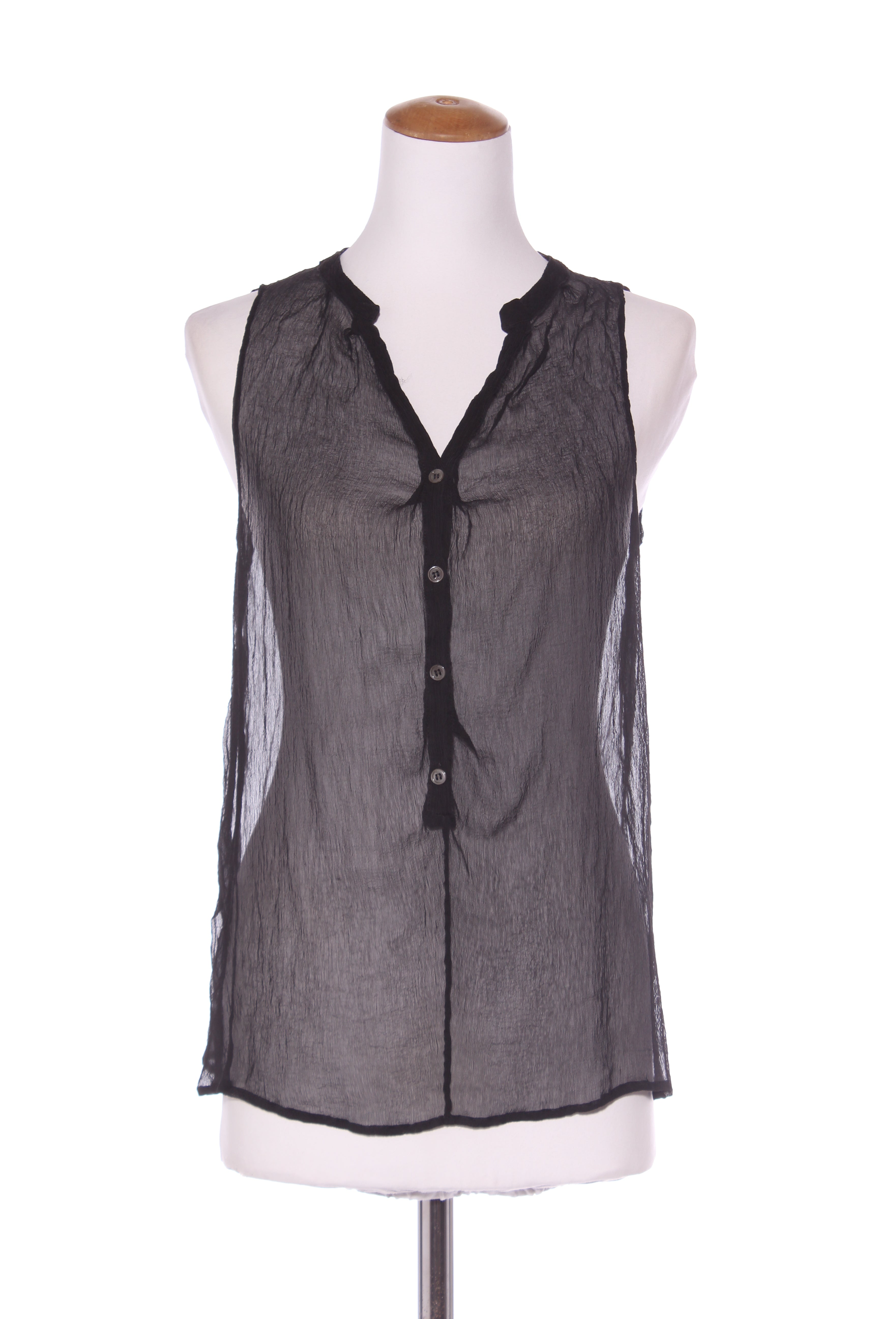 SIZE ON TAG: XSFITS LIKE: 8-10COLOUR: BlackFABRIC: 70% cotton, 30% linenCONDITION: Excellent prelovedMEASUREMENTS:BUST: 51cms WAIST: 57cms LENGTH: 66cms NOTES: Ties at nape of neck. Elasticated sleeve ends.