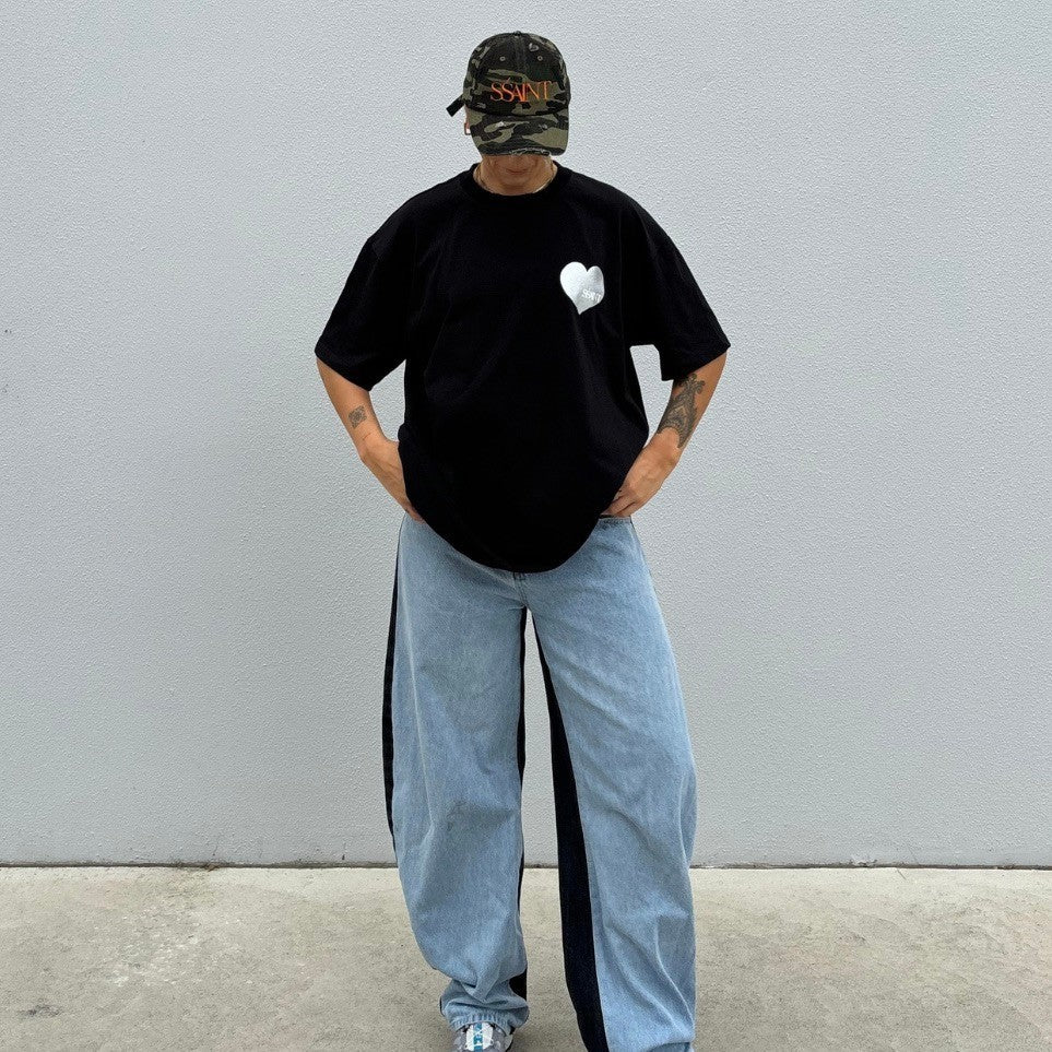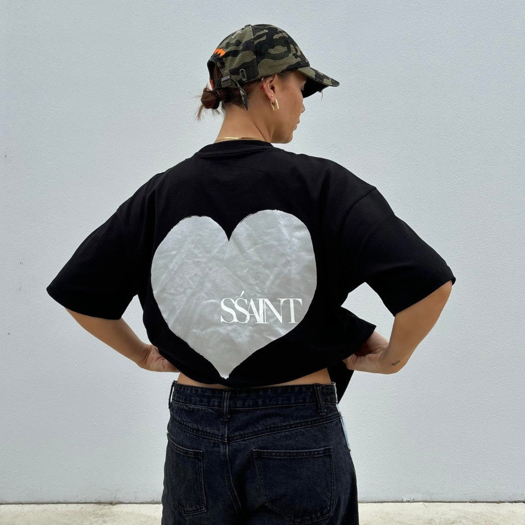 SIZE ON TAG: Not statedFITS LIKE: 14-16 COLOUR: Black, silver, whiteFABRIC: CottonCONDITION: Like newMEASUREMENTS:BUST: 62ms WAIST: 60cms LENGTH: 75-78cms NOTES: A small heart on the front, big love on...