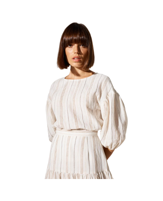 SIZE ON TAG: 10FITS LIKE: 10-12COLOUR: Brown, taupe, whiteFABRIC: Tag removed, linen CONDITION: Excellent prelovedMEASUREMENTS:BUST: 53cms WAIST: 54cms LENGTH: 55cmsNOTES: In a homespun-inspired striped linen that will only...